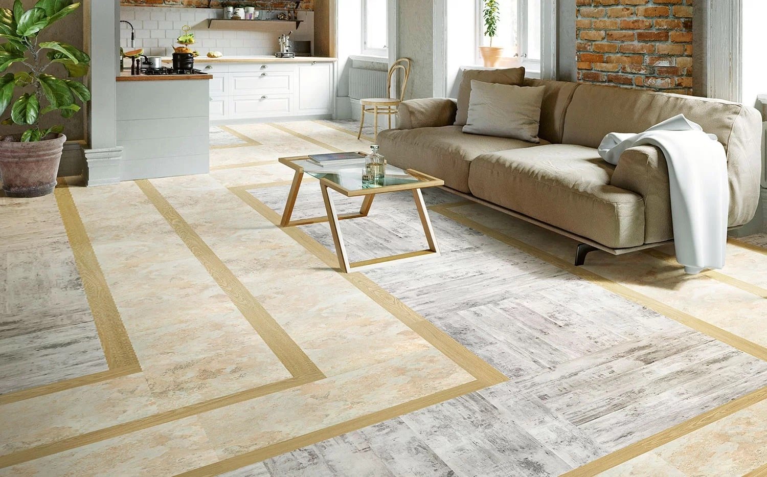 Кварцвиниловая плитка для пола бежевая