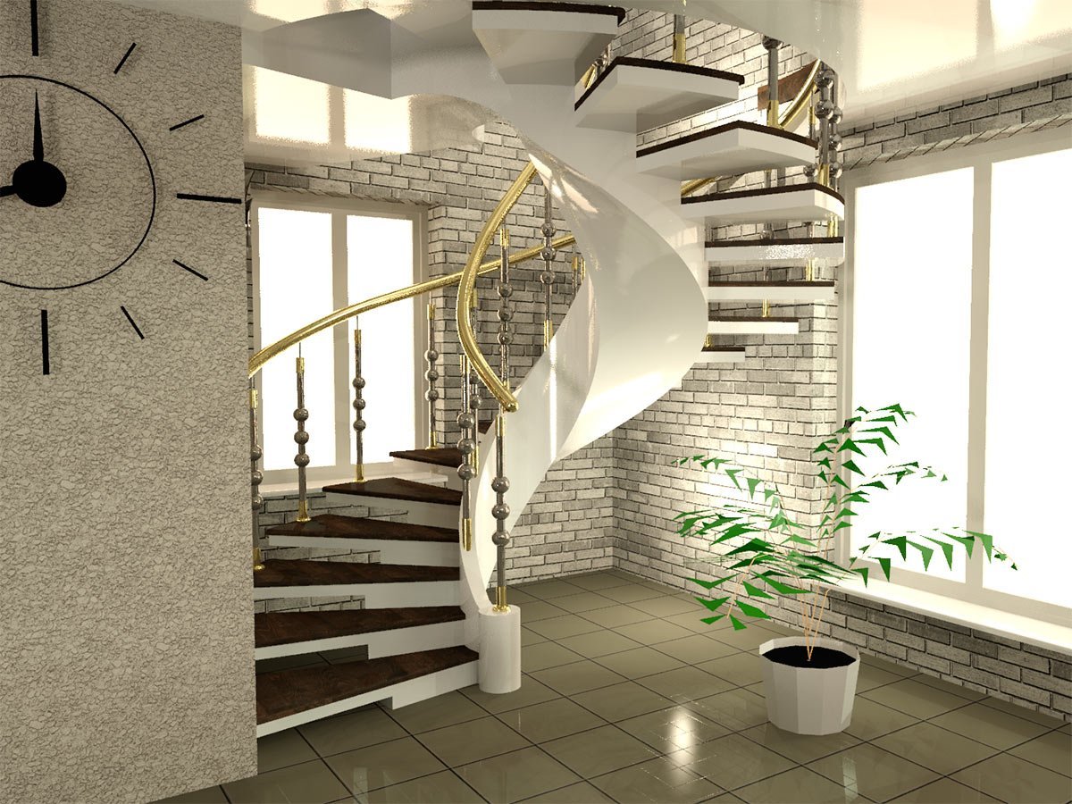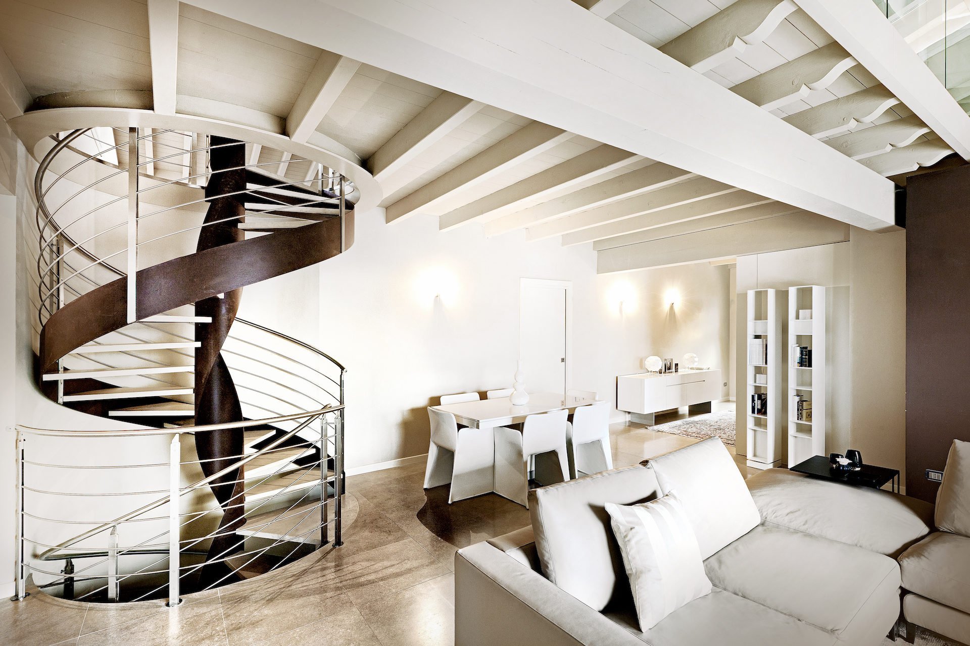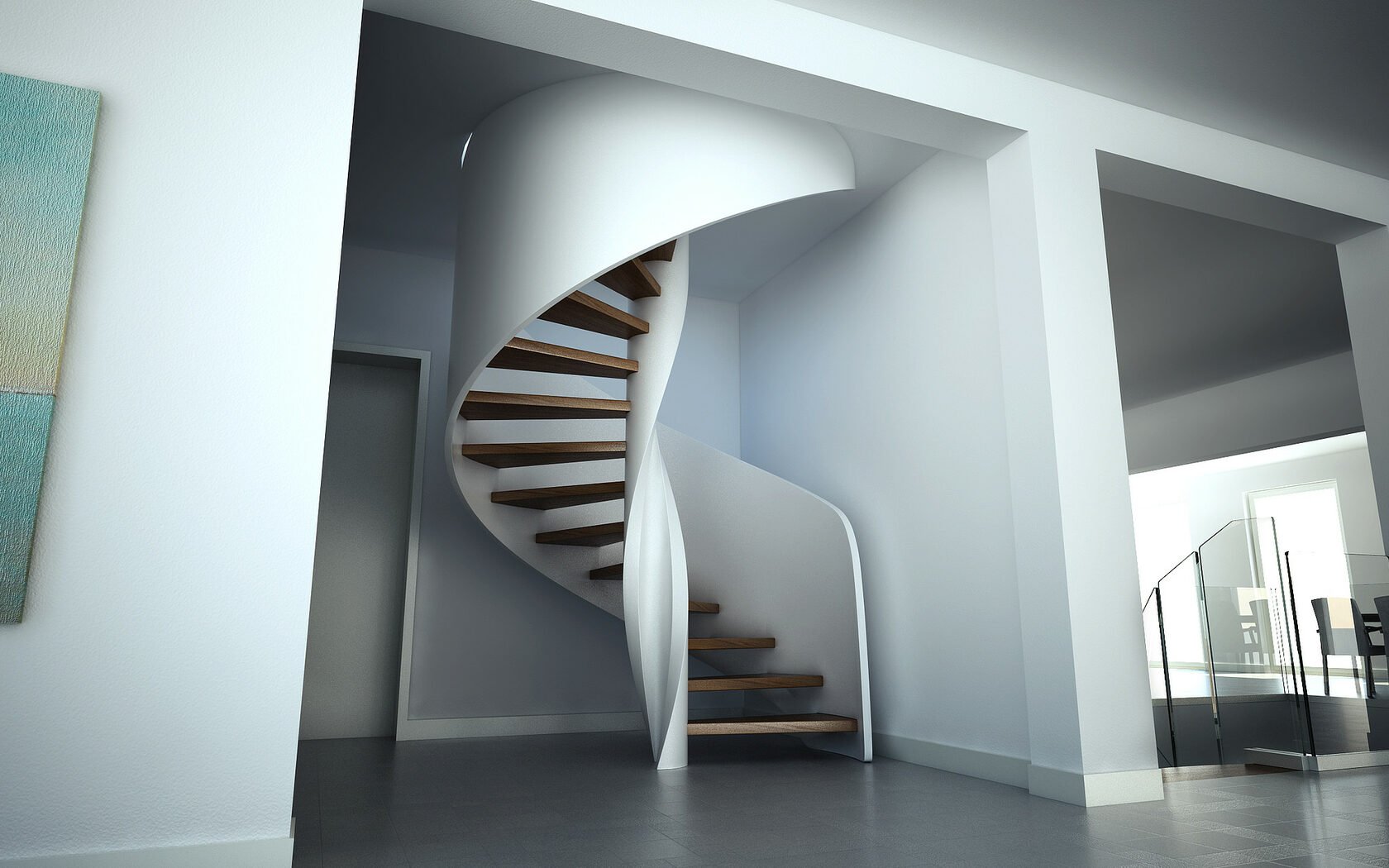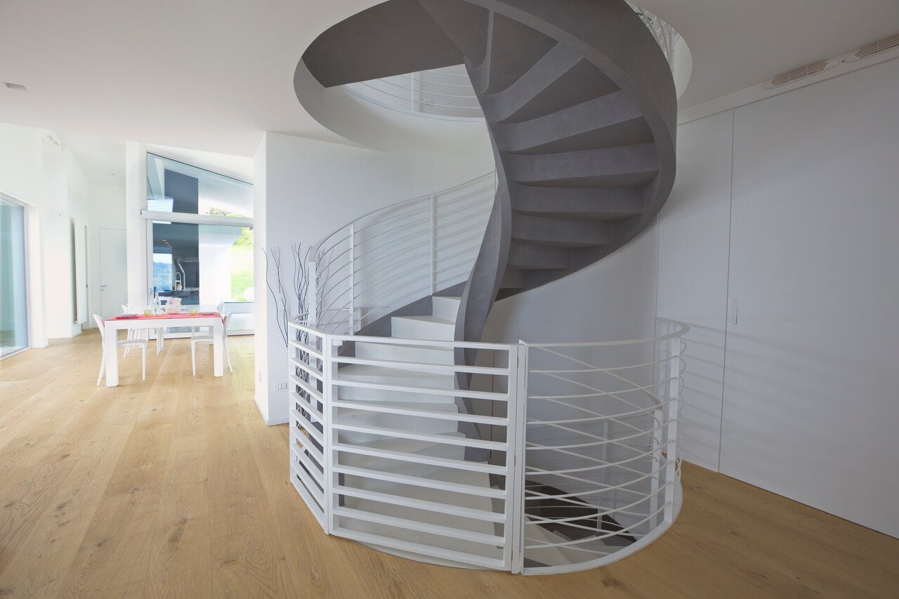 Дизайбитонной винтовой лестницы в коттедже в современном стиле фото