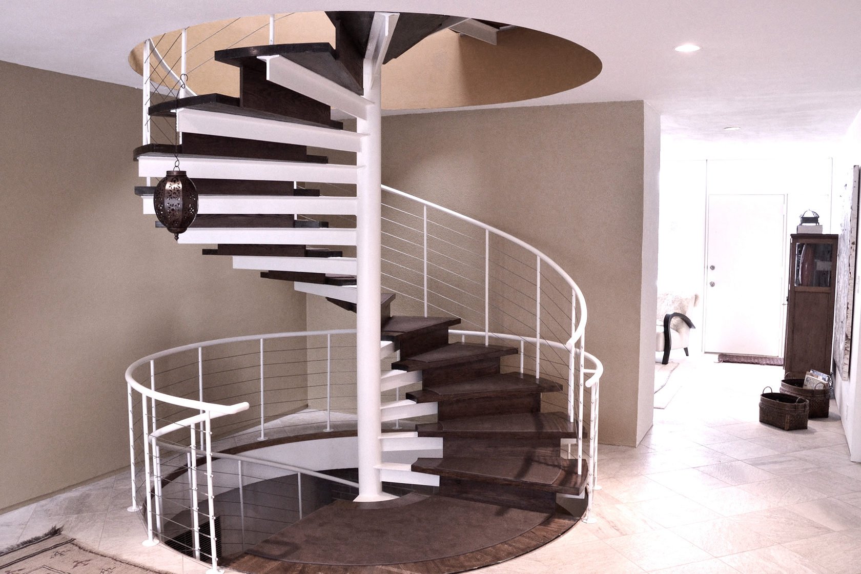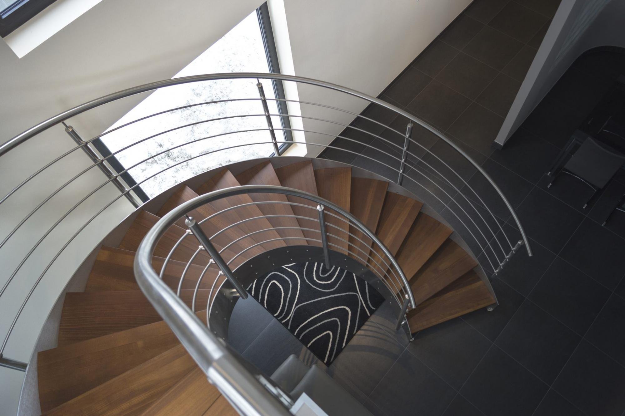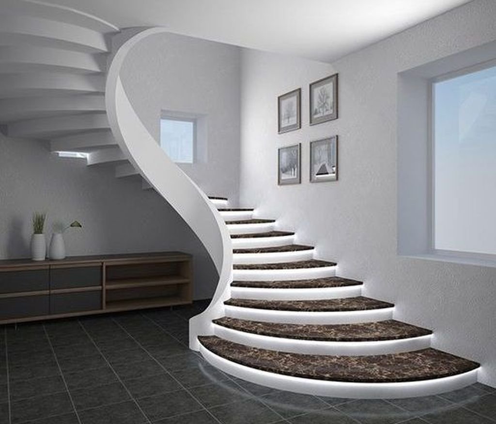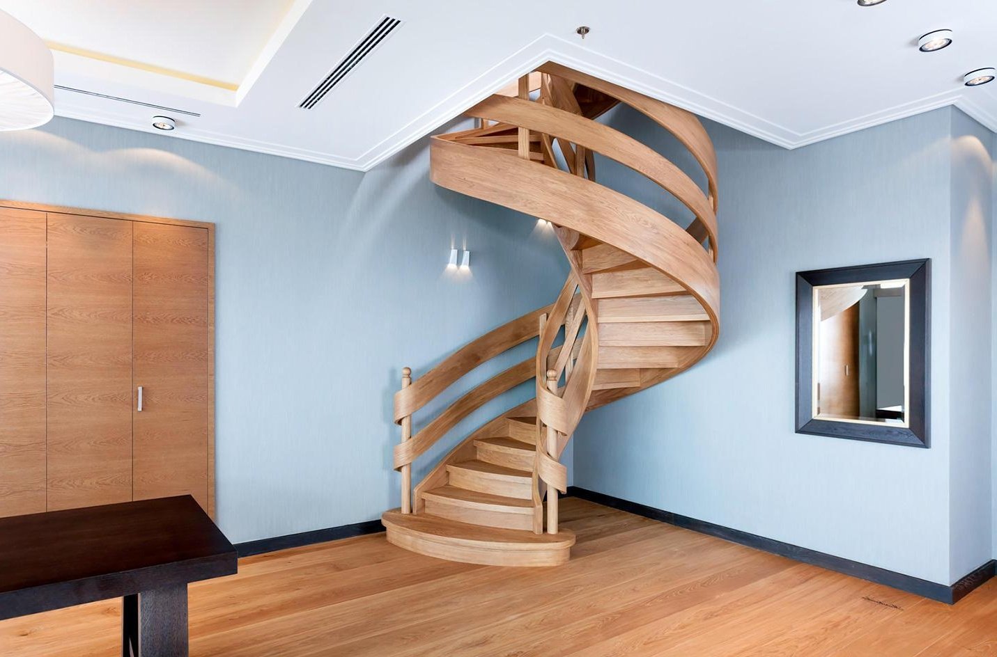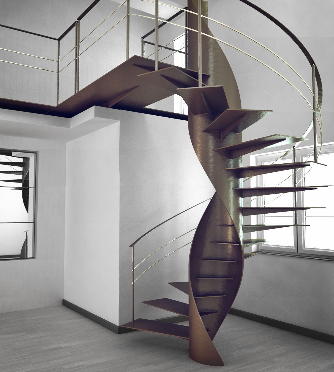 Дизайбитонной винтовой лестницы в коттедже в современном стиле фото
