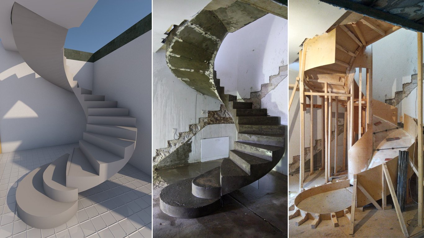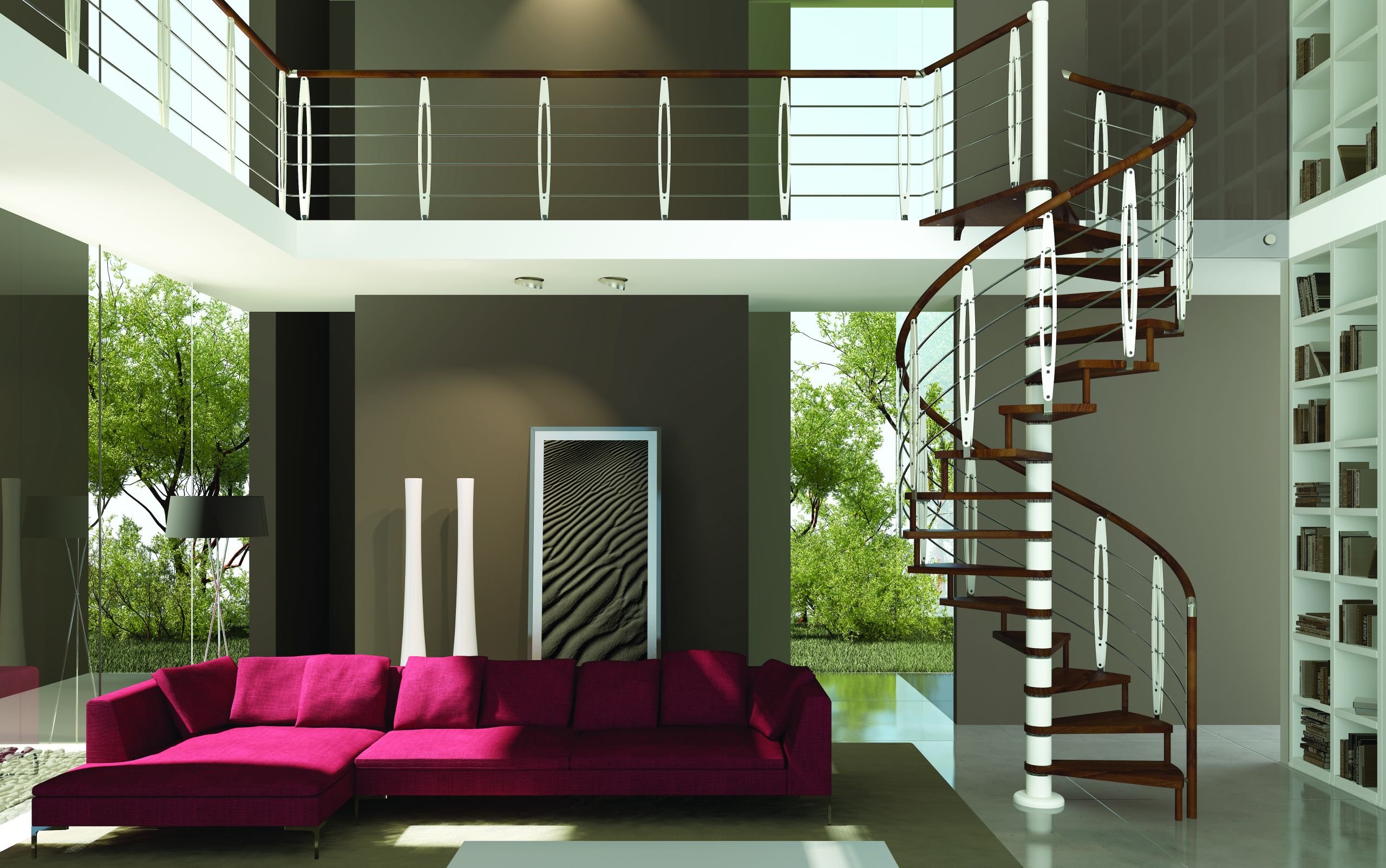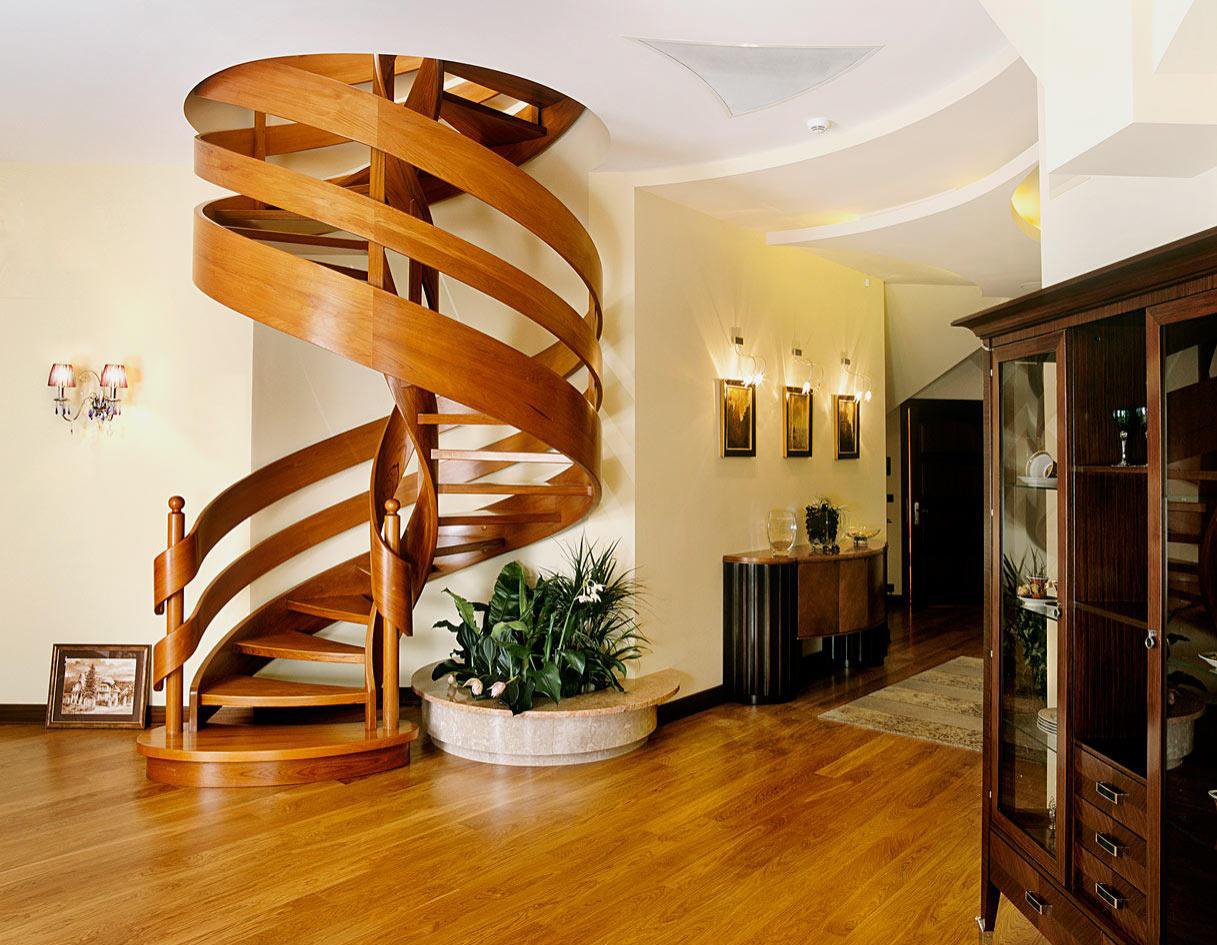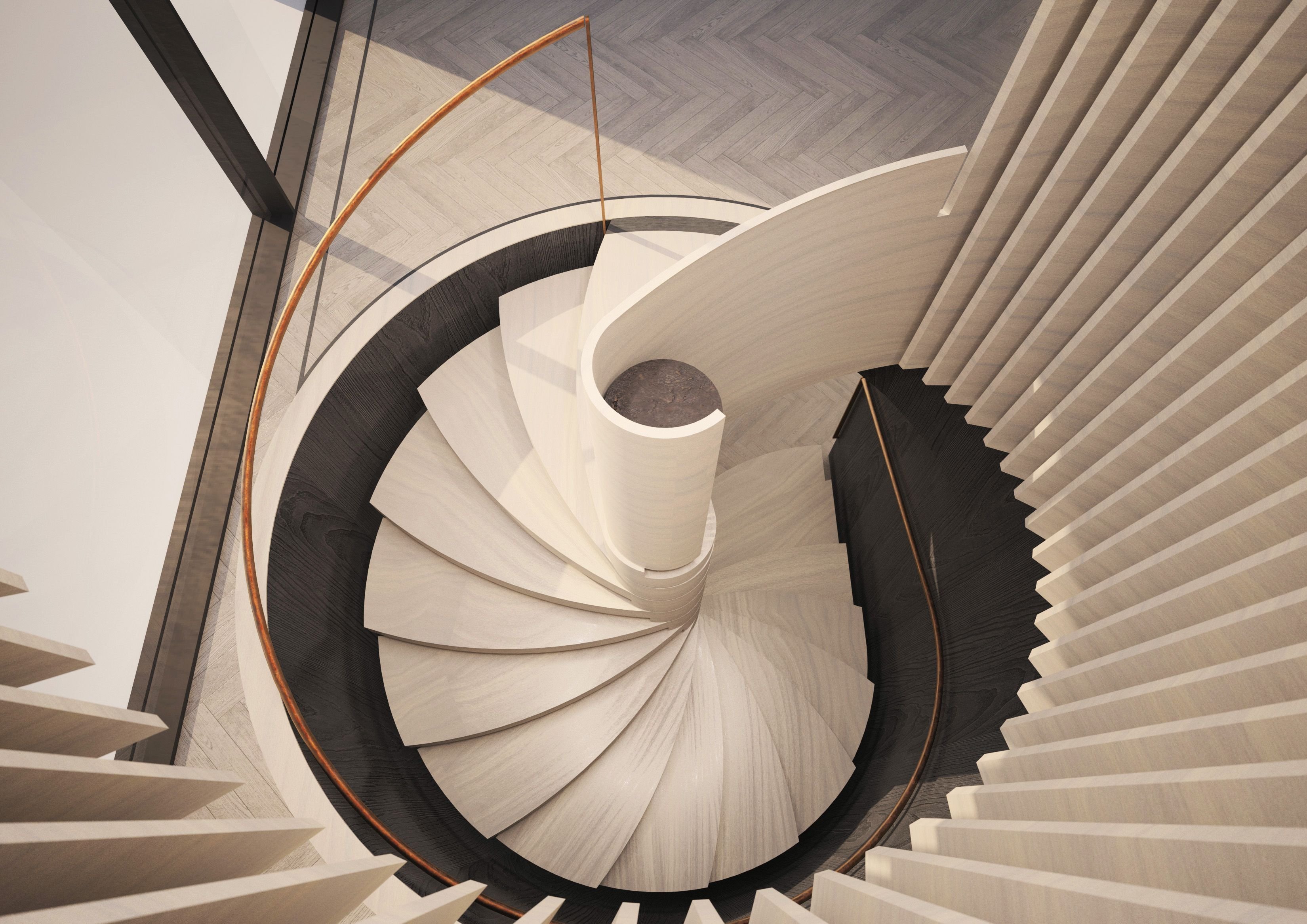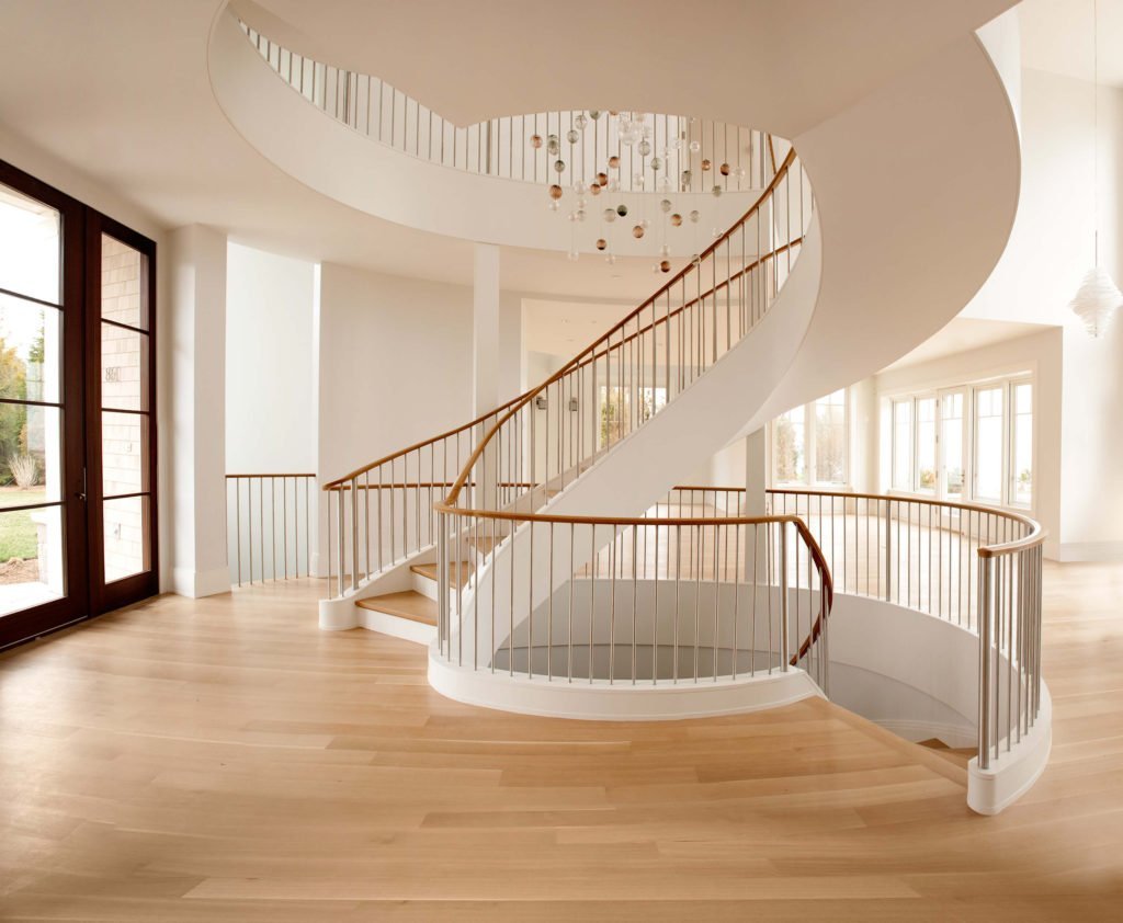 Дизайбитонной винтовой лестницы в коттедже в современном стиле фото