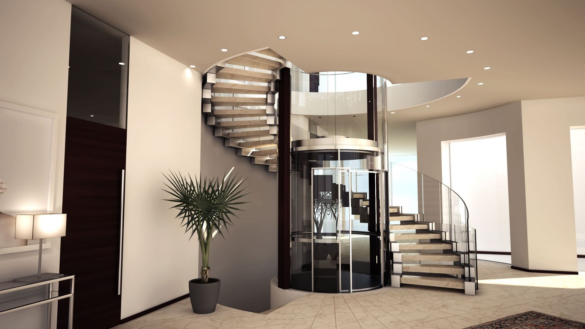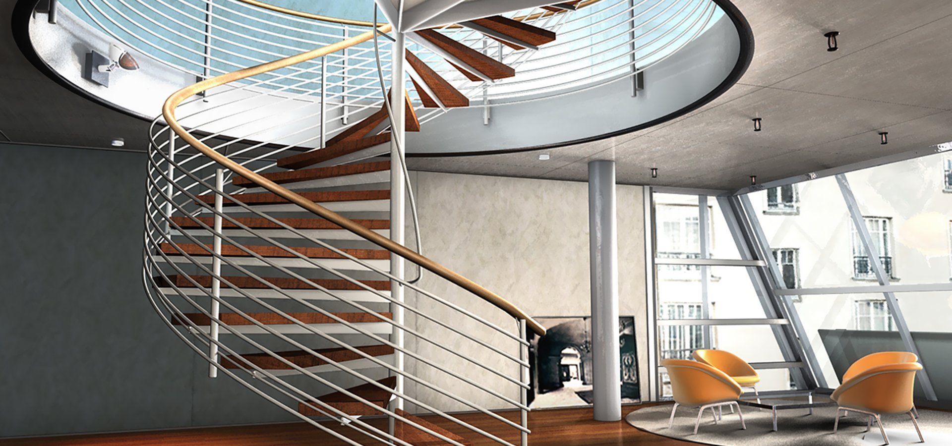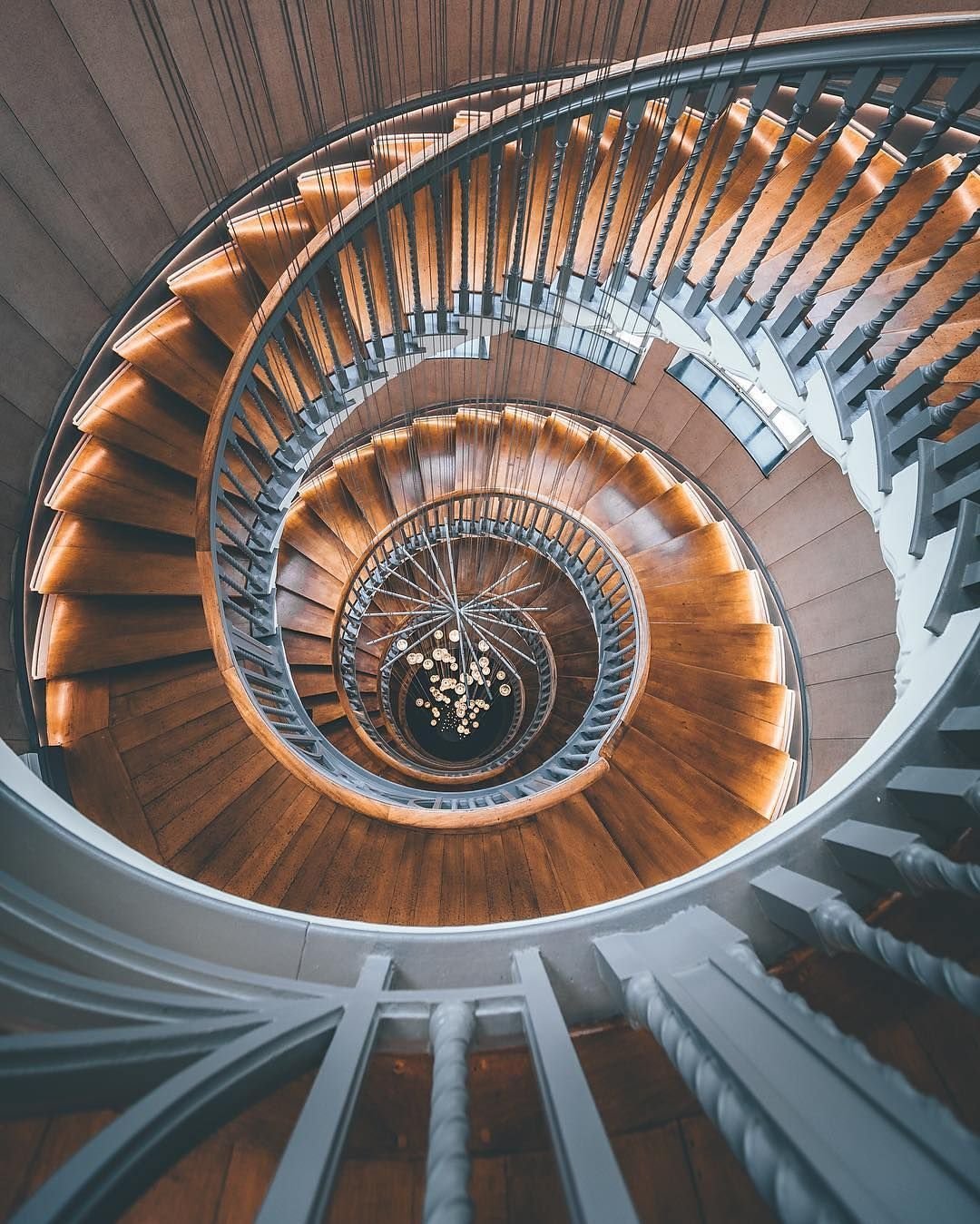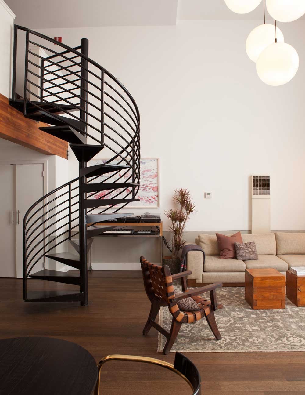 Дизайбитонной винтовой лестницы в коттедже в современном стиле фото