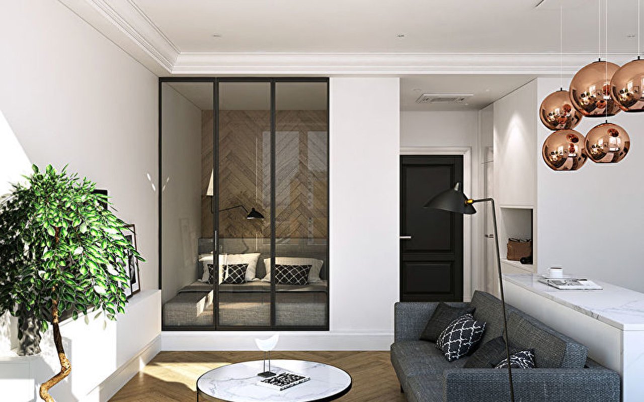 Спальня-гостиная с перегородкой