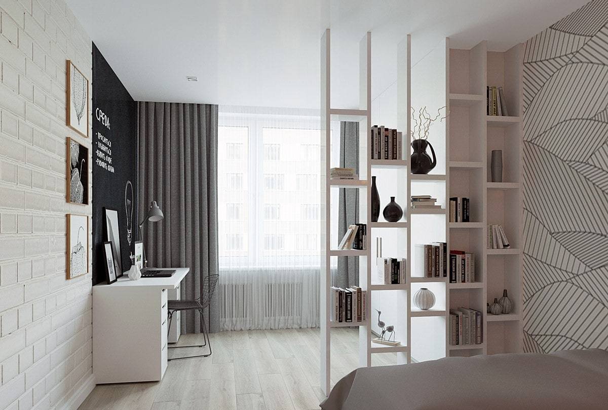 Спальня гостиная зонирование икеа стеллаж