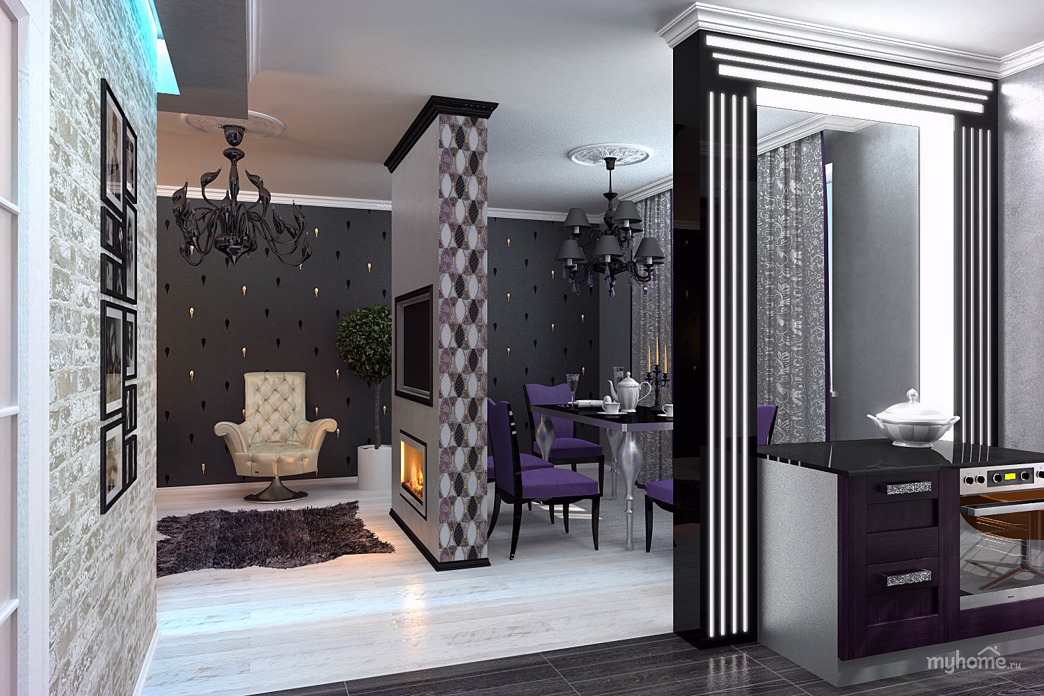 Декоративная перегородка для зонирования кухни и гостиной