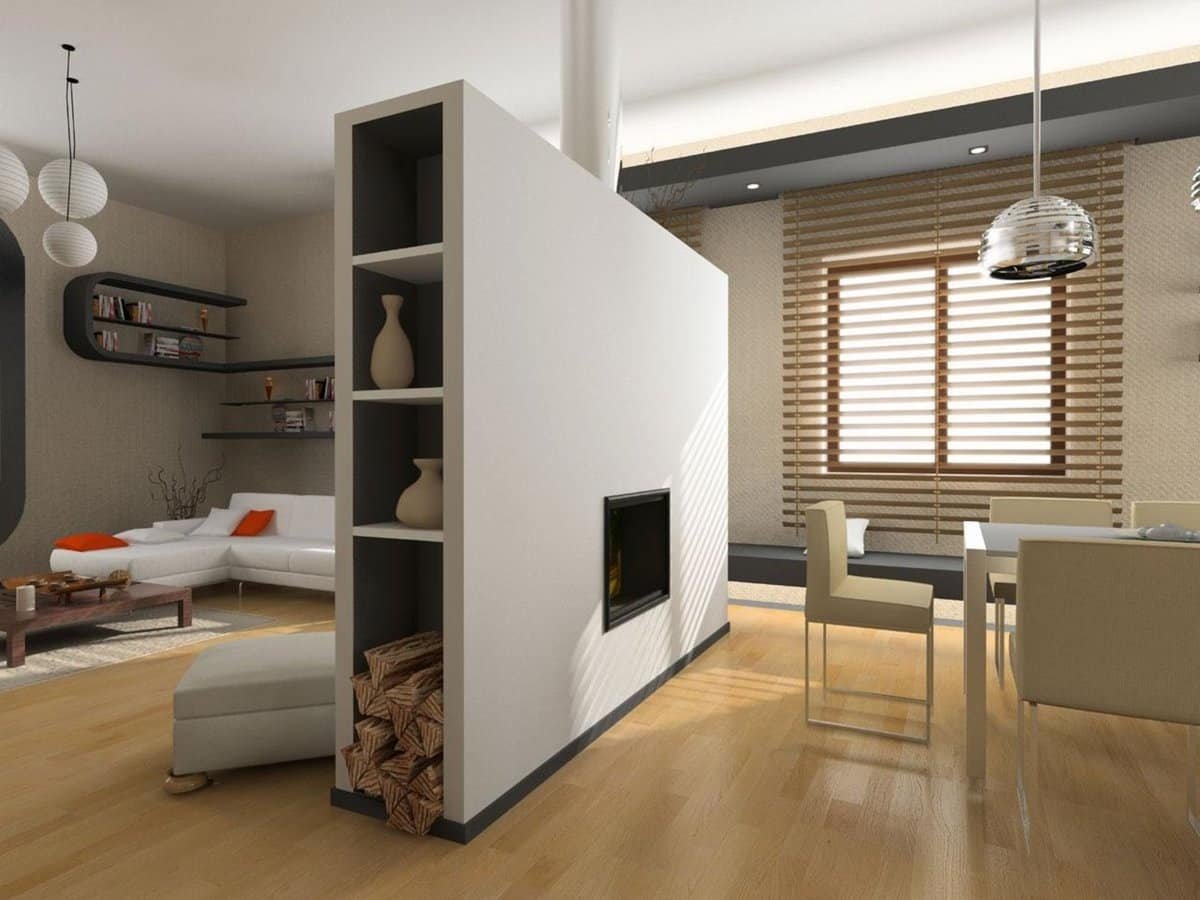 Разделение зон в комнате перегородкой