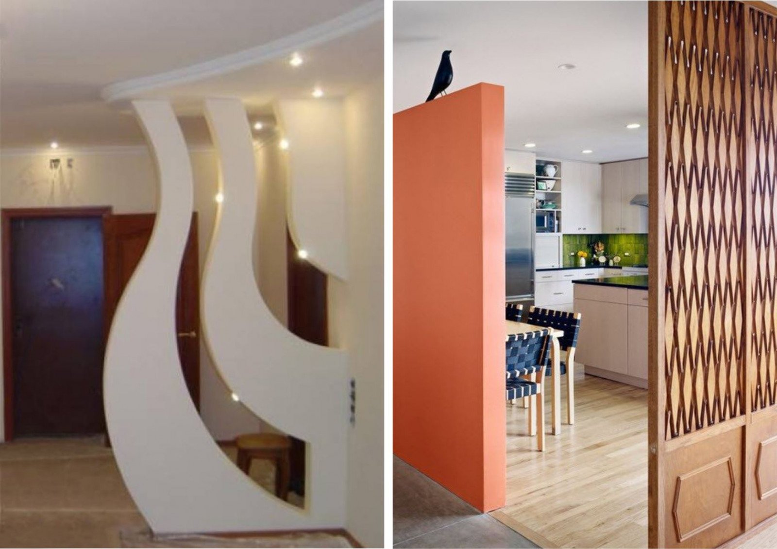 Перегородка из гипсокартона для зонирования кухни