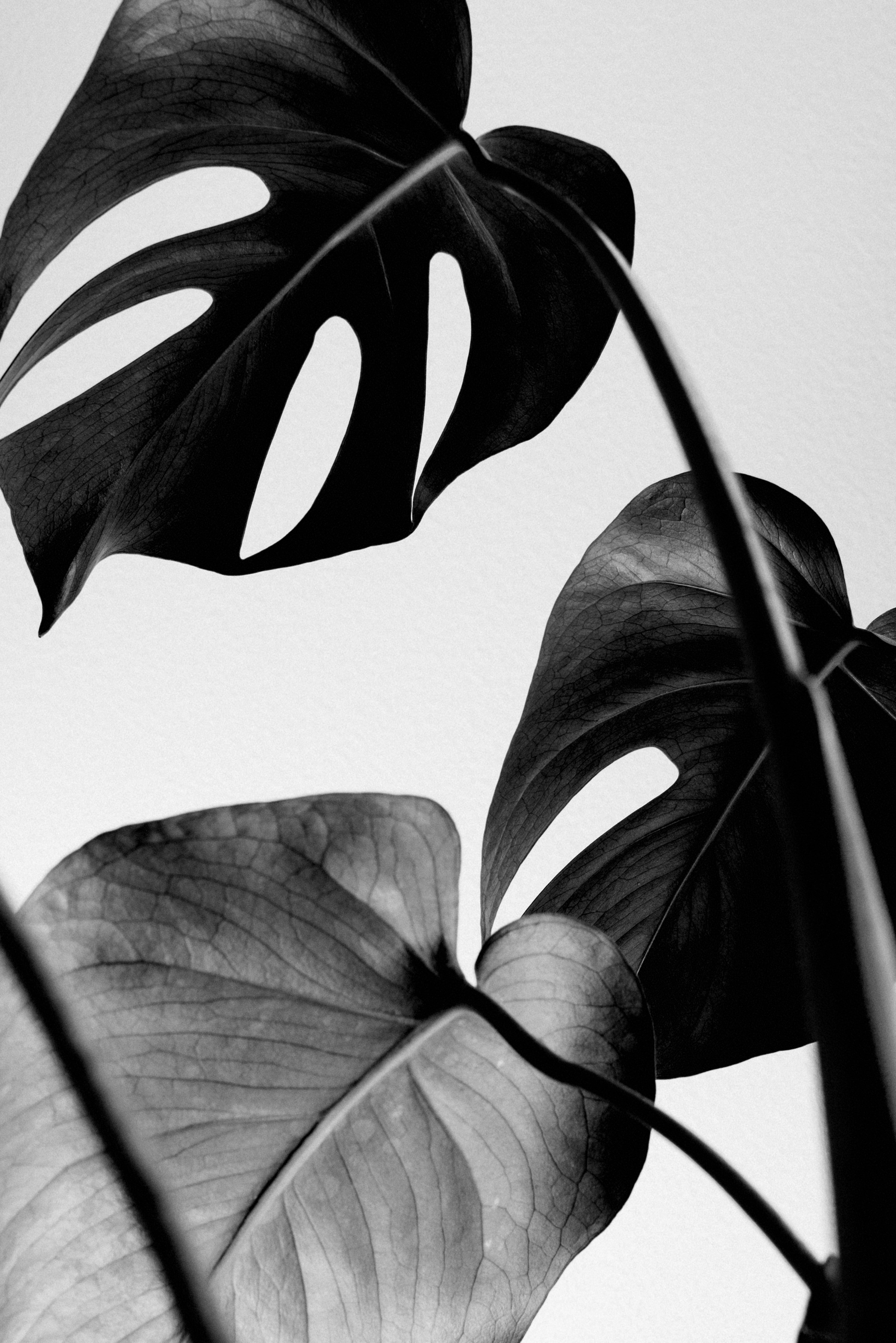 Тропические листья черно белые
