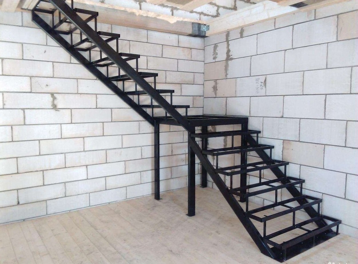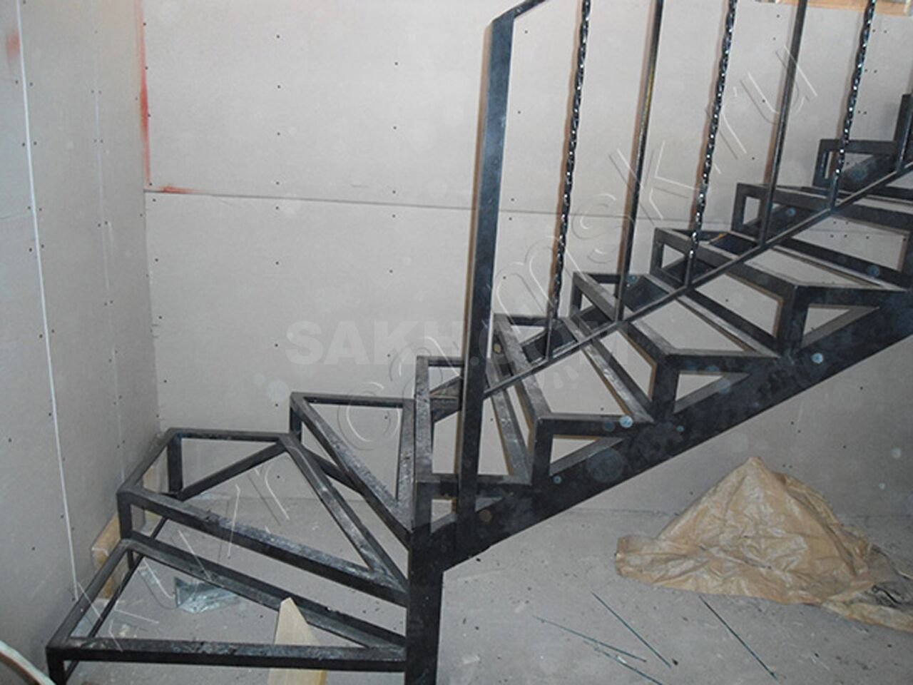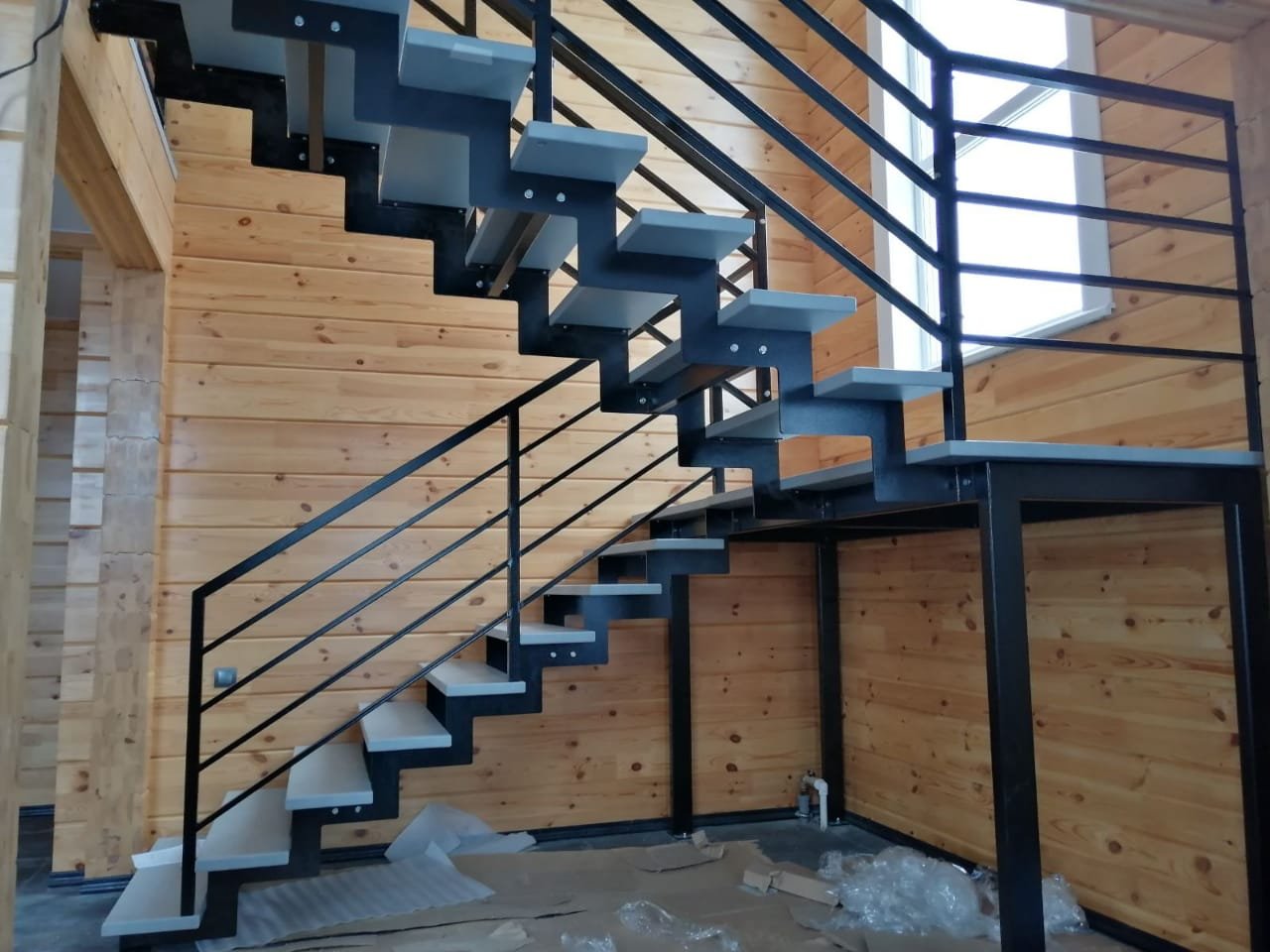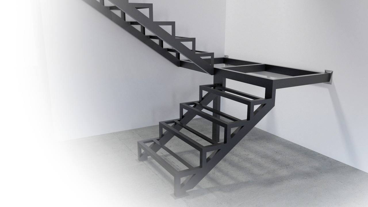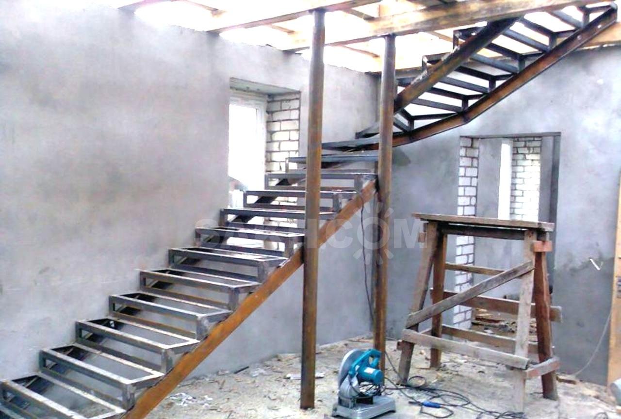 Лестница с забежными ступенями на 180 на второй этаж из металла