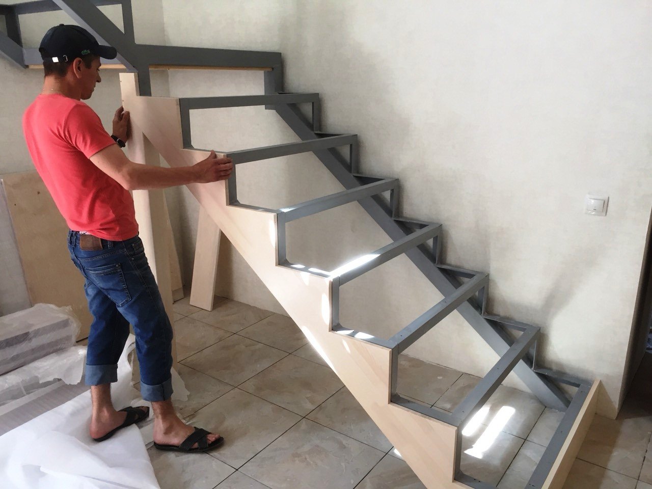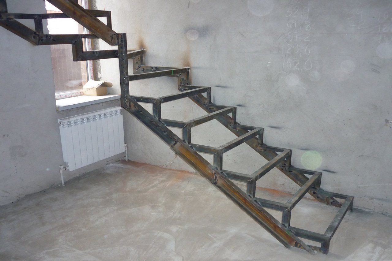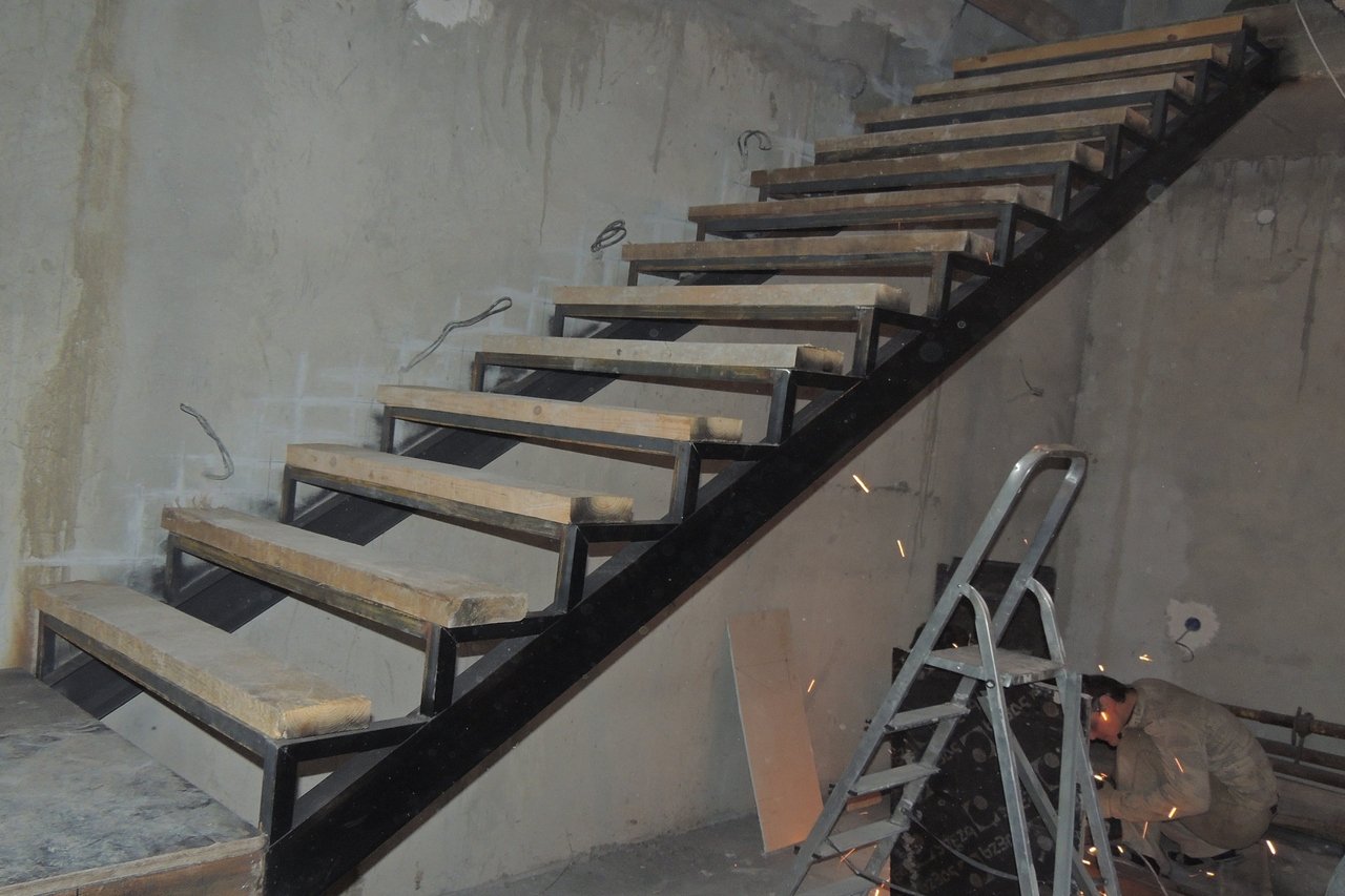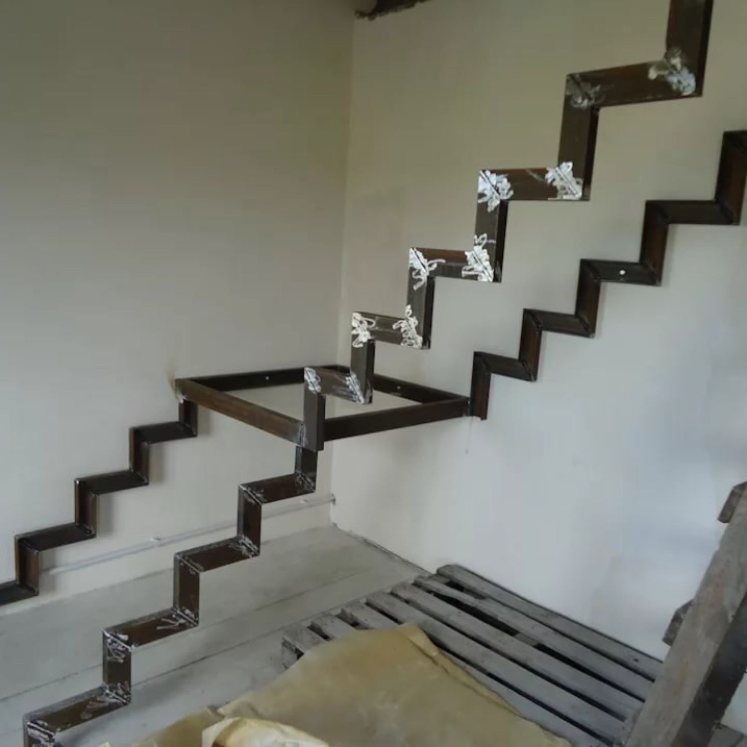 Лестница с забежными ступенями на 180 на второй этаж из металла