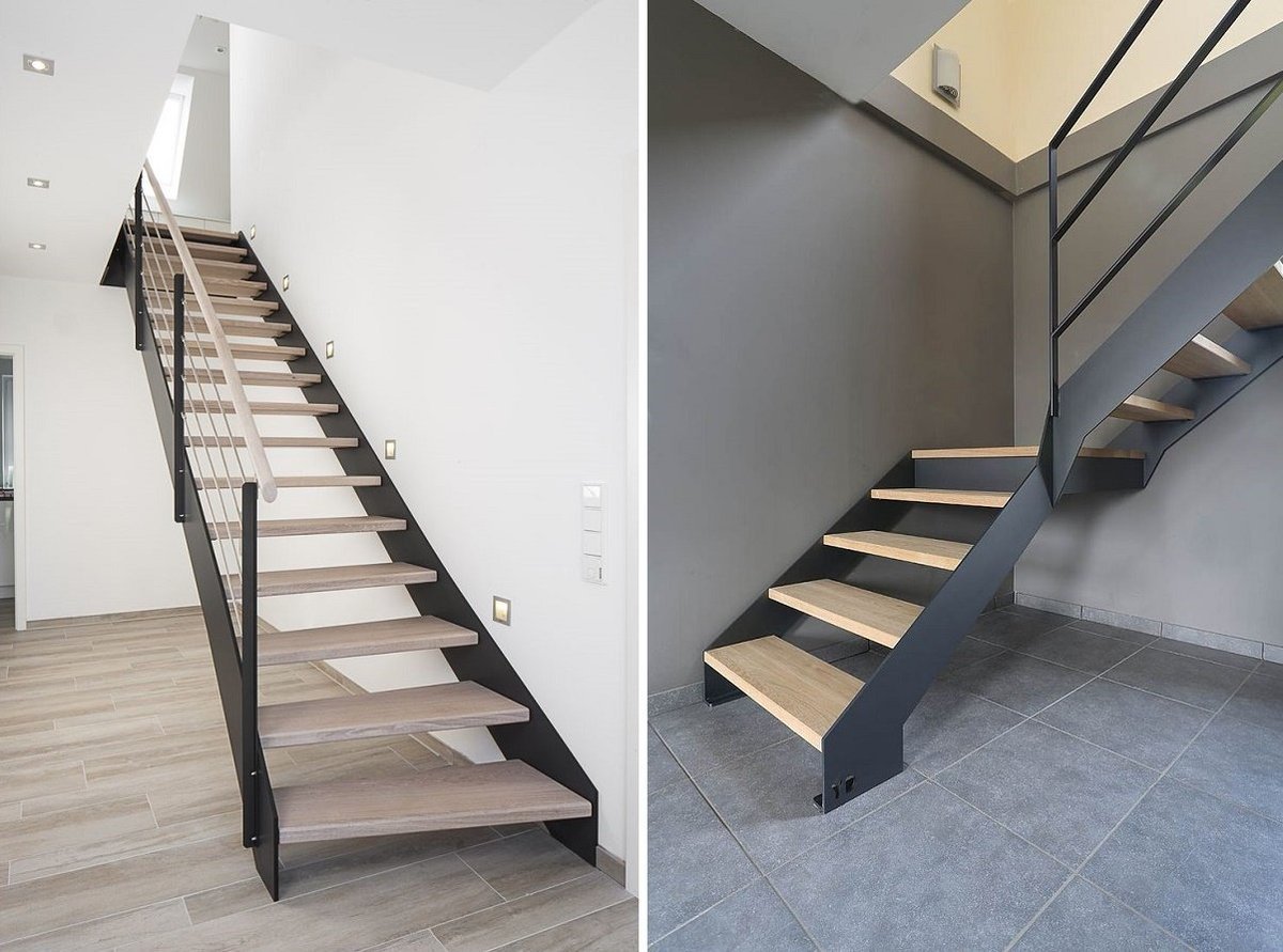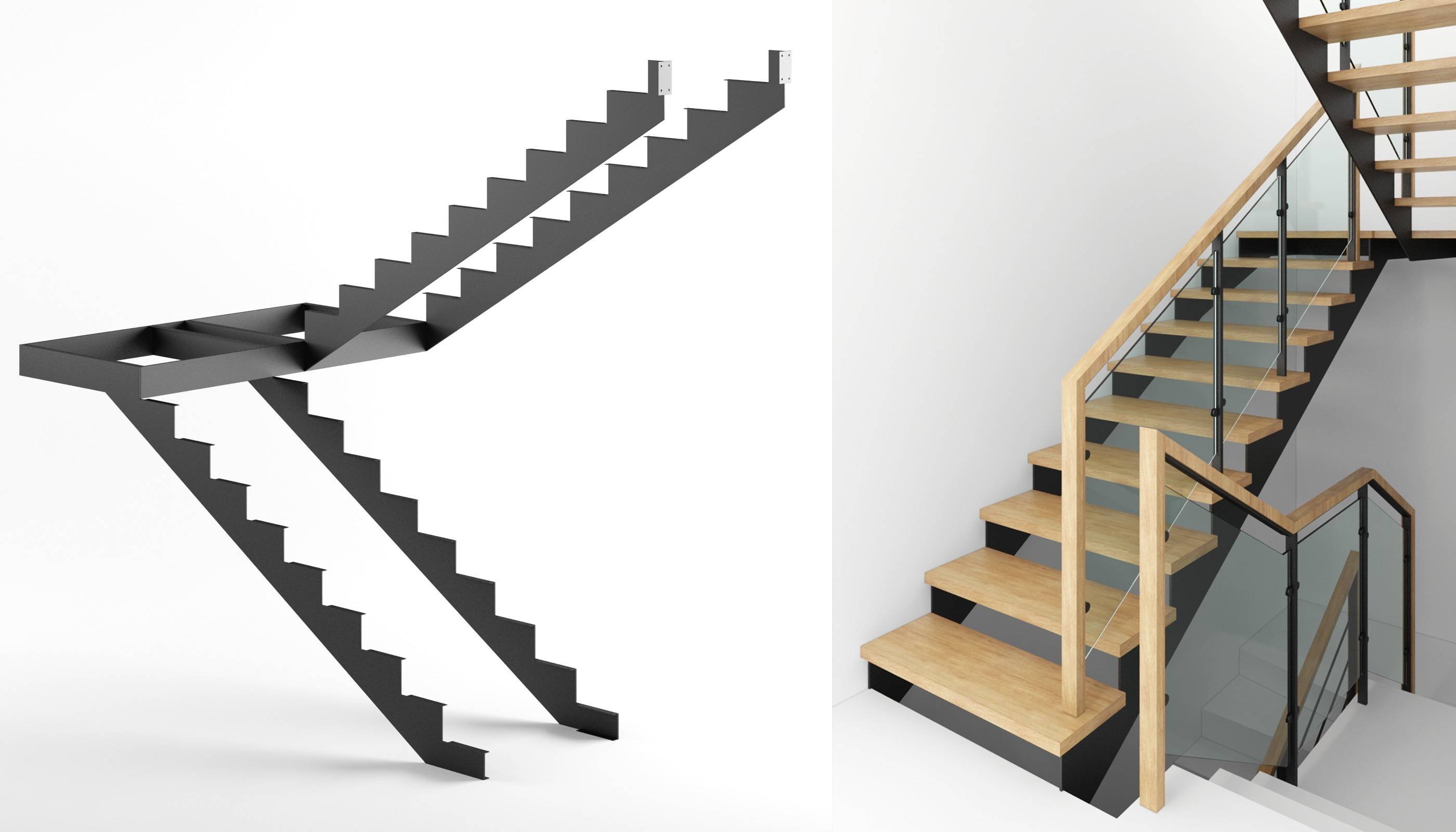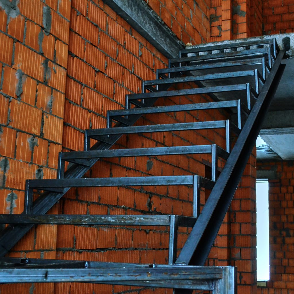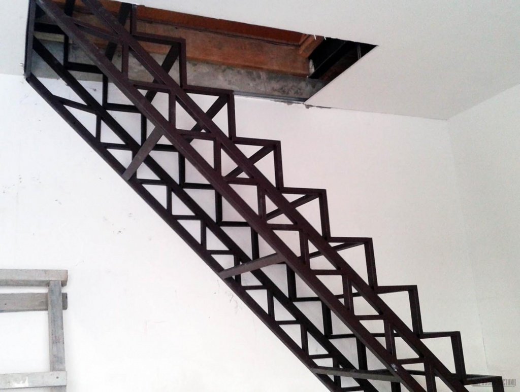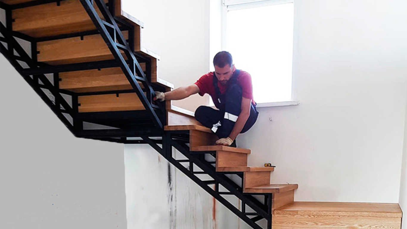 Лестница с забежными ступенями на 180 на второй этаж из металла