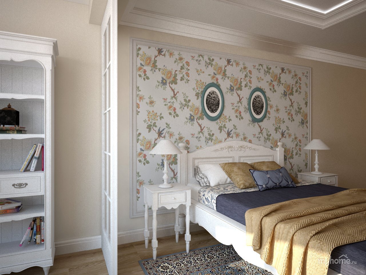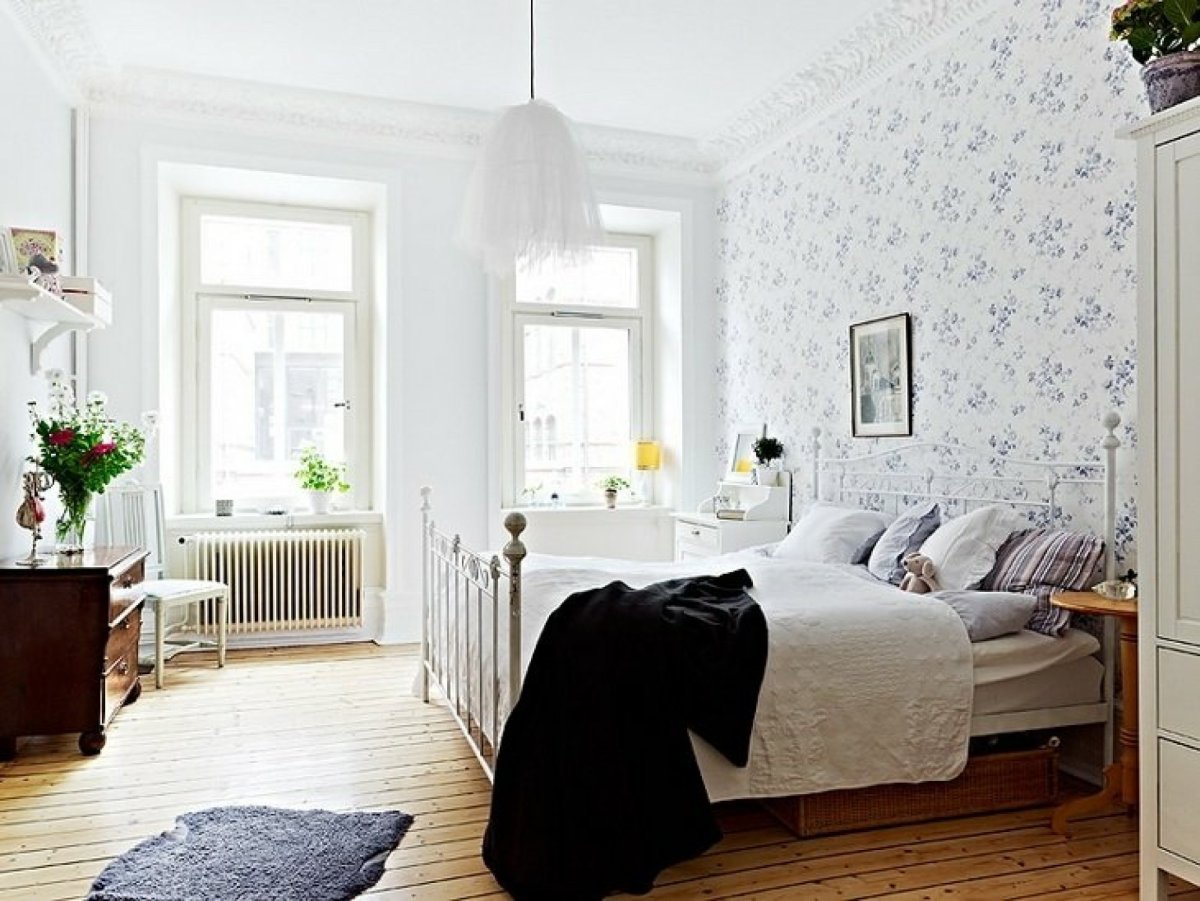 Спальня в стиле скандинавском с цветочком