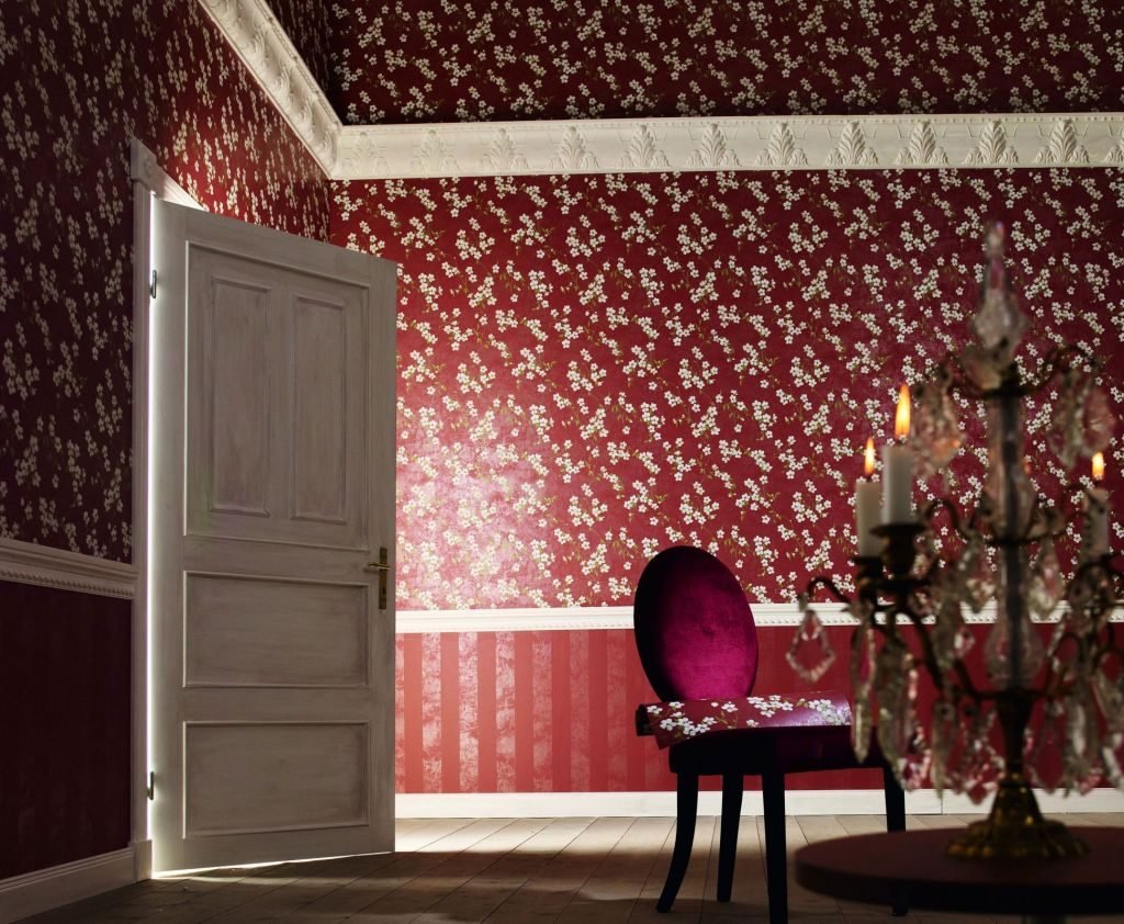 Бордовые обои в коридоре