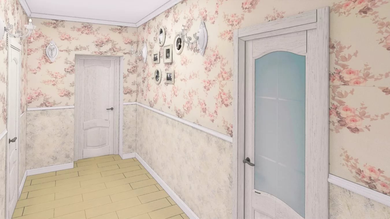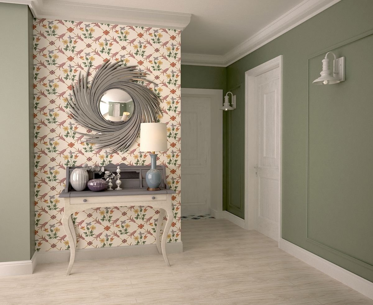 Прихожая с цветочными обоями