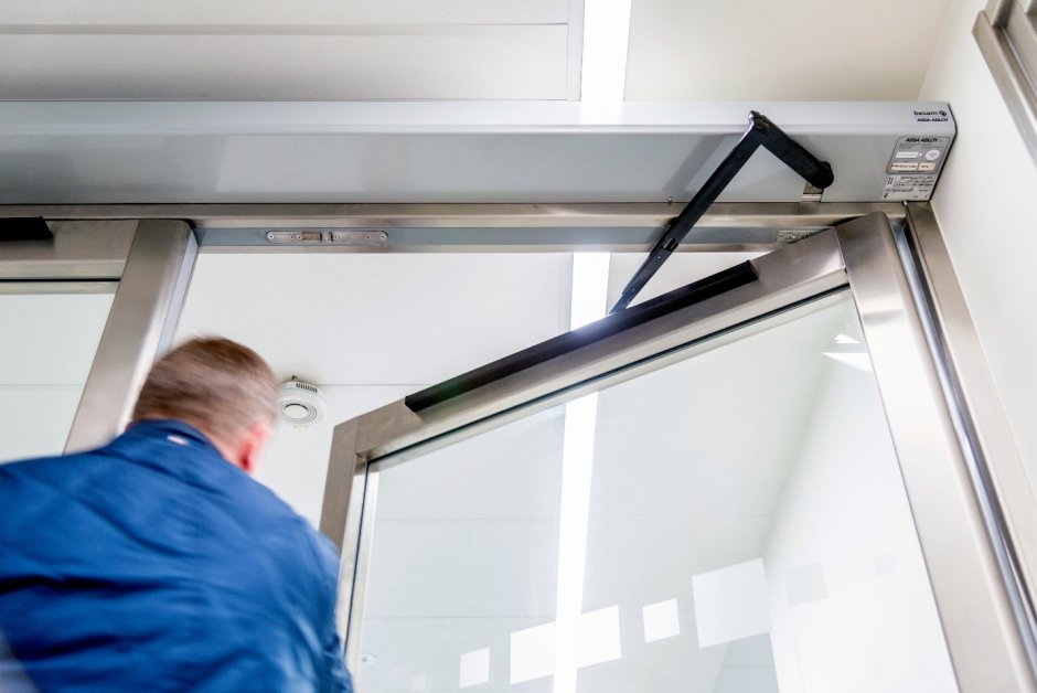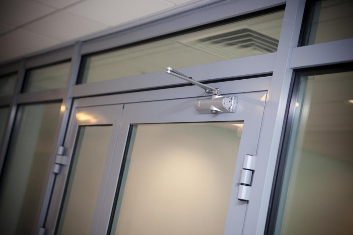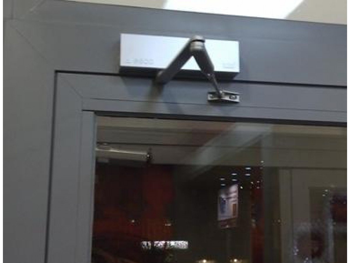 Монтаж доводчика на алюминиевую противопожарную дверь