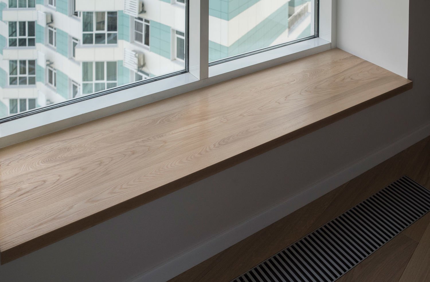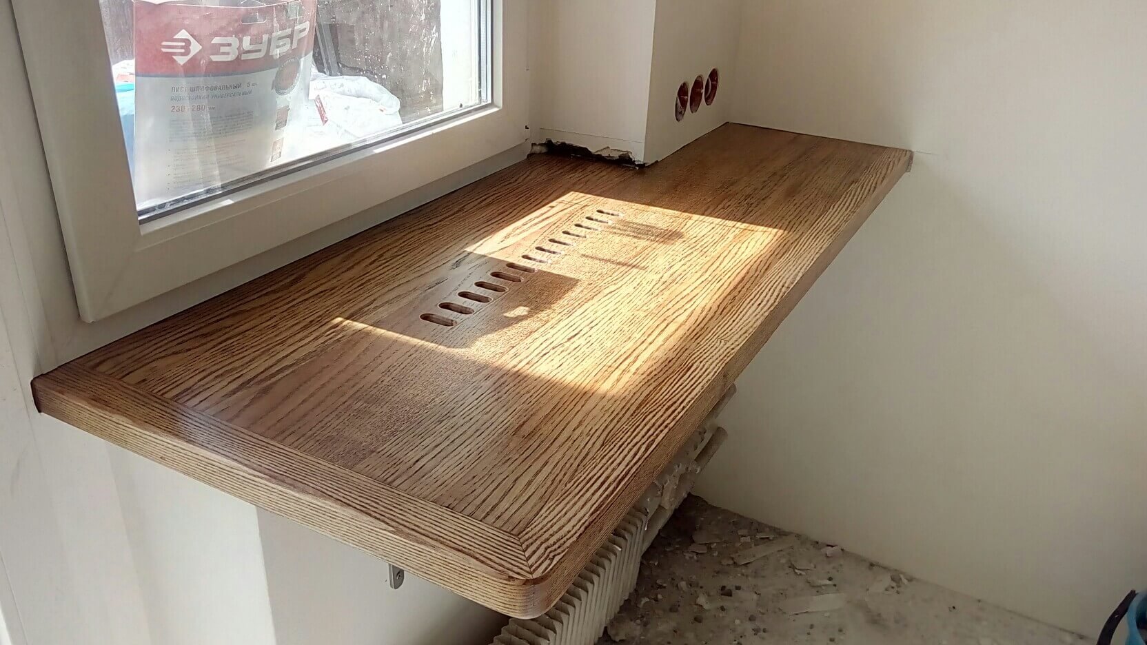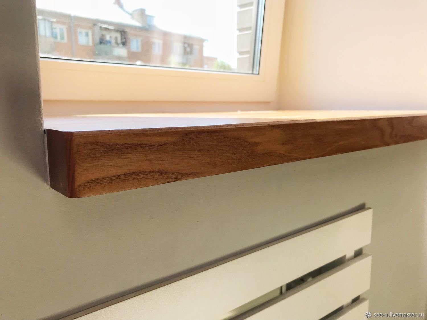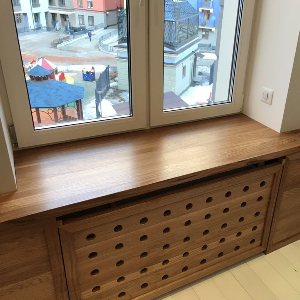 Деревянный подоконник с экраном