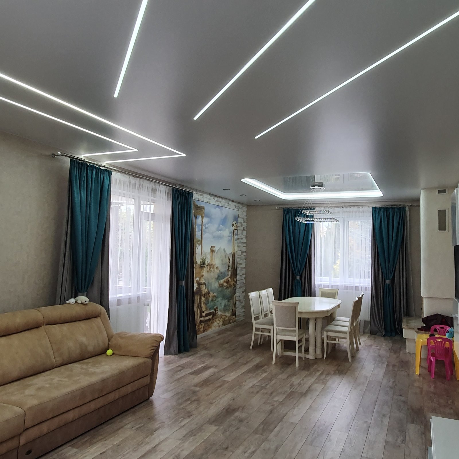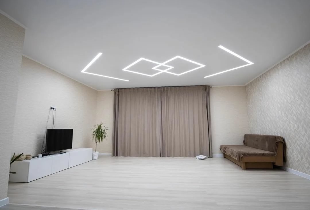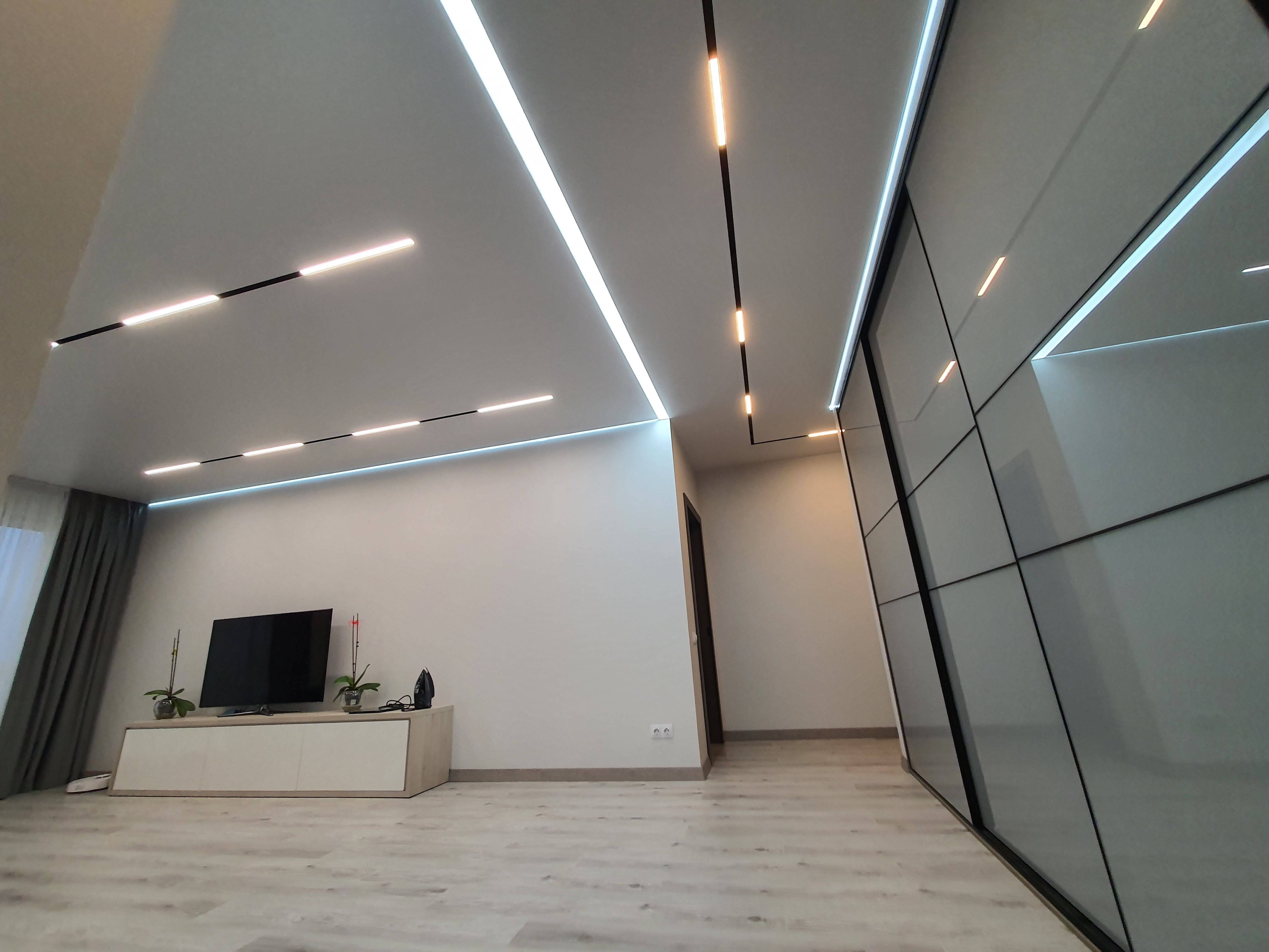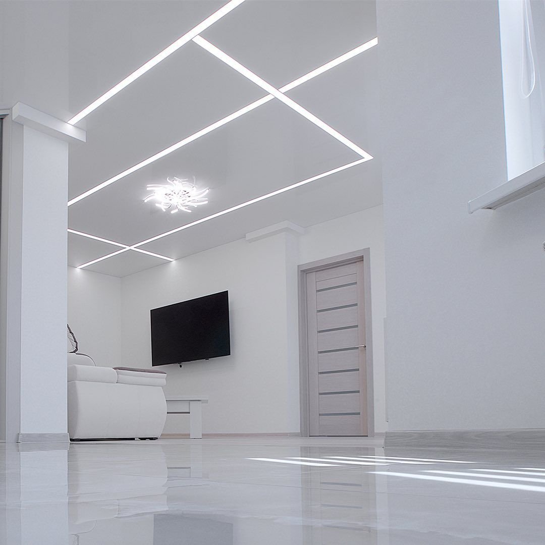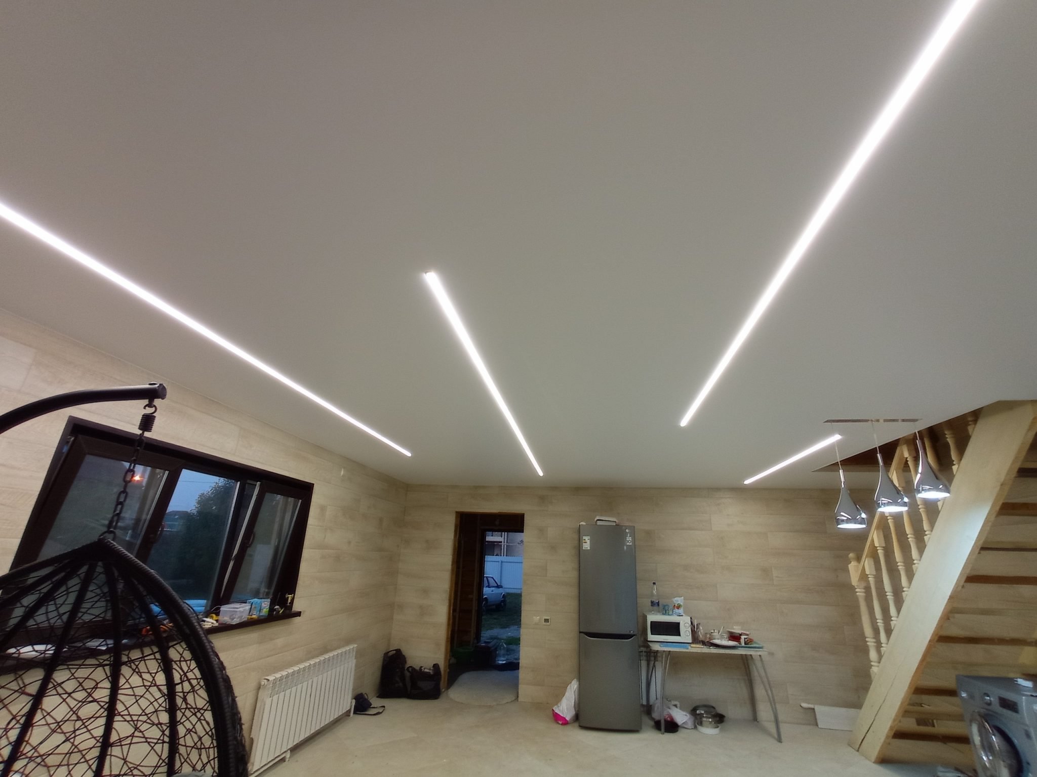 Флекси световые линии 30мм на натяжном потолке рассеиватель