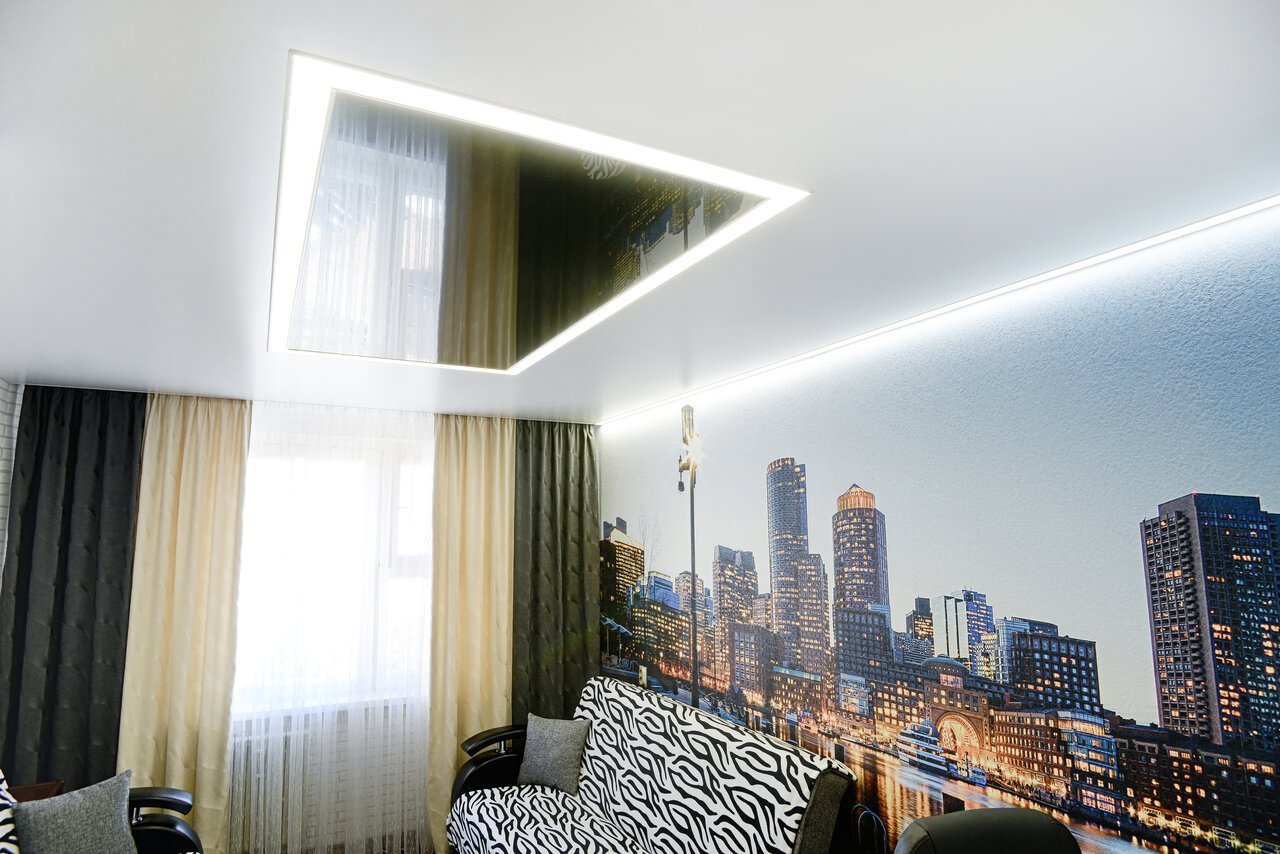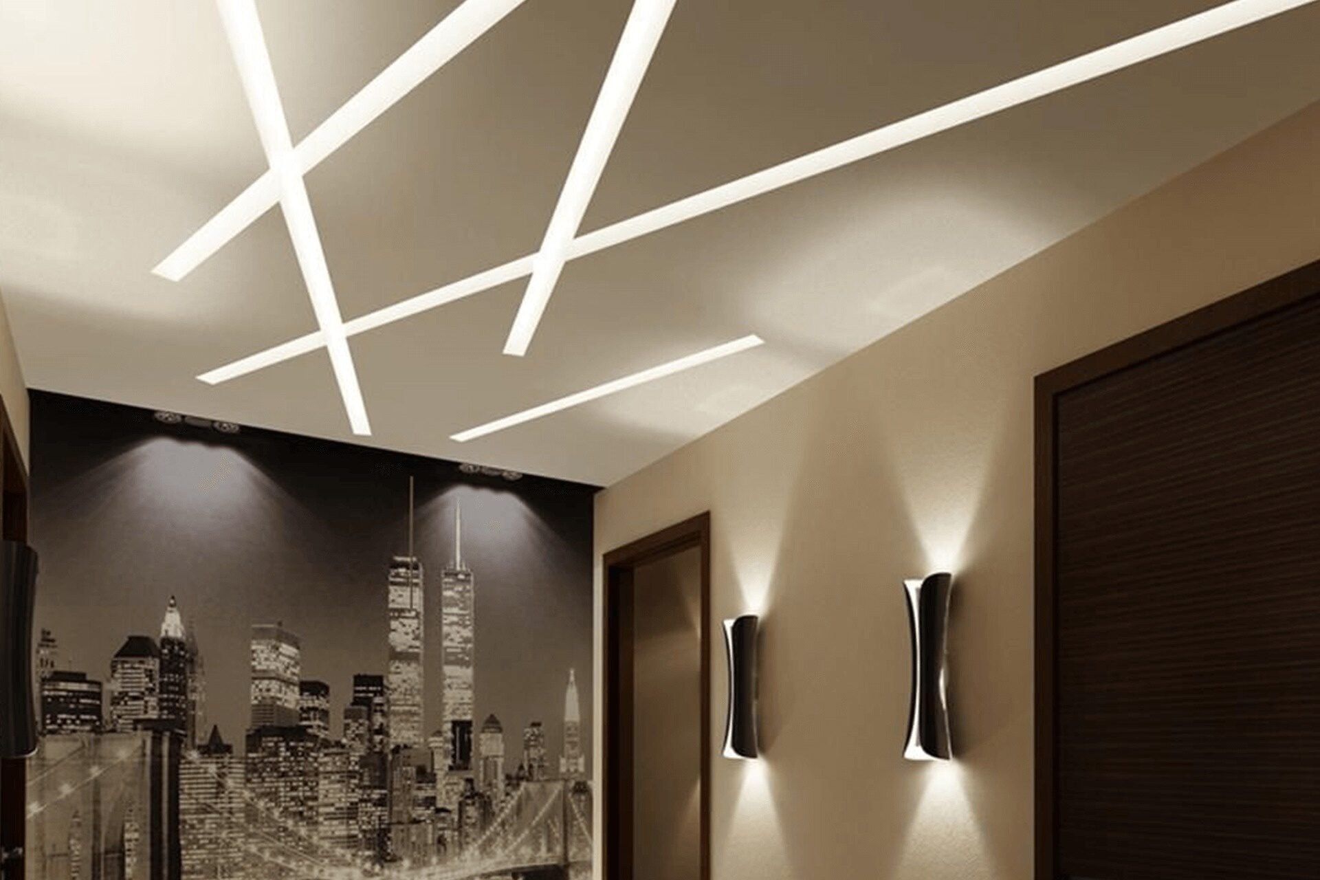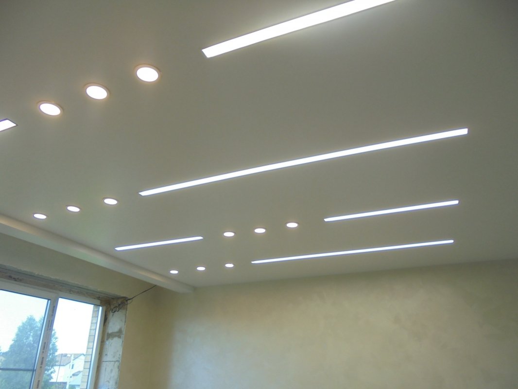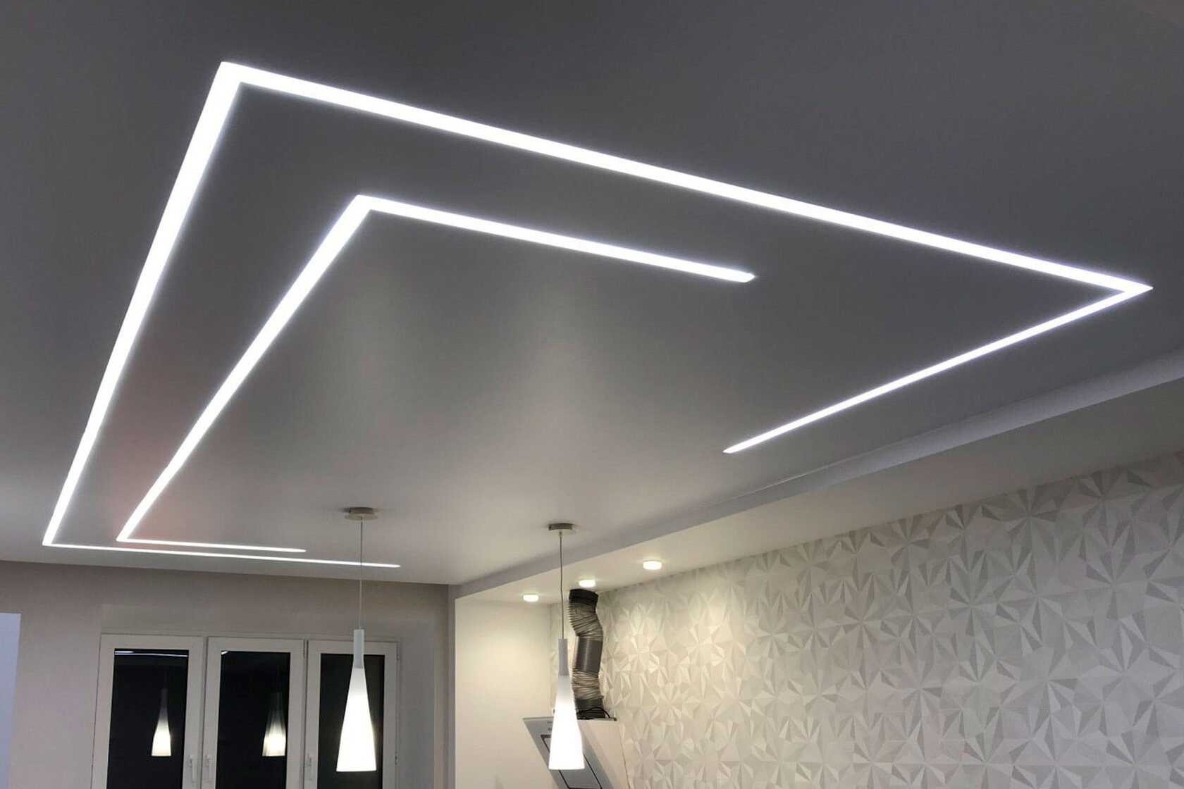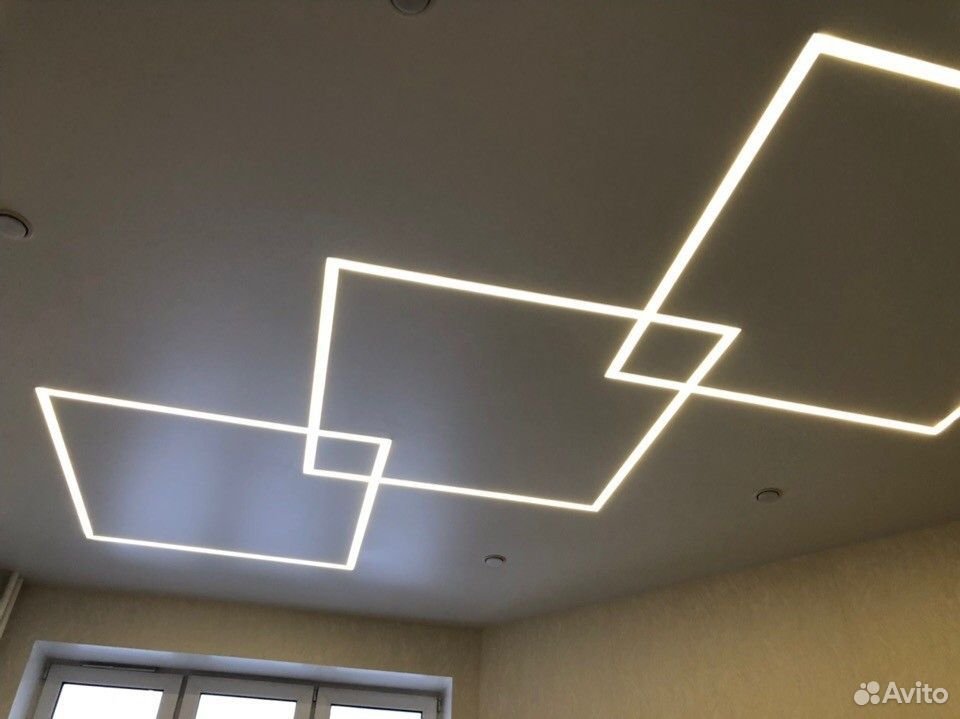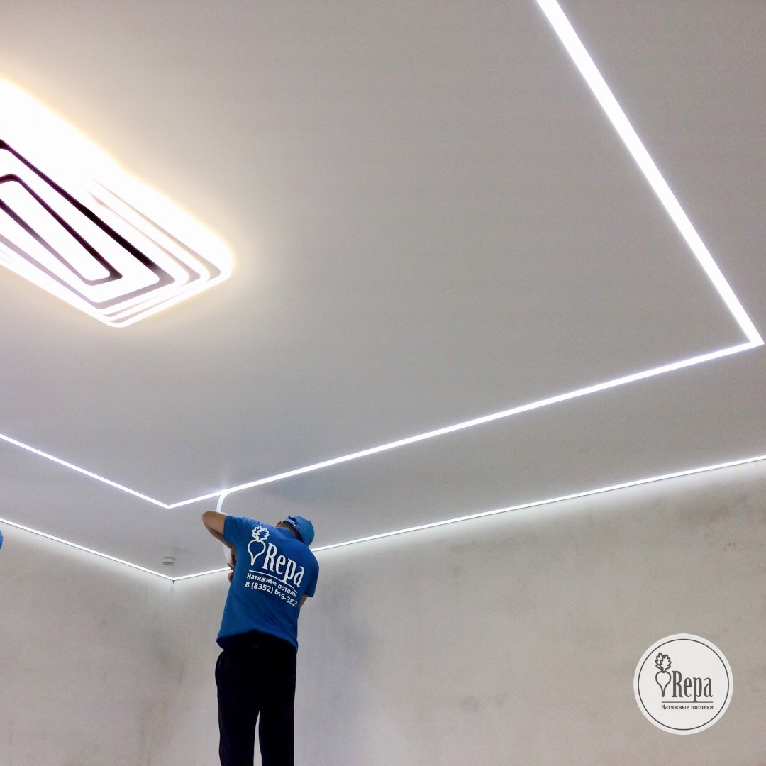 Флекси световые линии 30мм на натяжном потолке рассеиватель
