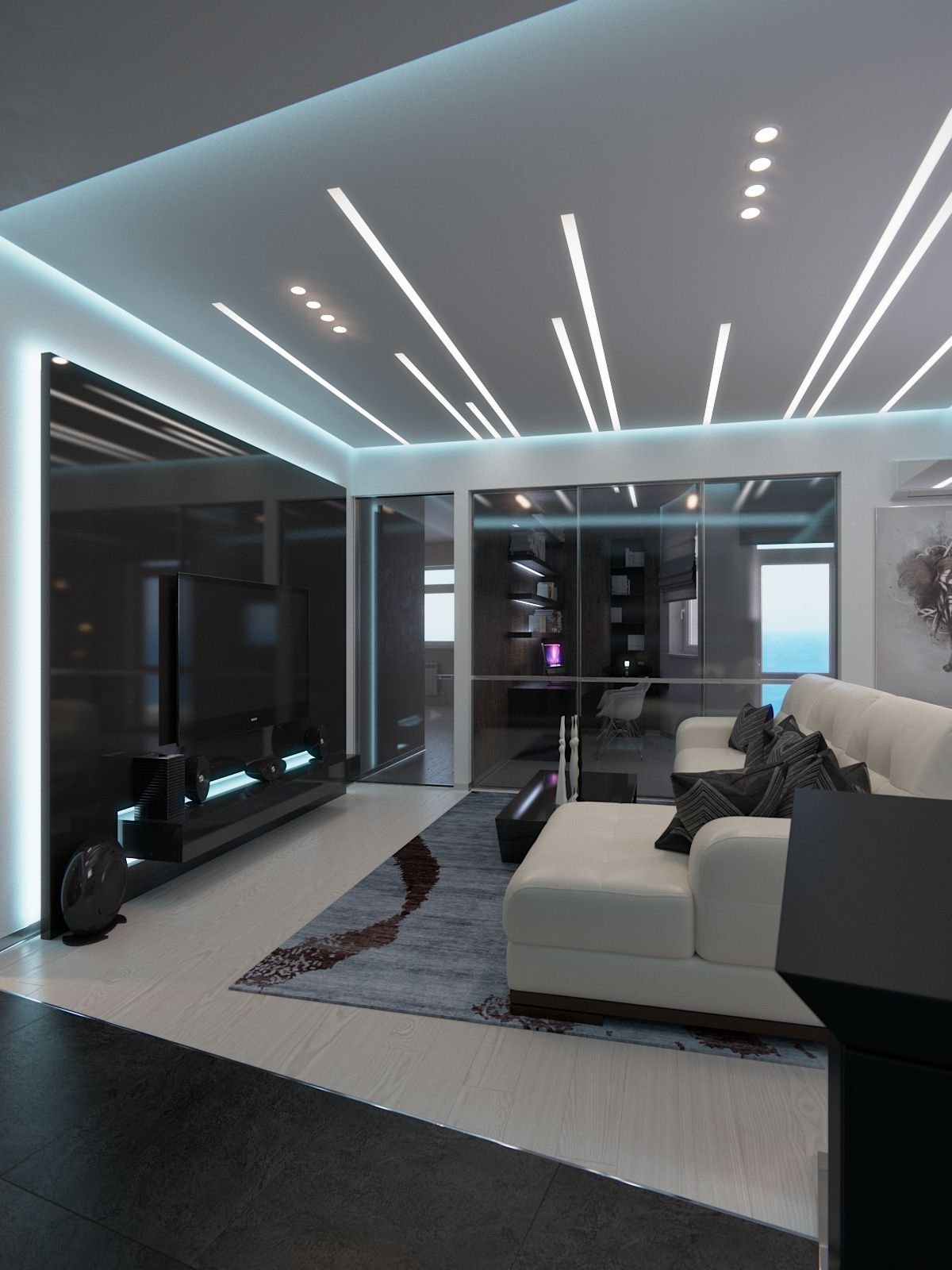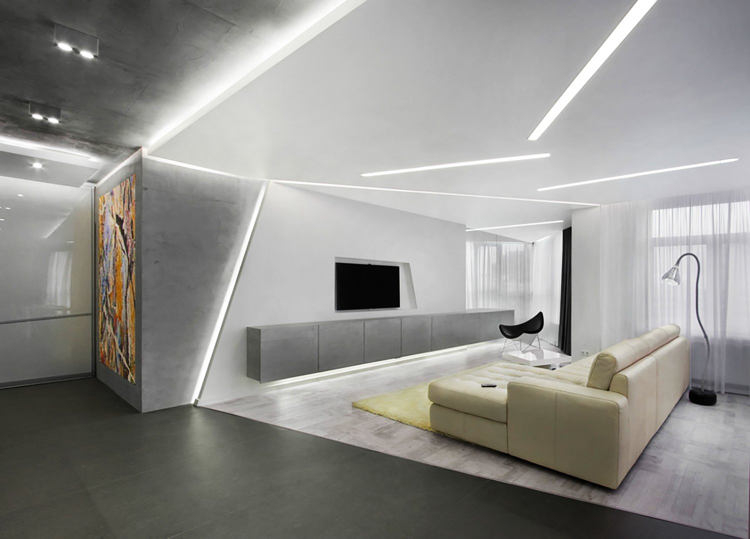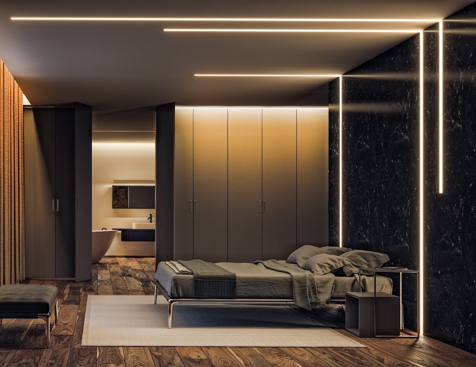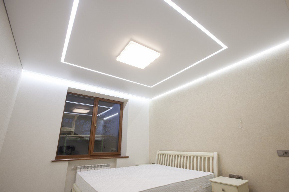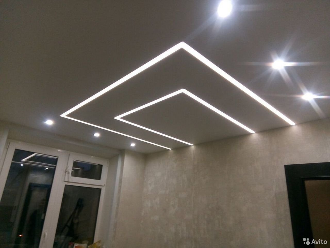 Флекси световые линии 30мм на натяжном потолке рассеиватель