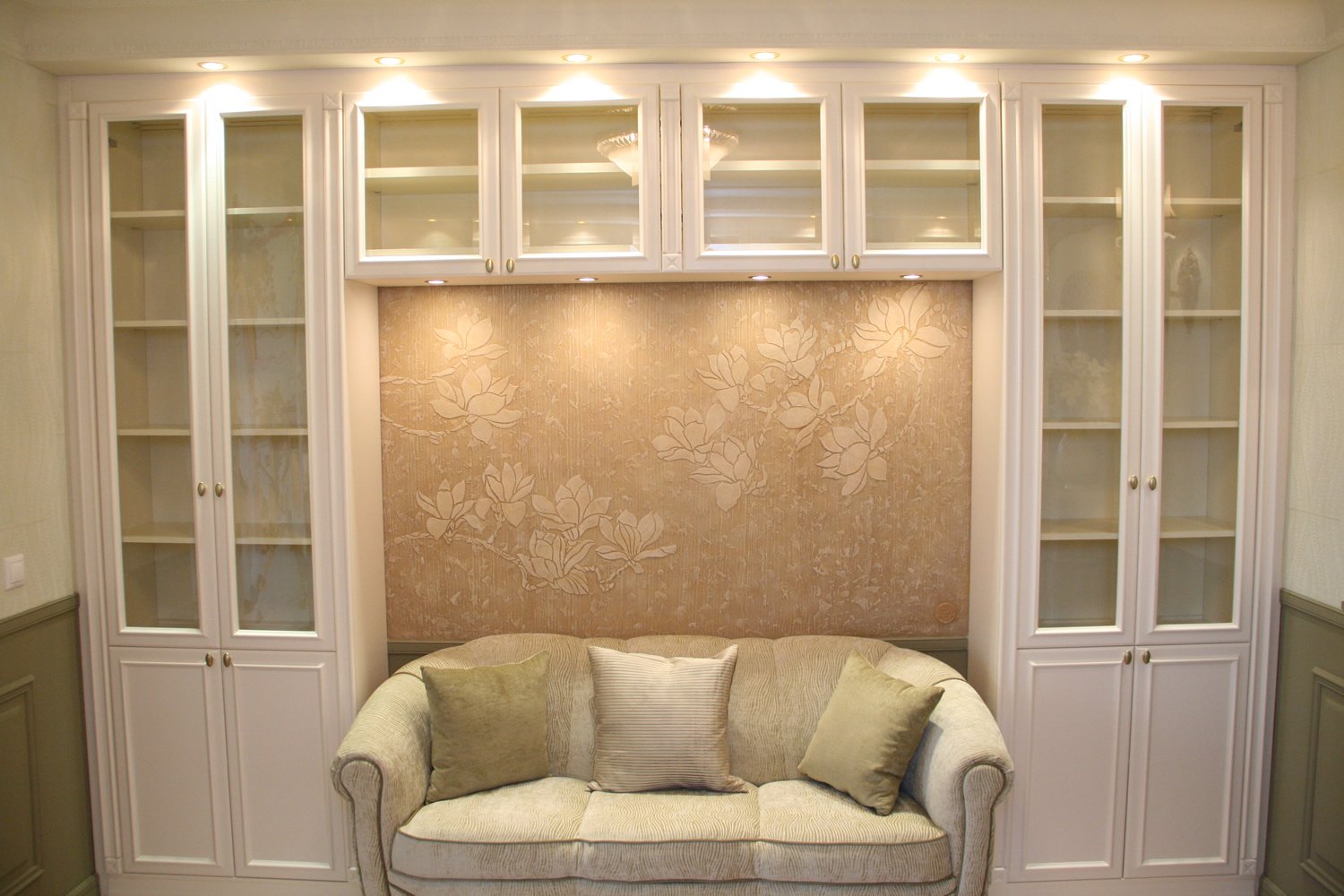 Шкафы в гостиную с диваном