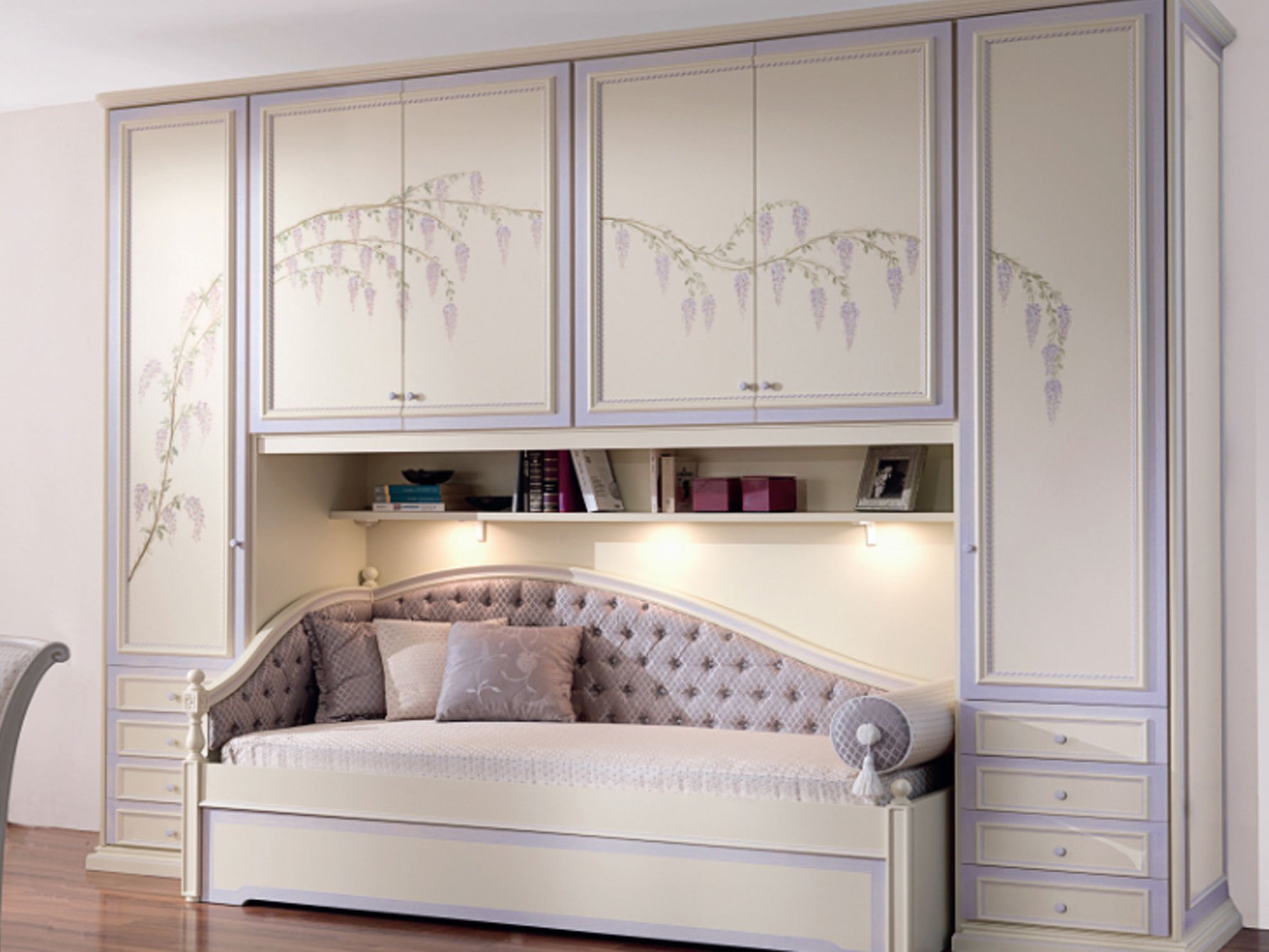 Встроенные шкафы над диваном