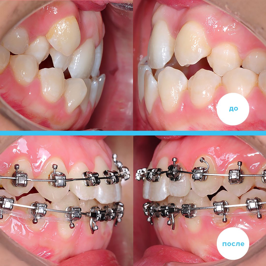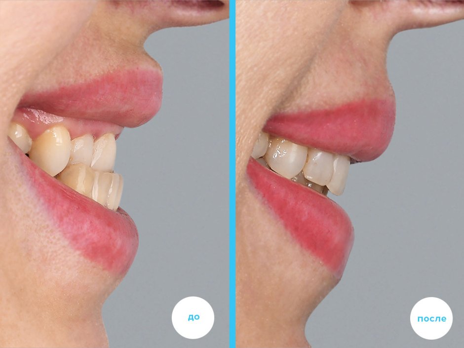 Глубокий прикус до и после брекетов