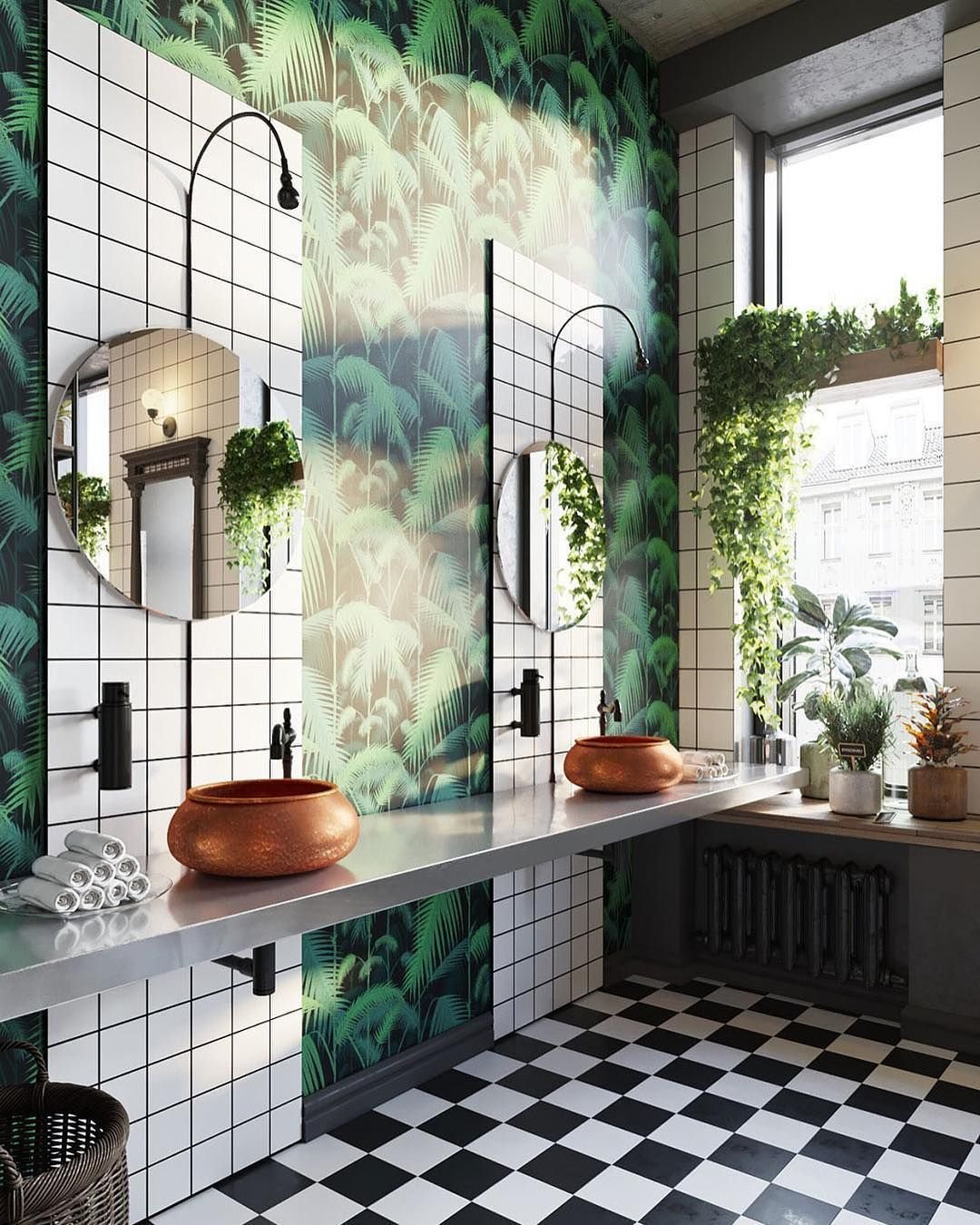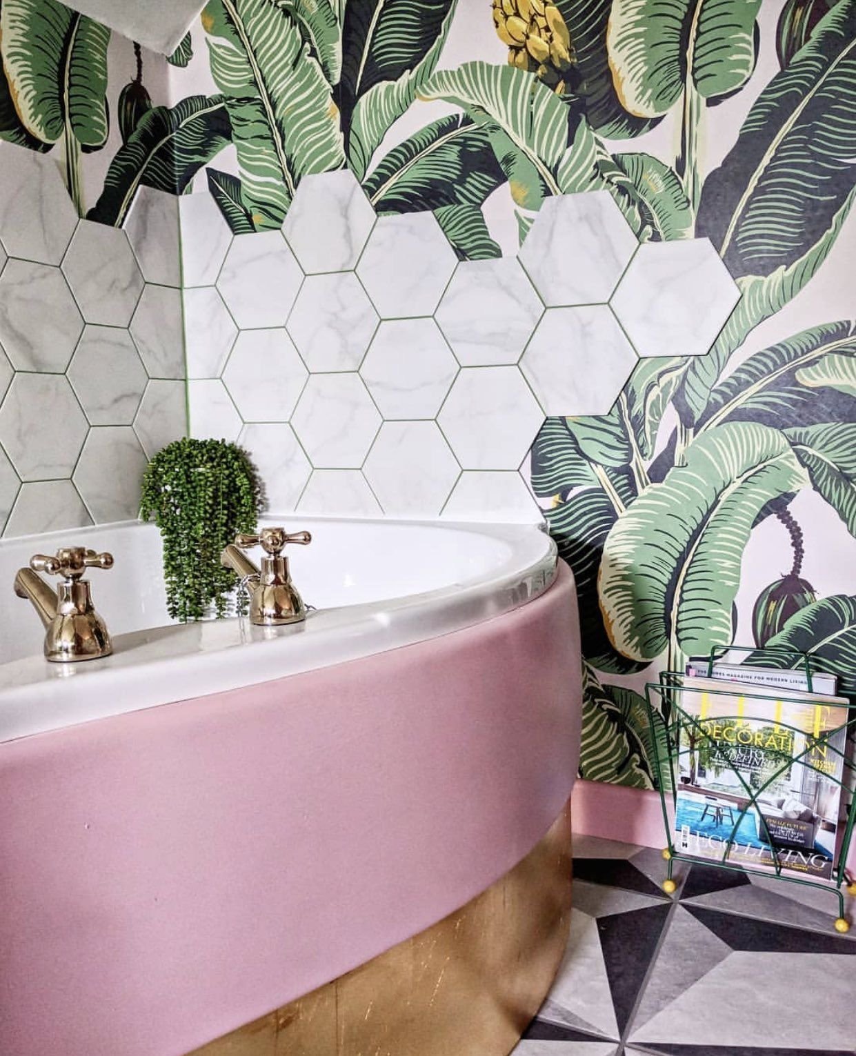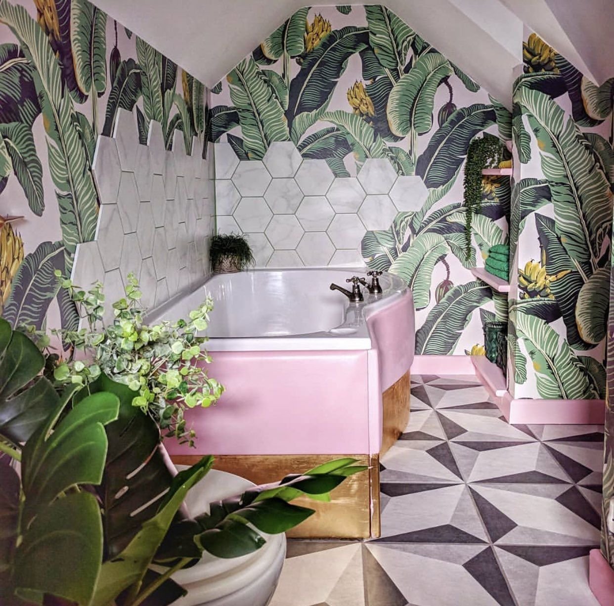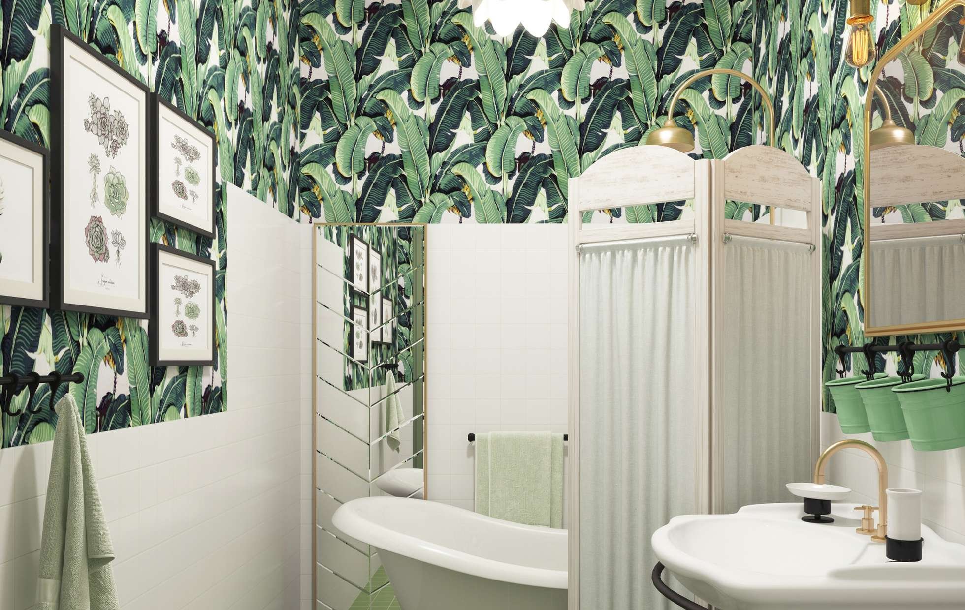 Ванная комната с тропическим принтом