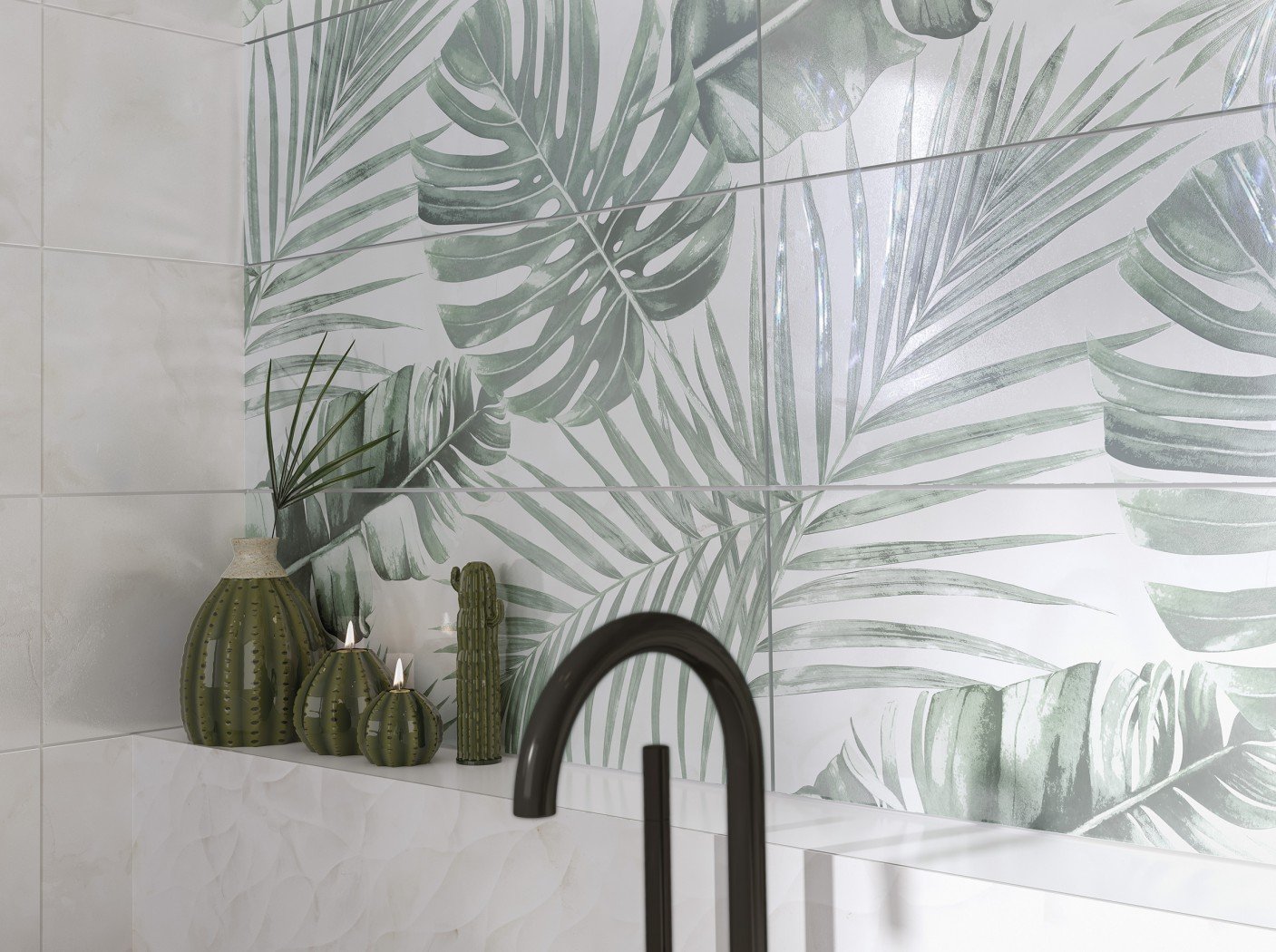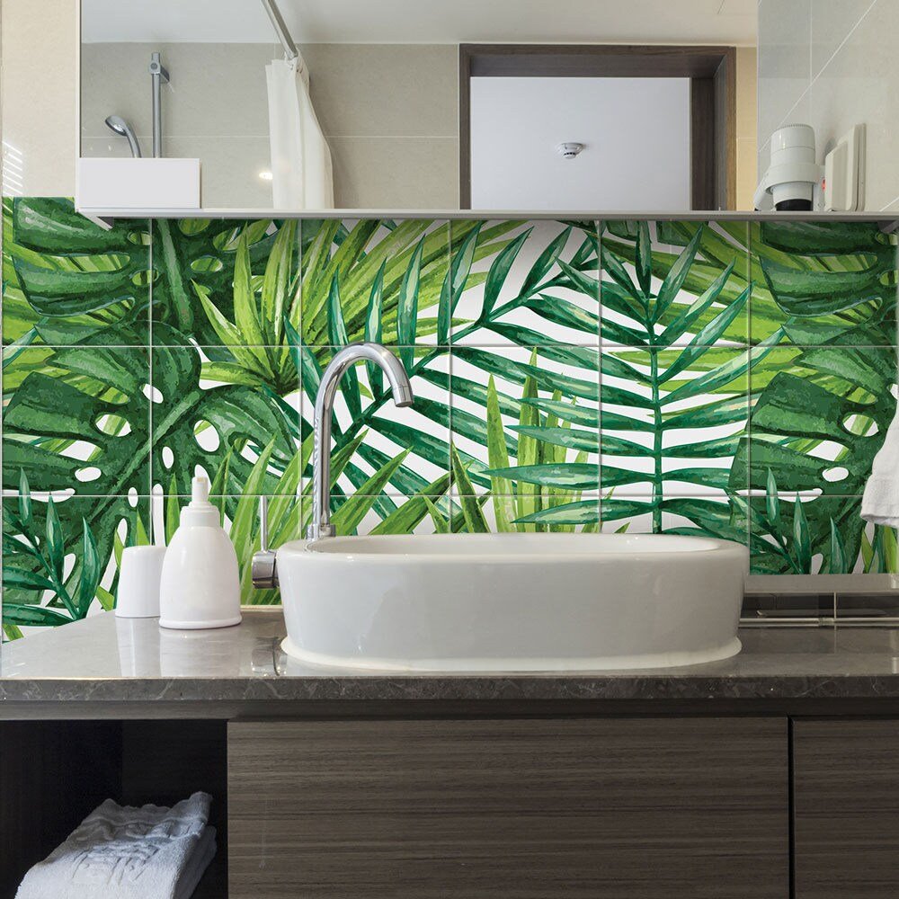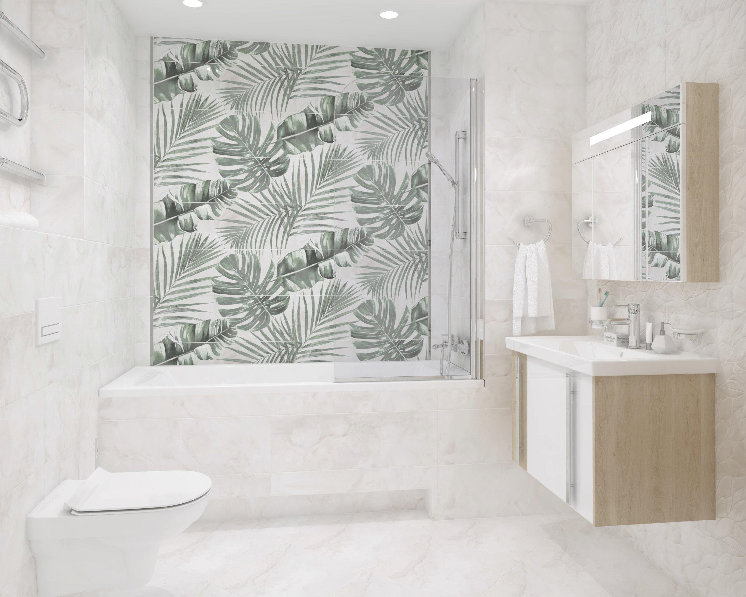 Плитка в ванную с тропическими листьями