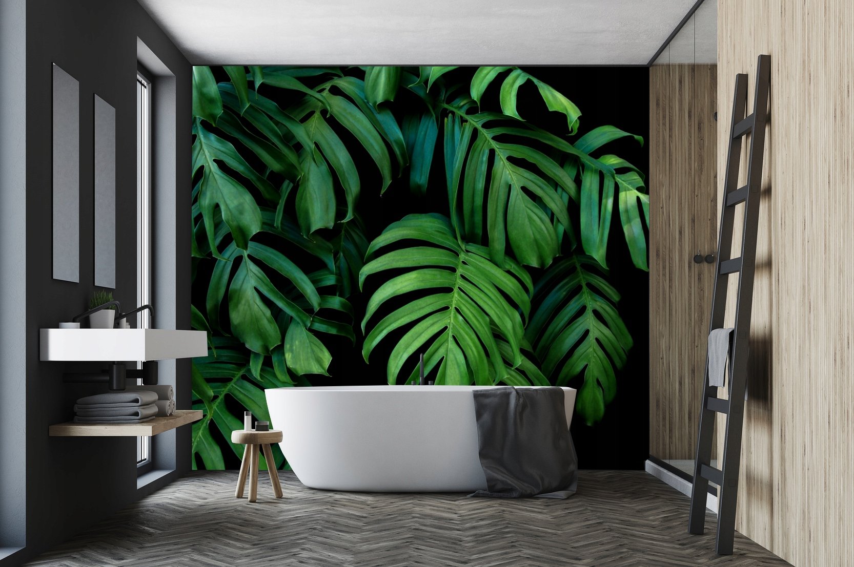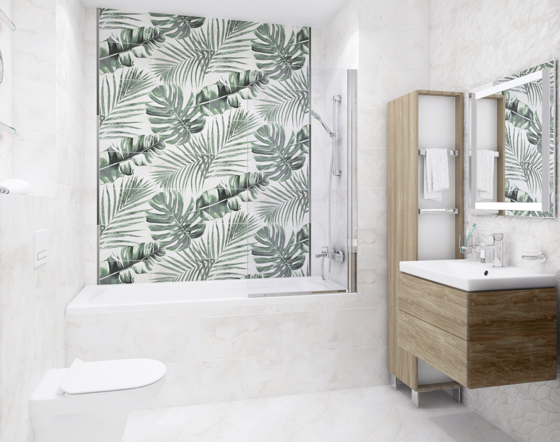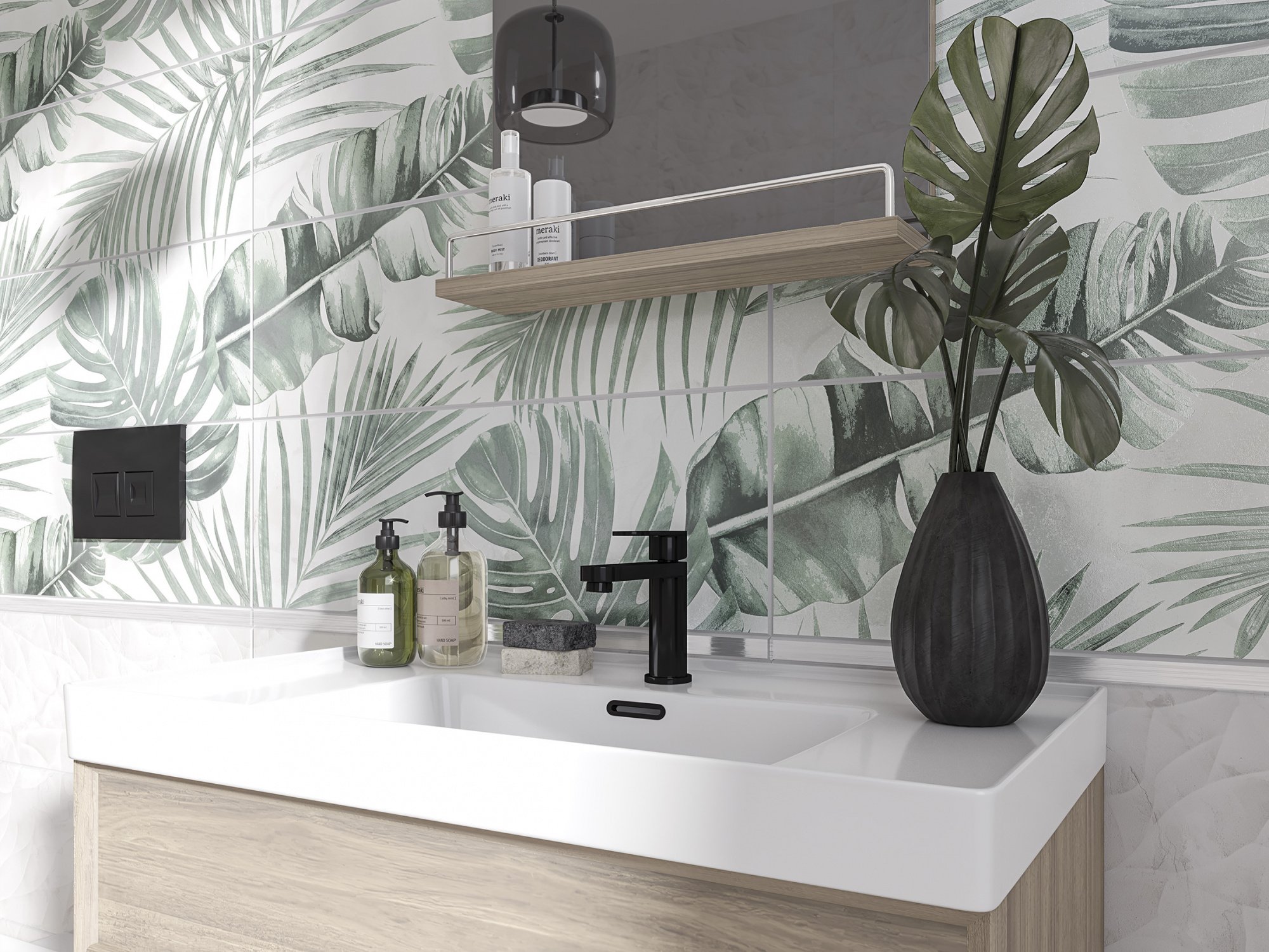 Плитка в ванную с тропическими листьями