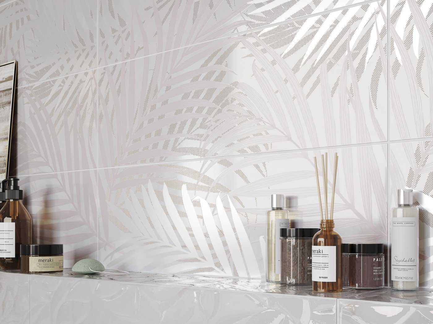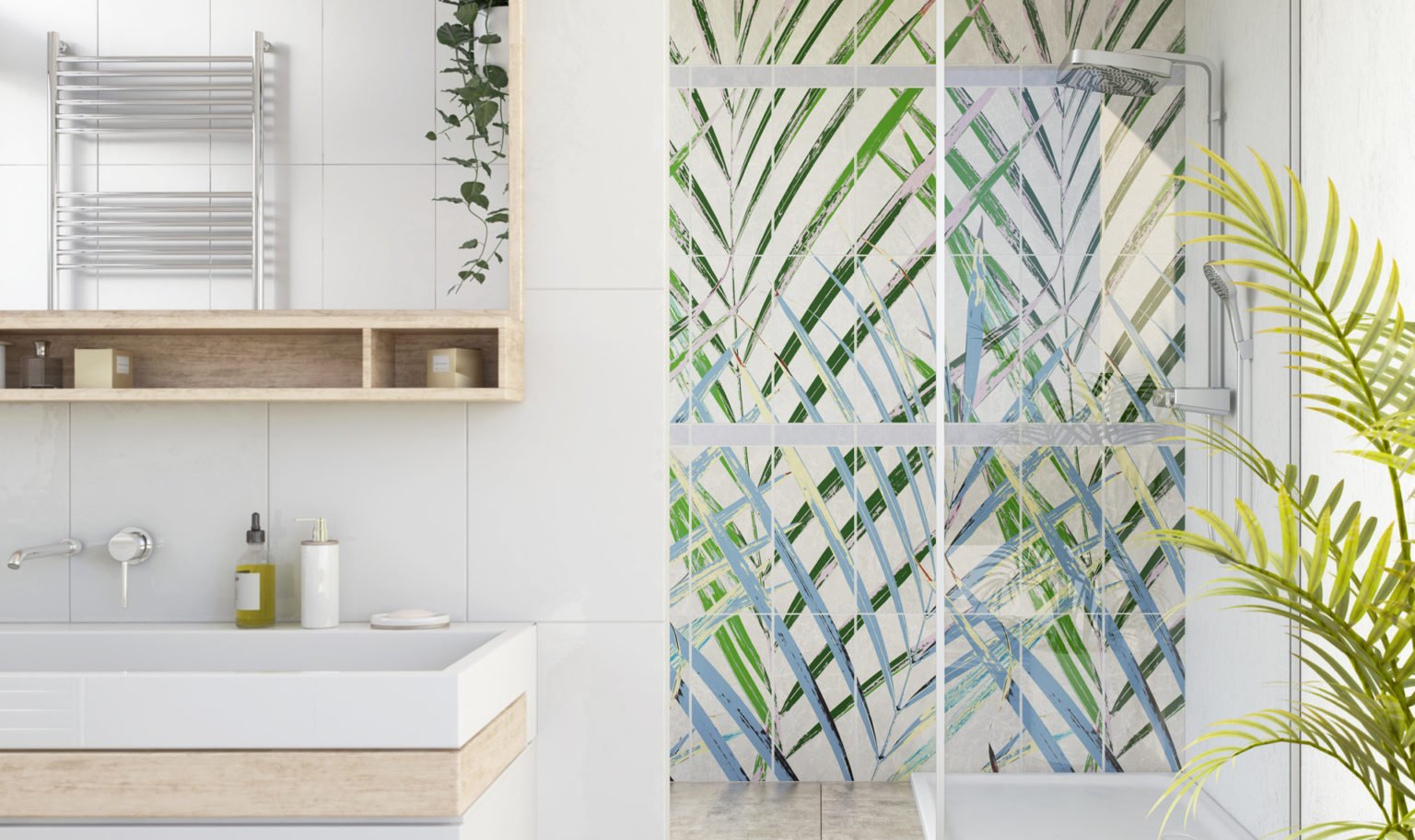 Плитка в ванную с листьями пальмы