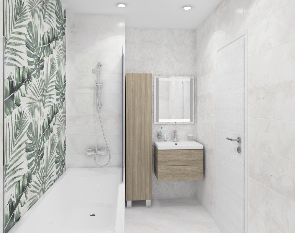 Плитка в ванную с листьями