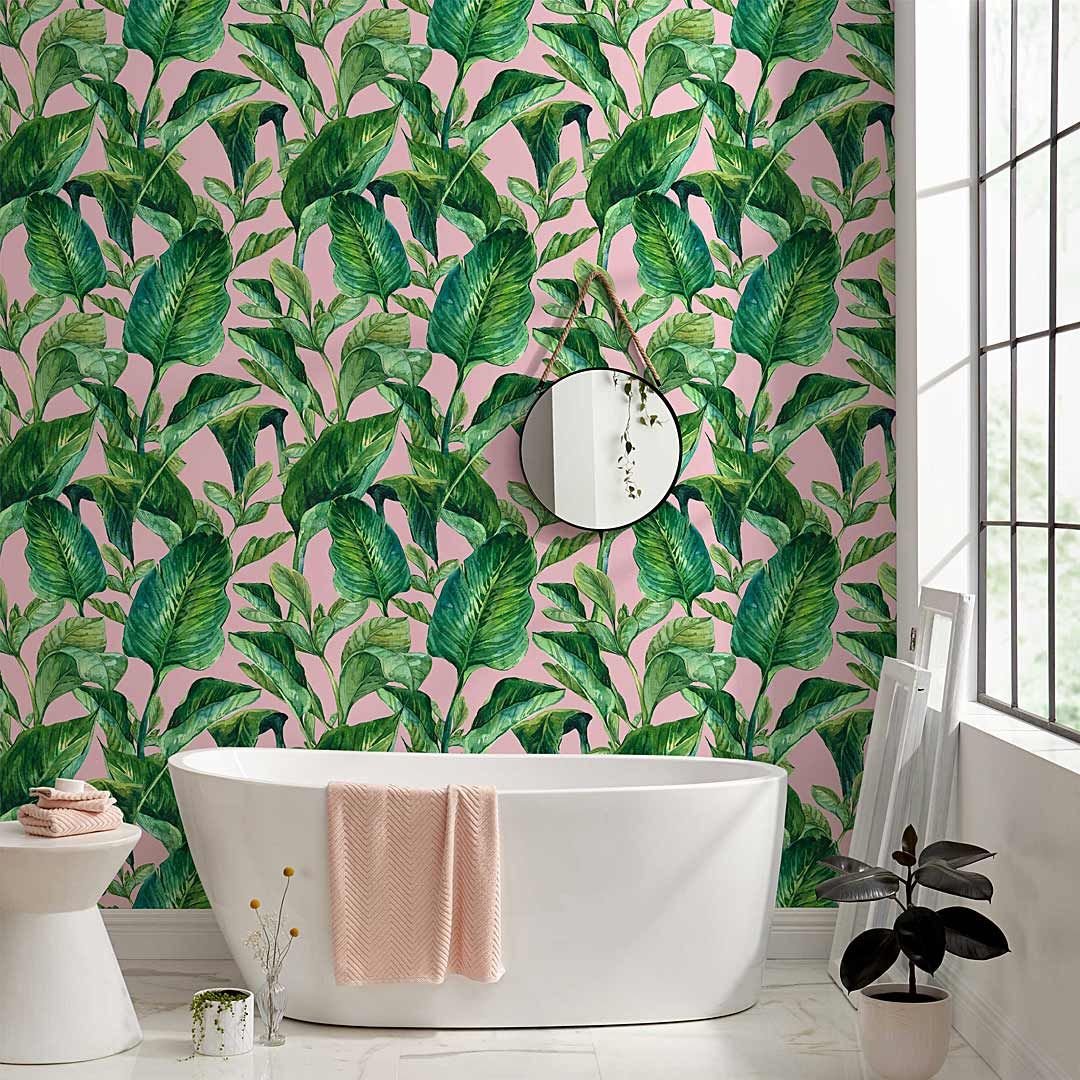 Ванная комната с тропическим рисунком