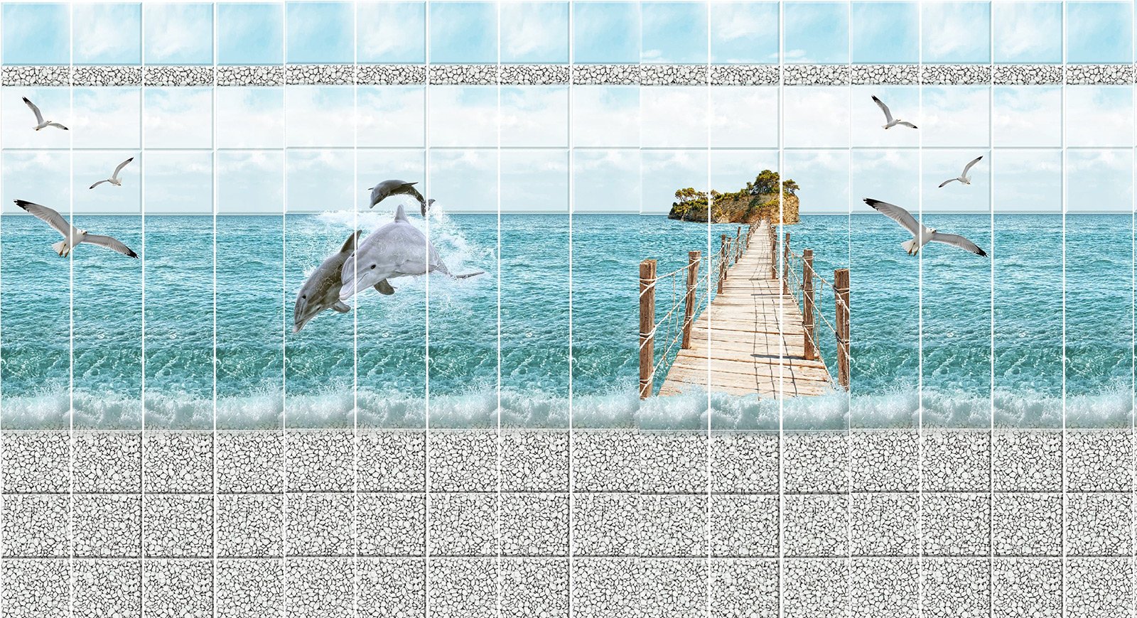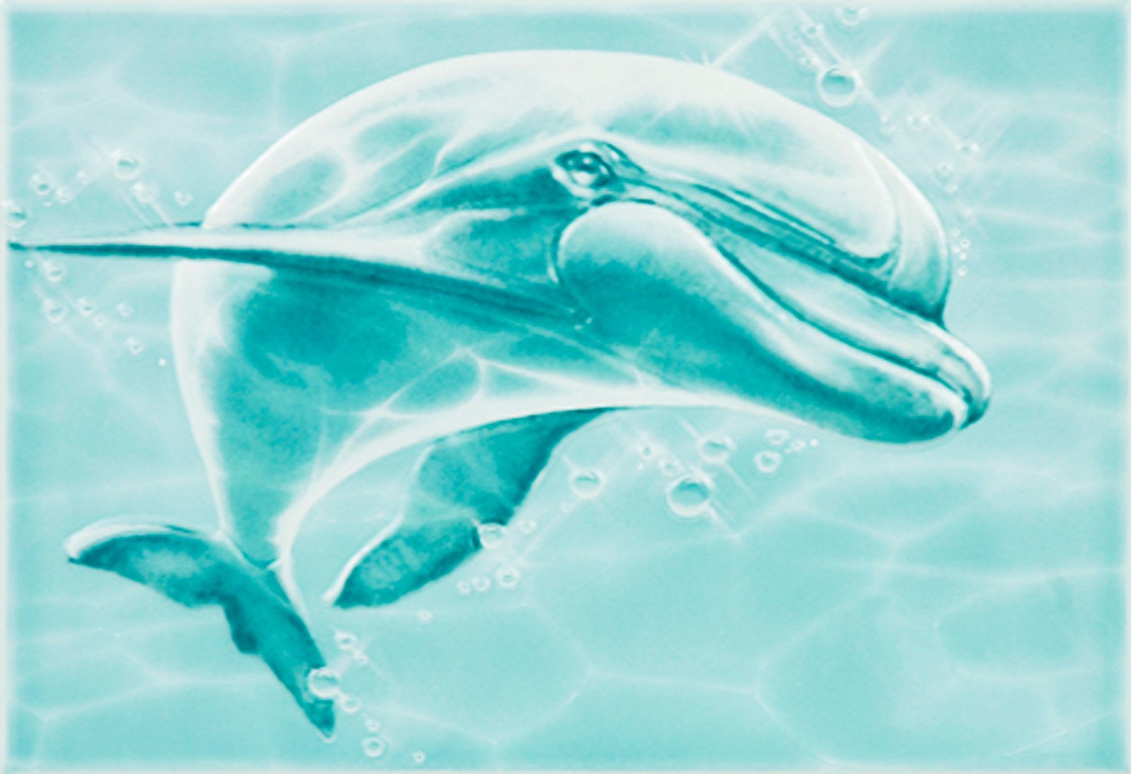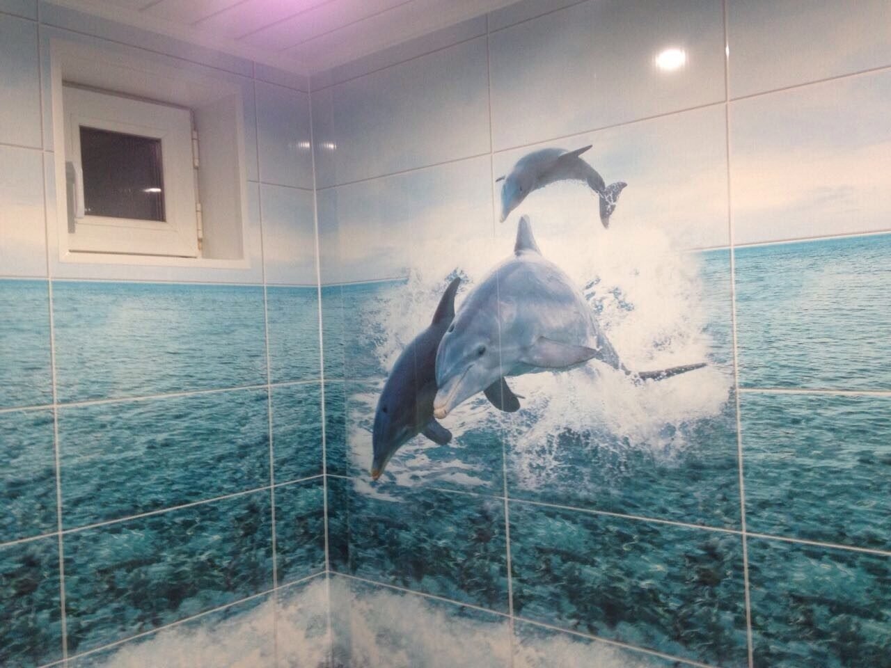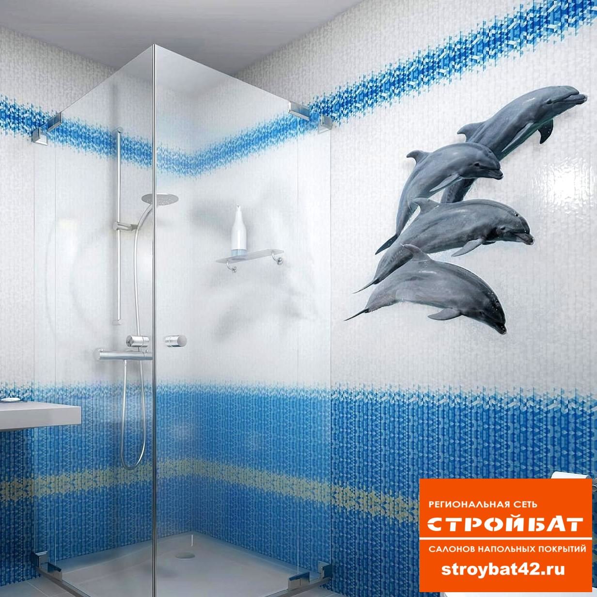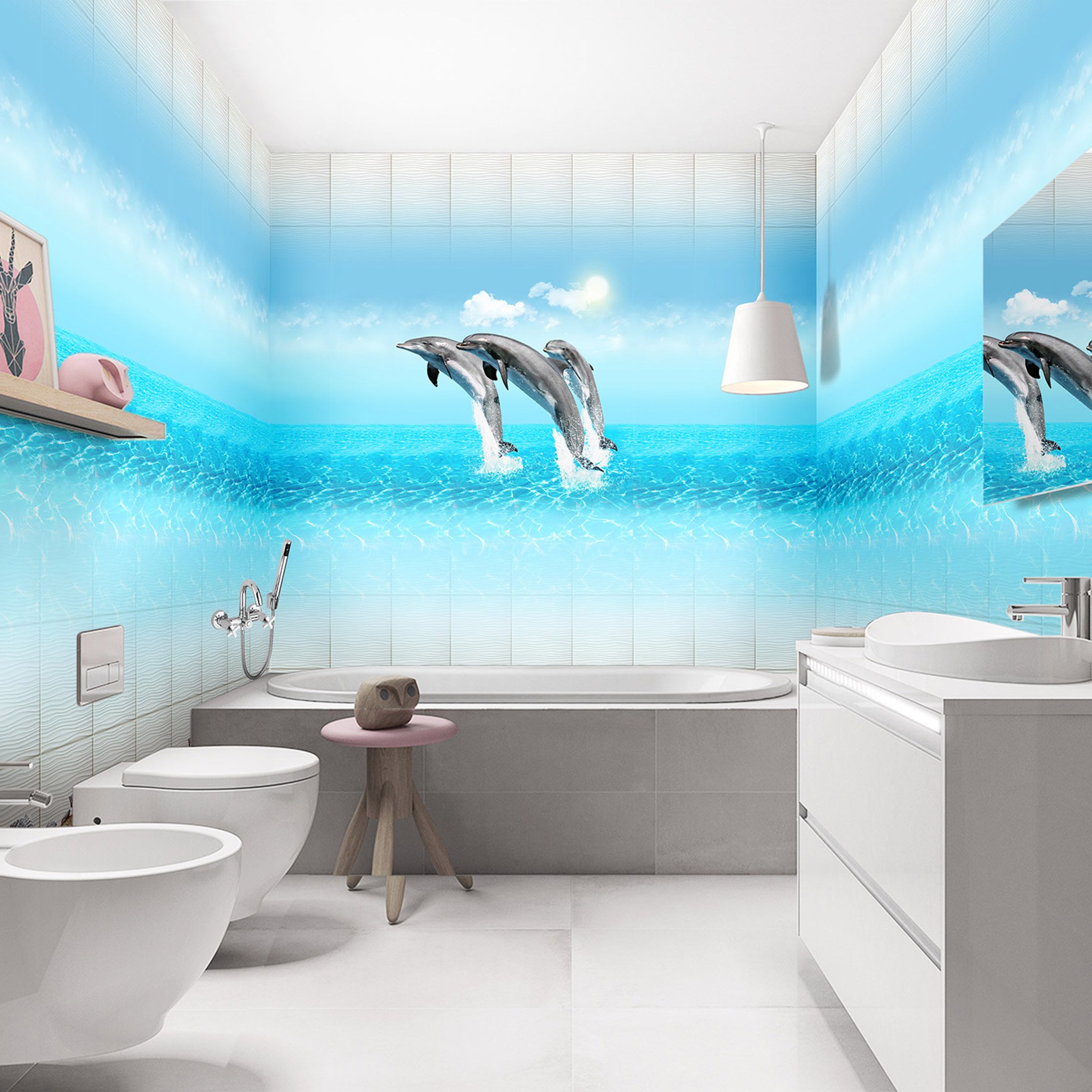 Стеновая панель голубая Лагуна Кронапласт дельфины