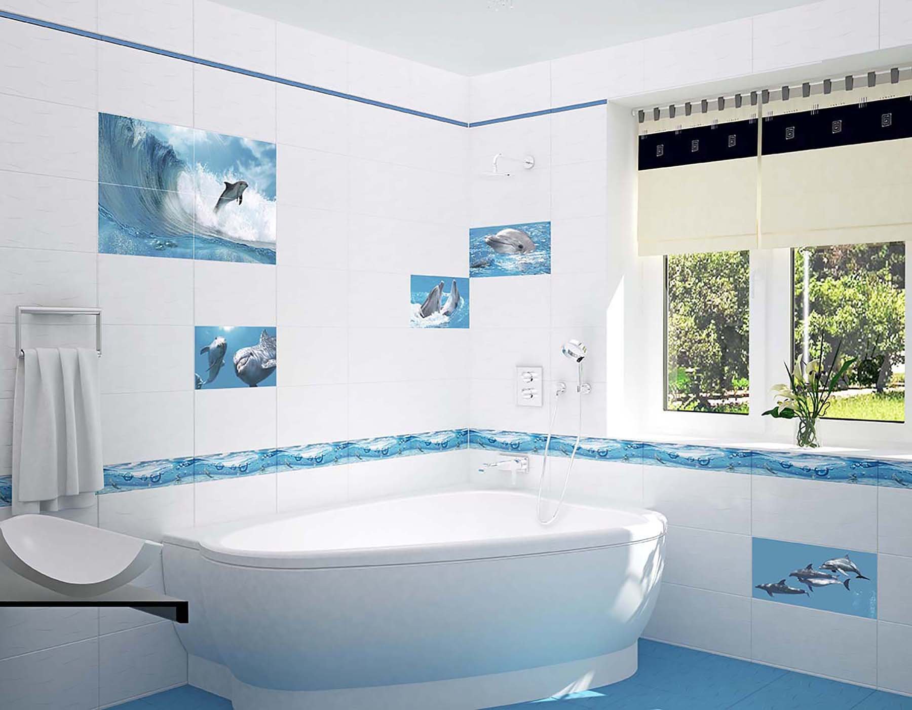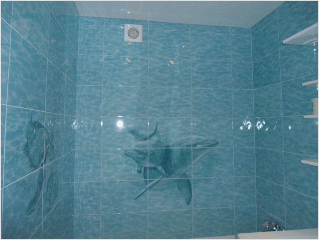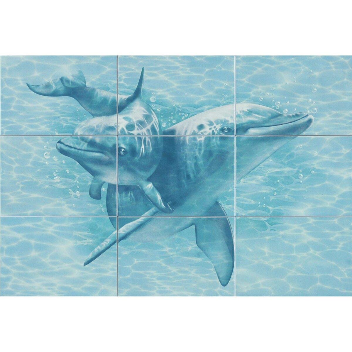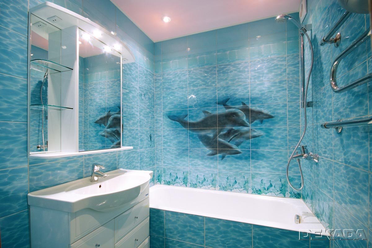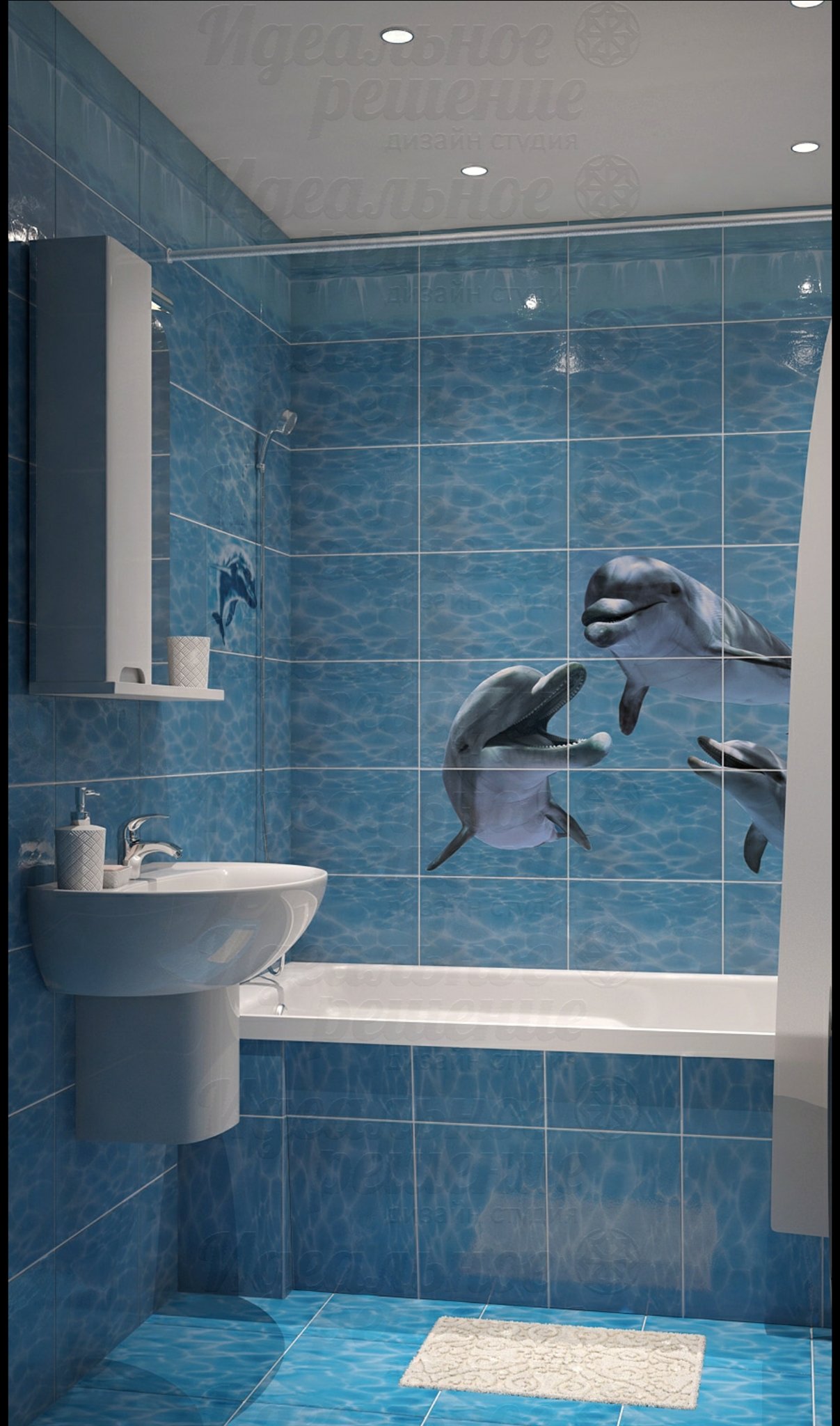 Стеновая панель голубая Лагуна Кронапласт дельфины
