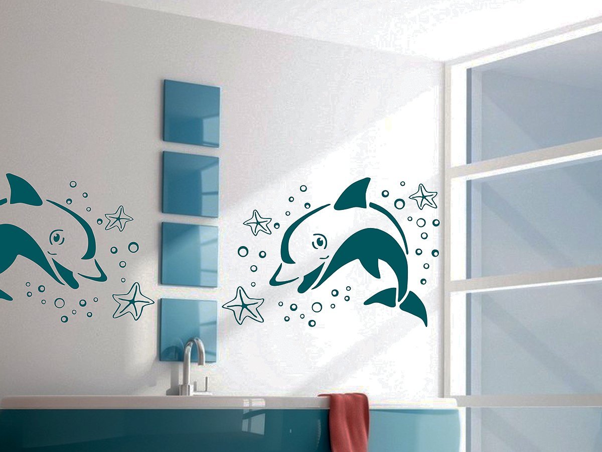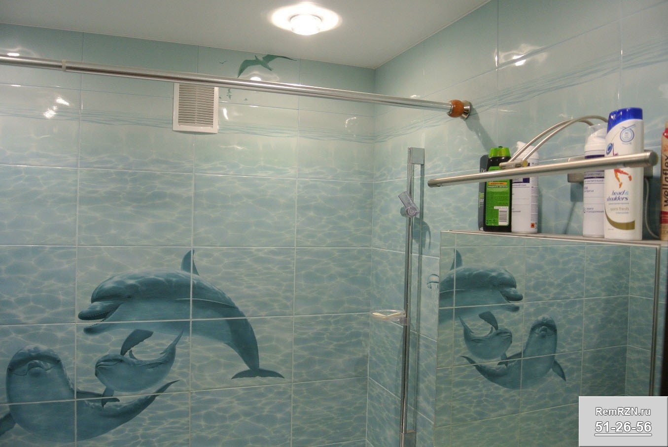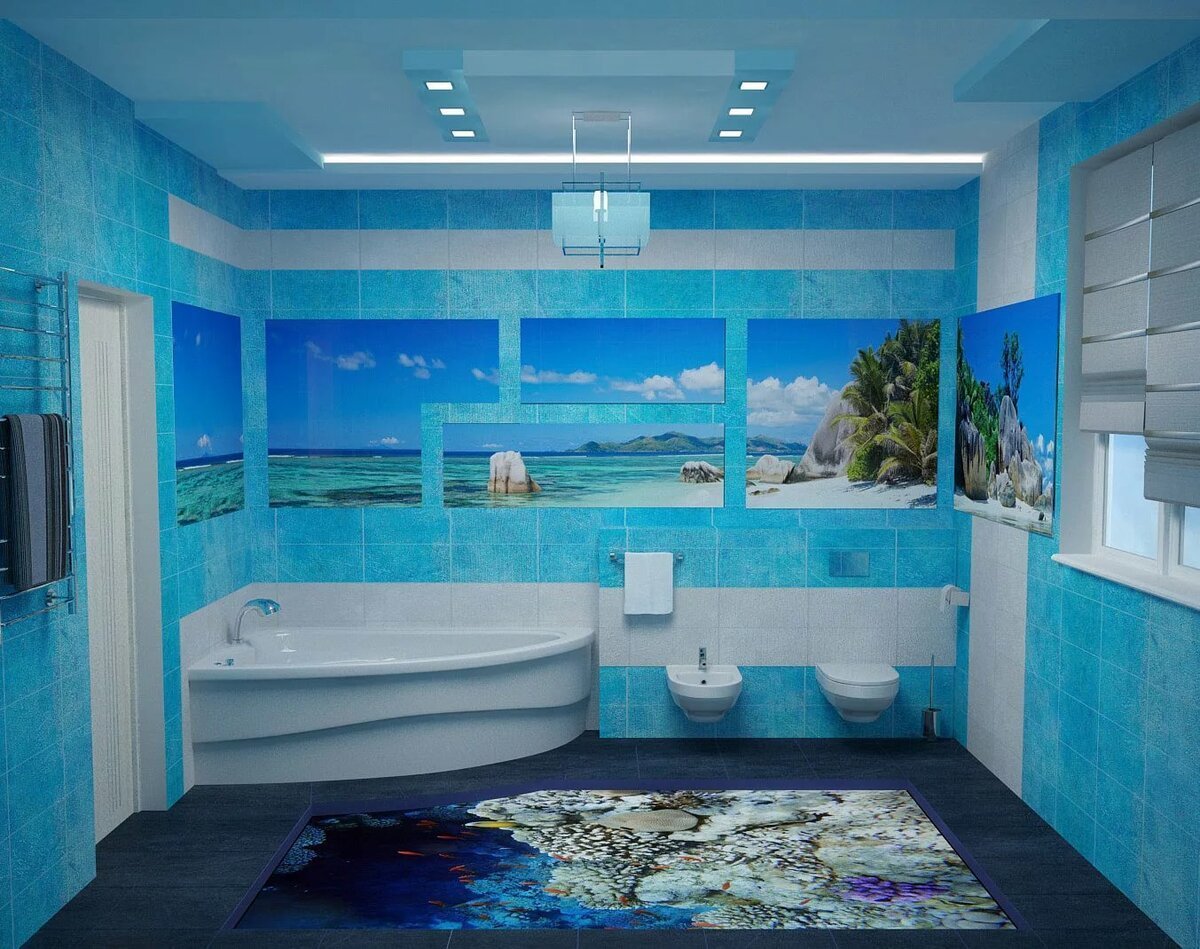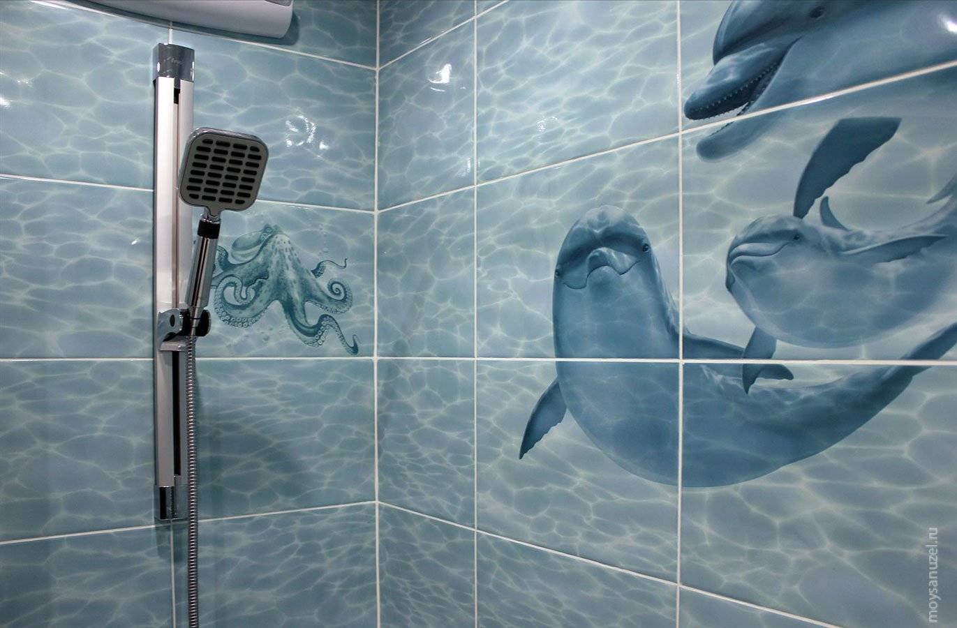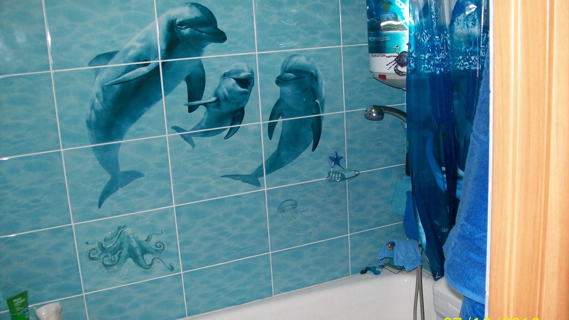 Стеновая панель голубая Лагуна Кронапласт дельфины