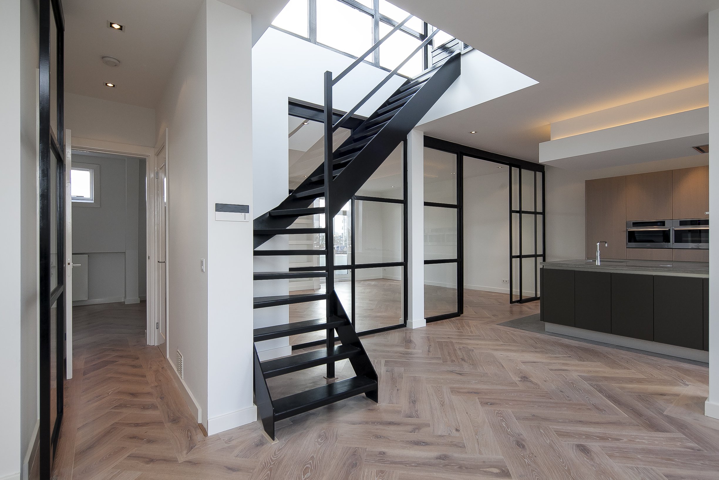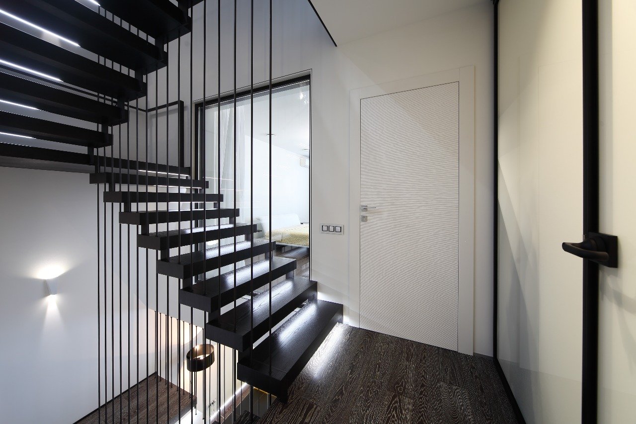 Лестницы на металлическом каркасе в таунхаусе
