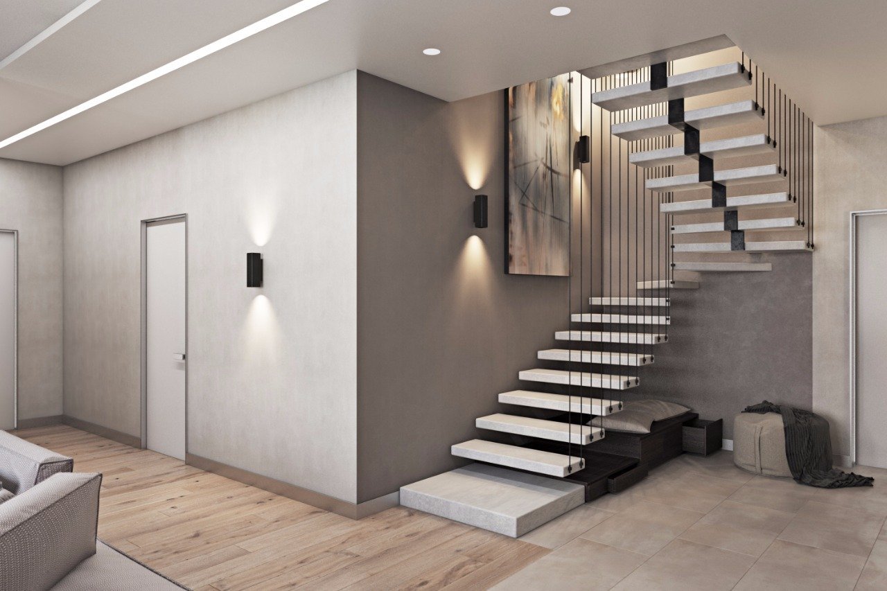Монолитная лестница в таунхаусе