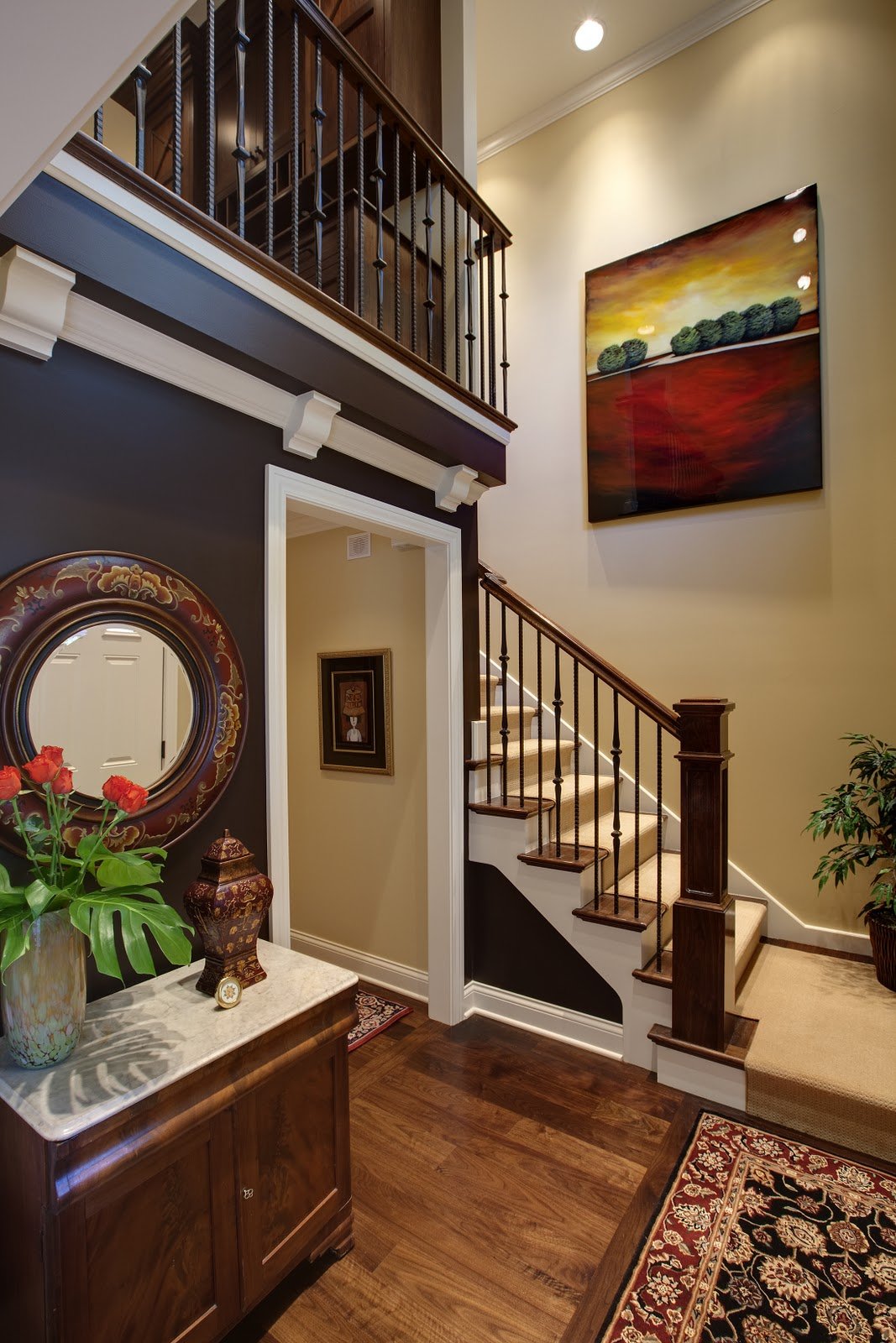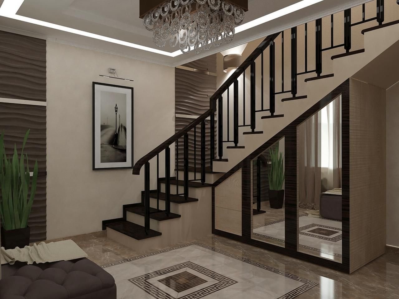 Прихожая с лестницей в таунхаусе