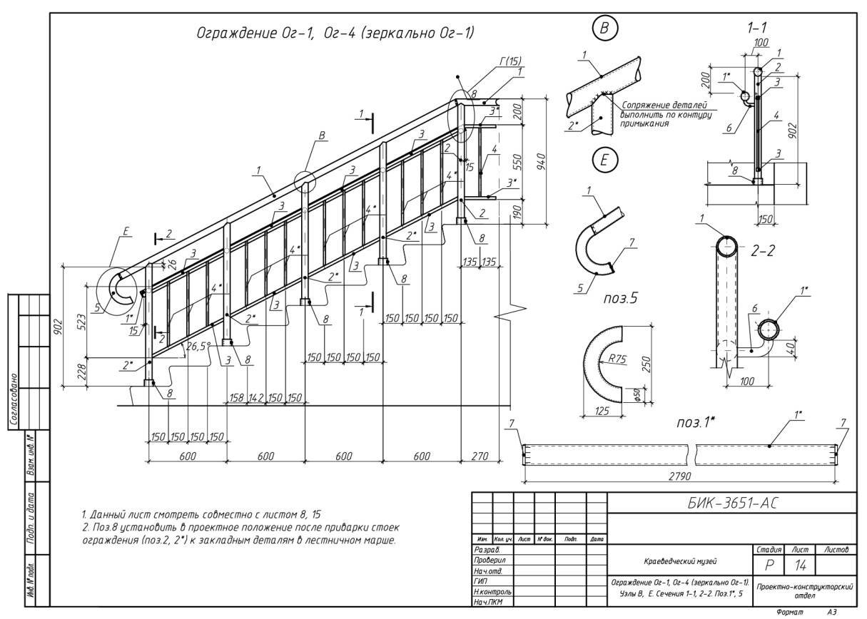 Ограждения лестниц металл чертеж