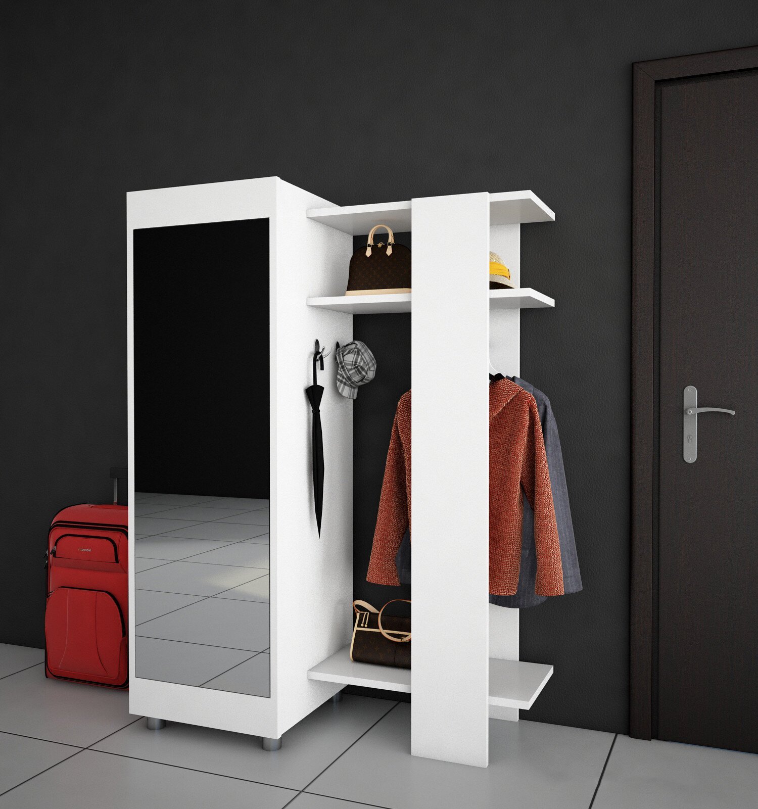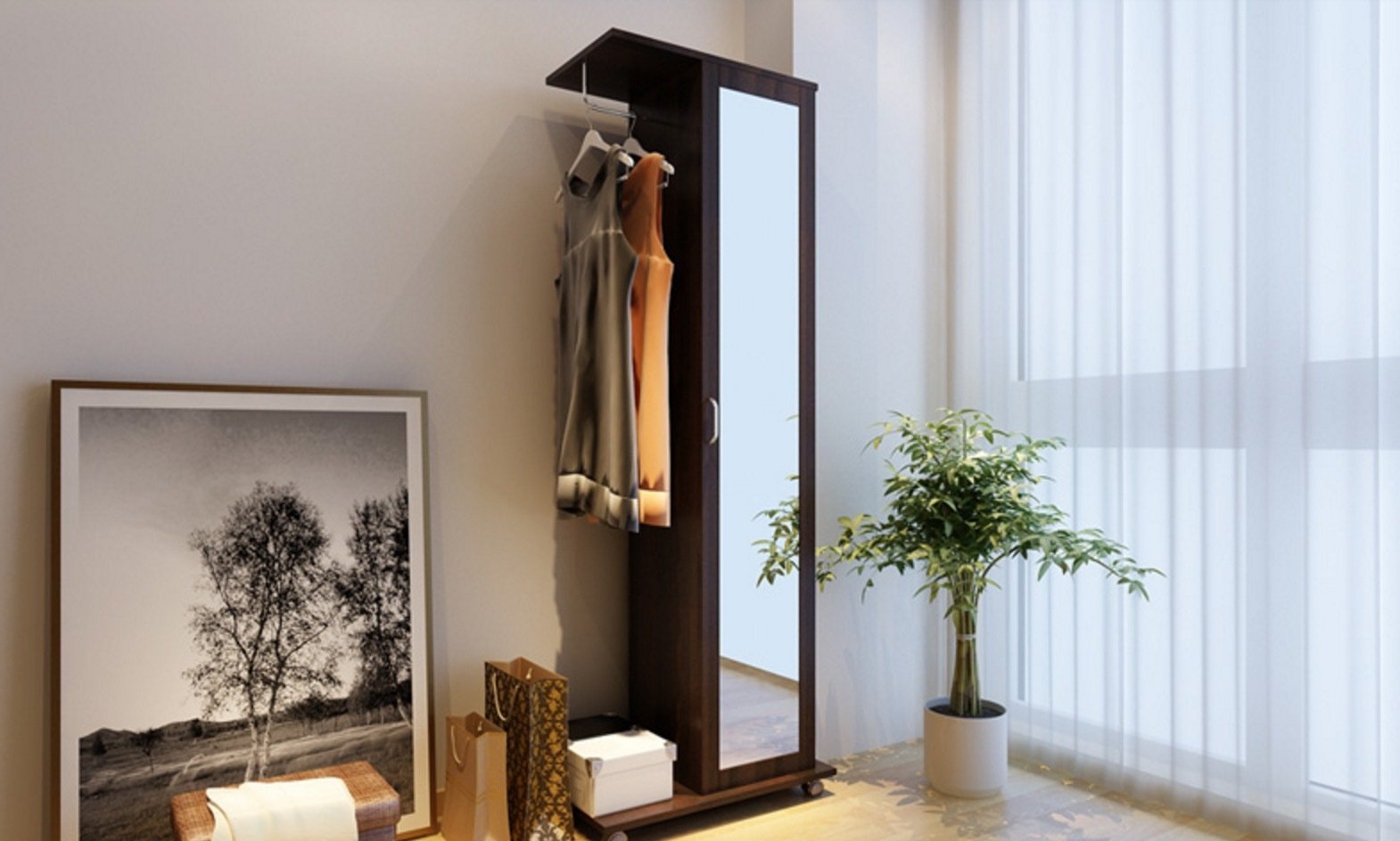 Вешалка с зеркалом на колесиках