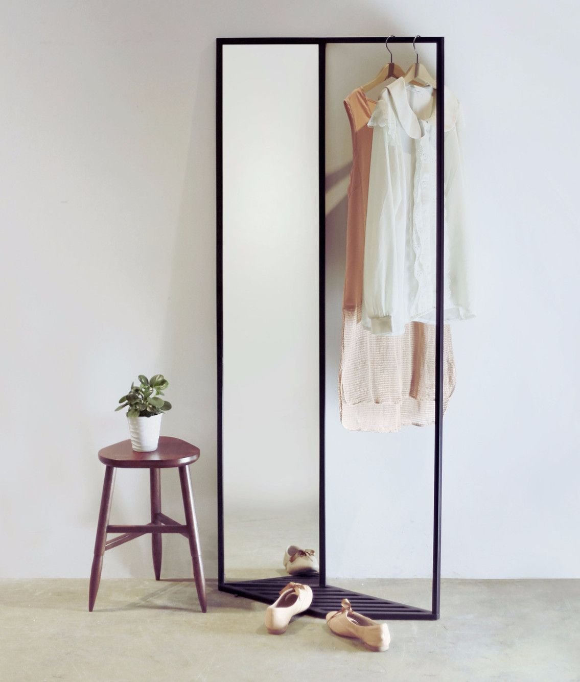 Напольное зеркало с вешалкой сзади для одежды