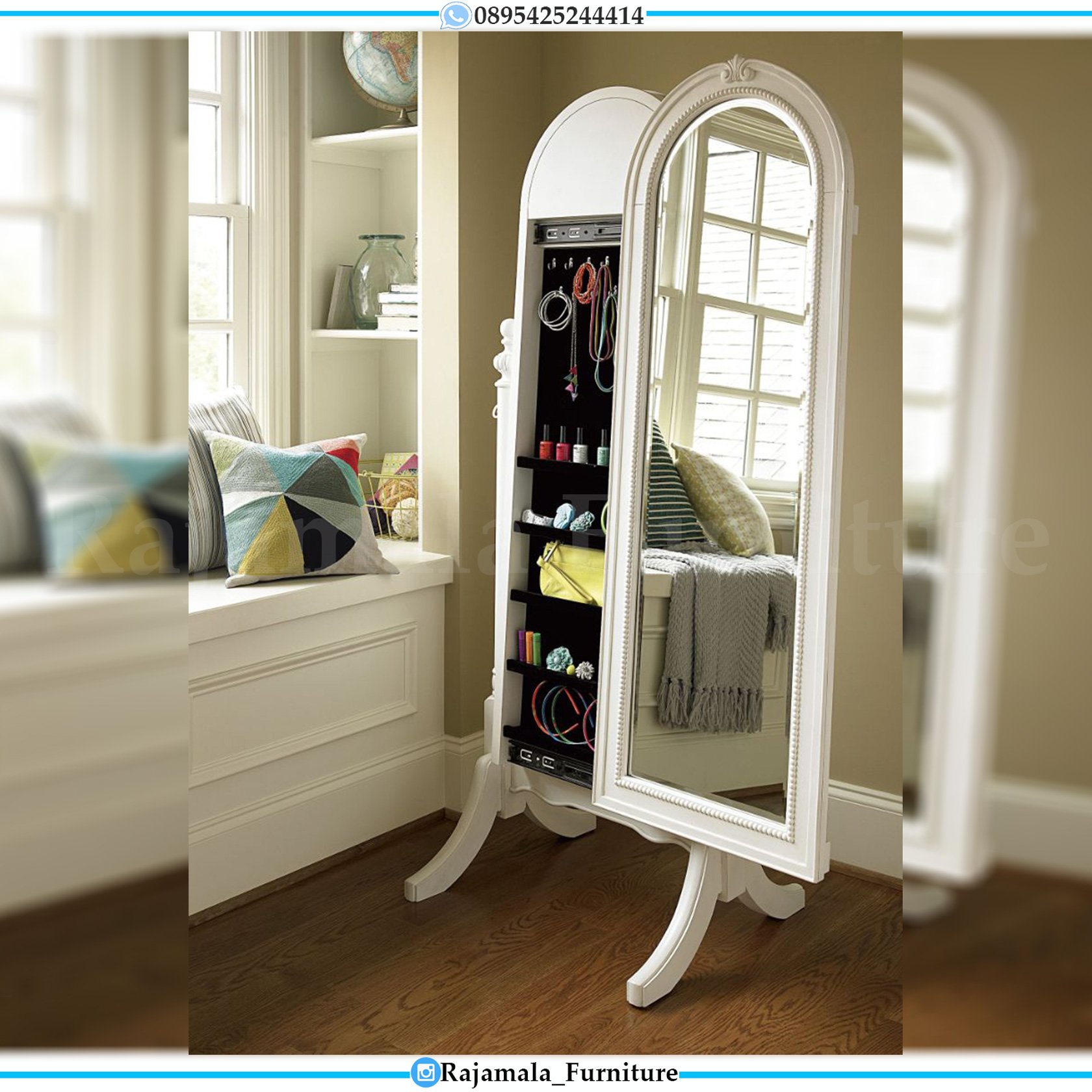 Напольное зеркало с полками внутри