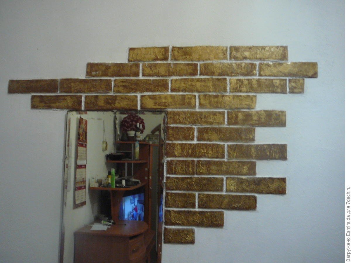 Кирпичи губкой на стене