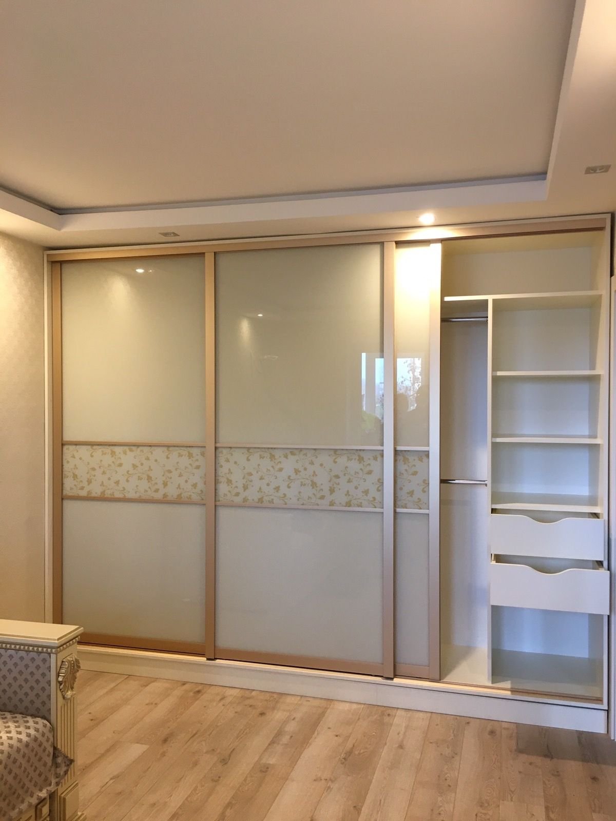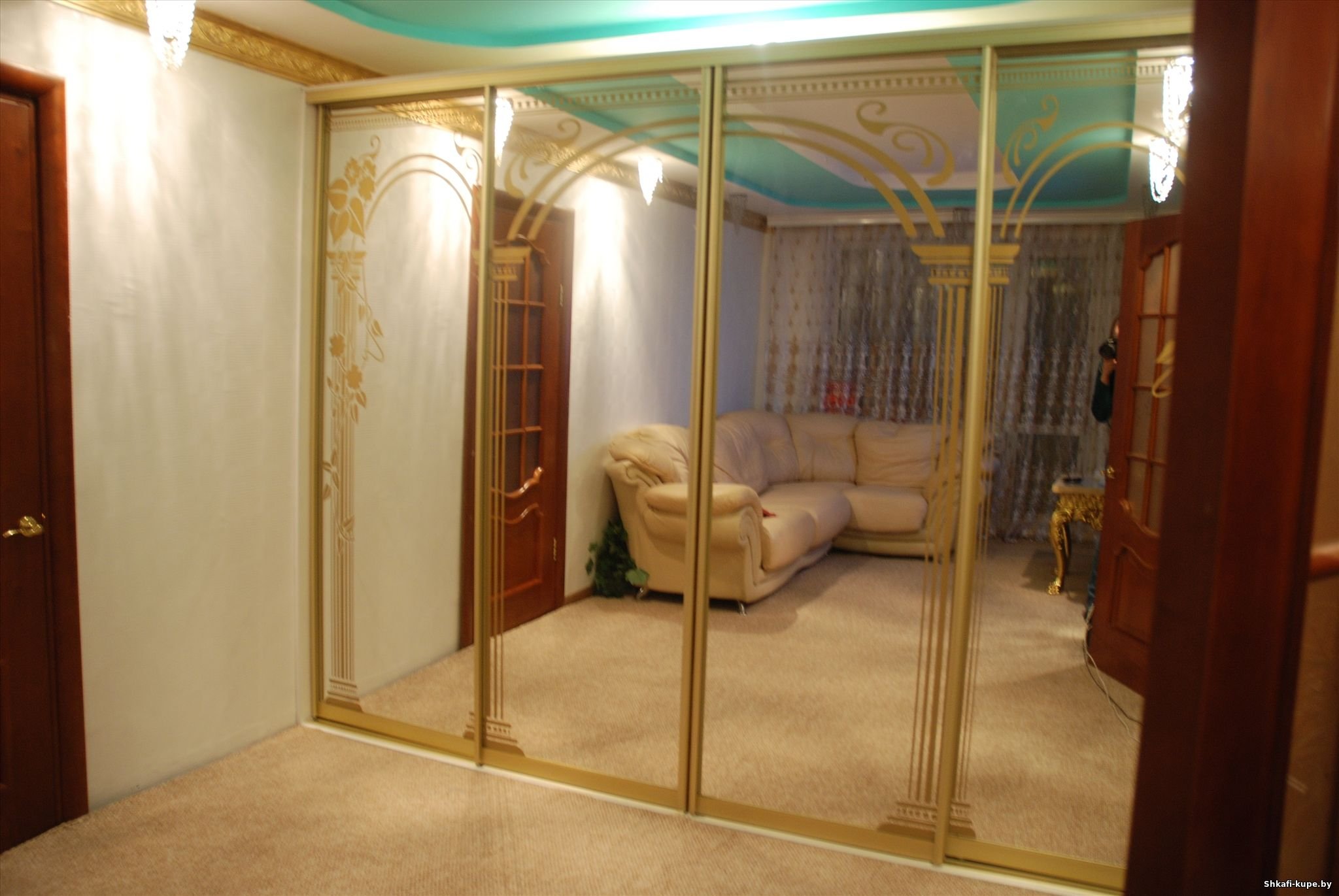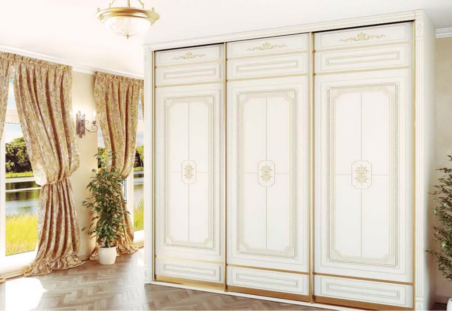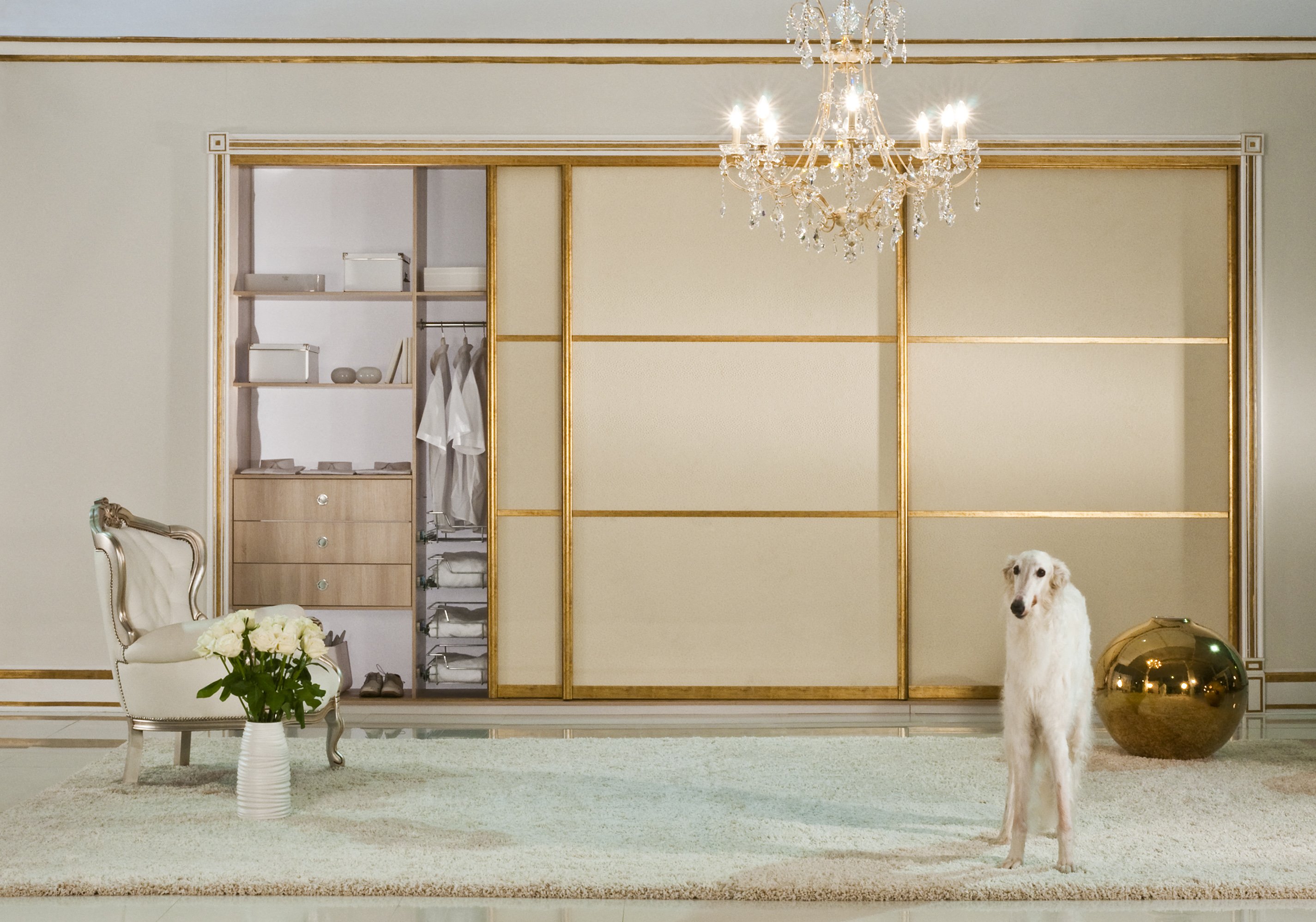 Шкаф купе с золотой фурнитурой
