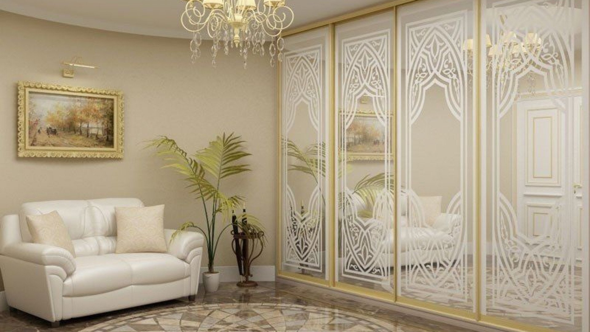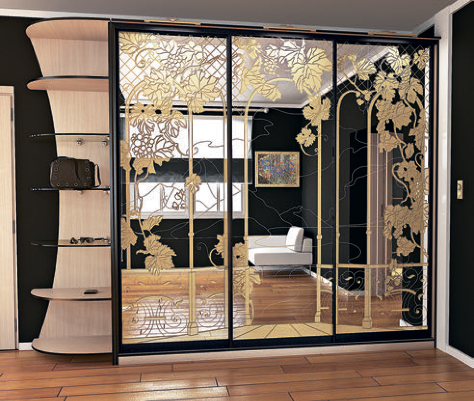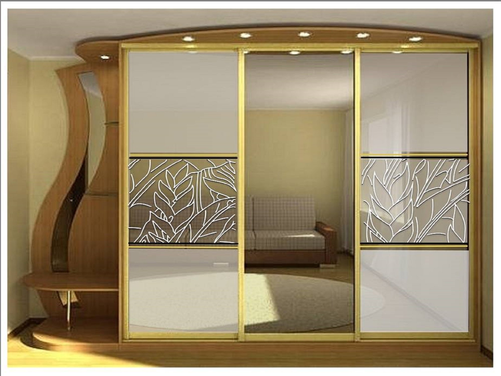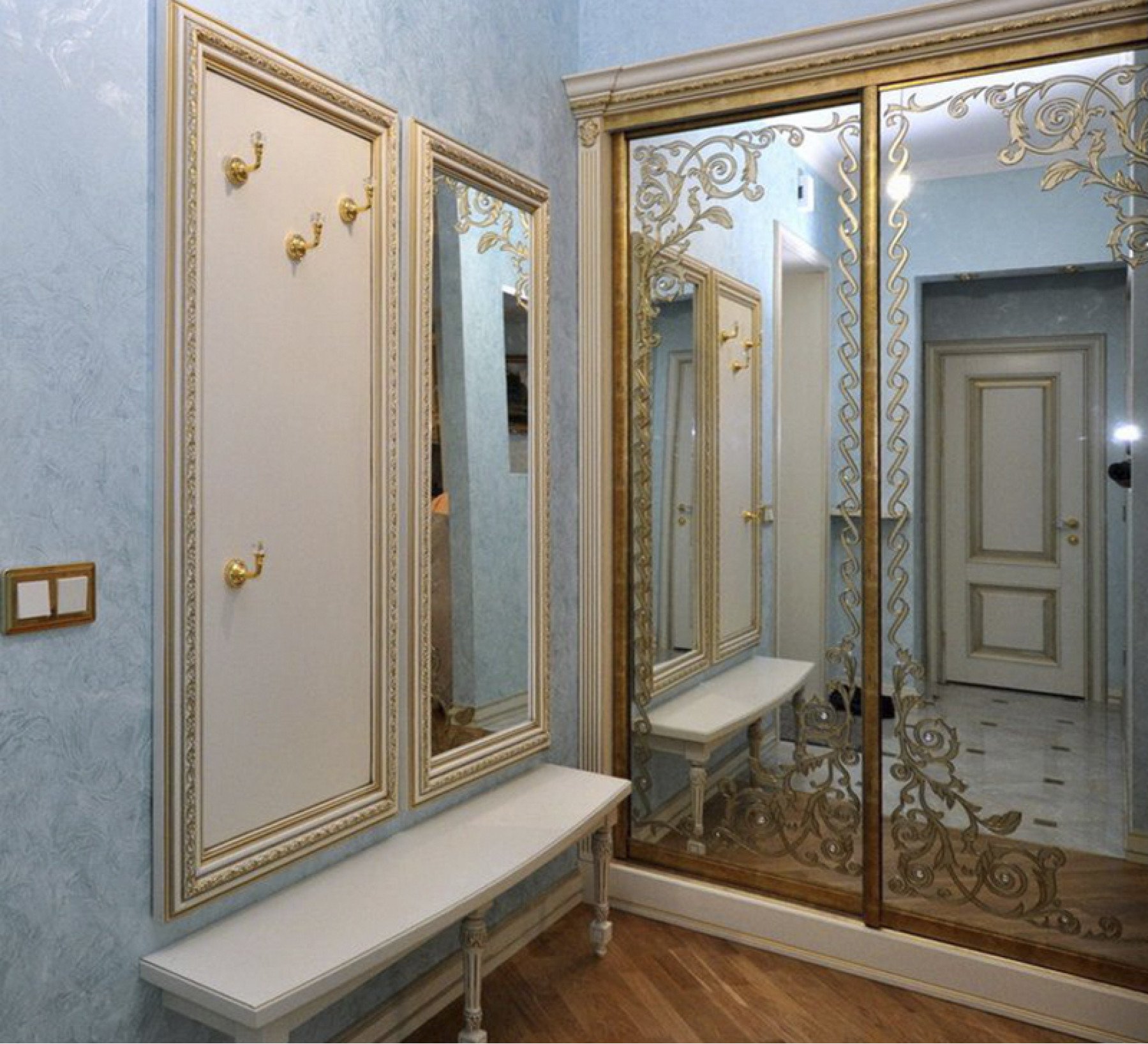 Шкаф купе с золотой фурнитурой