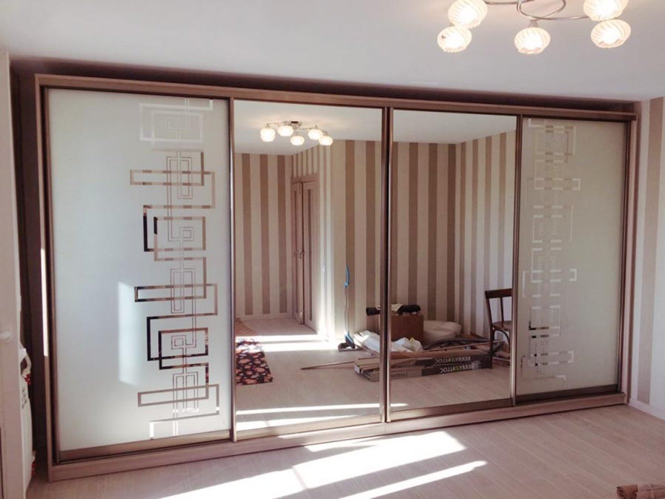 Шкаф купе 4 двери с зеркалом пескоструй