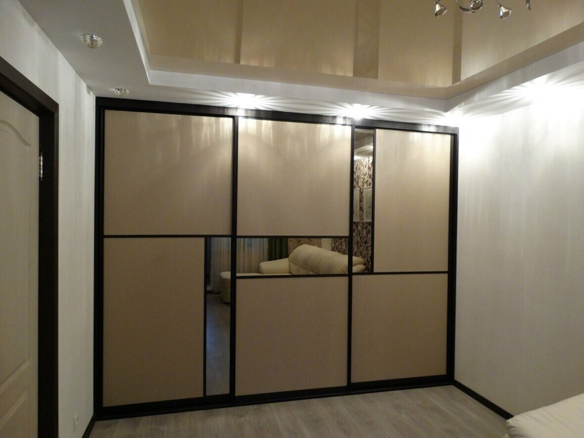 Шкаф купе с кожей и зеркалом