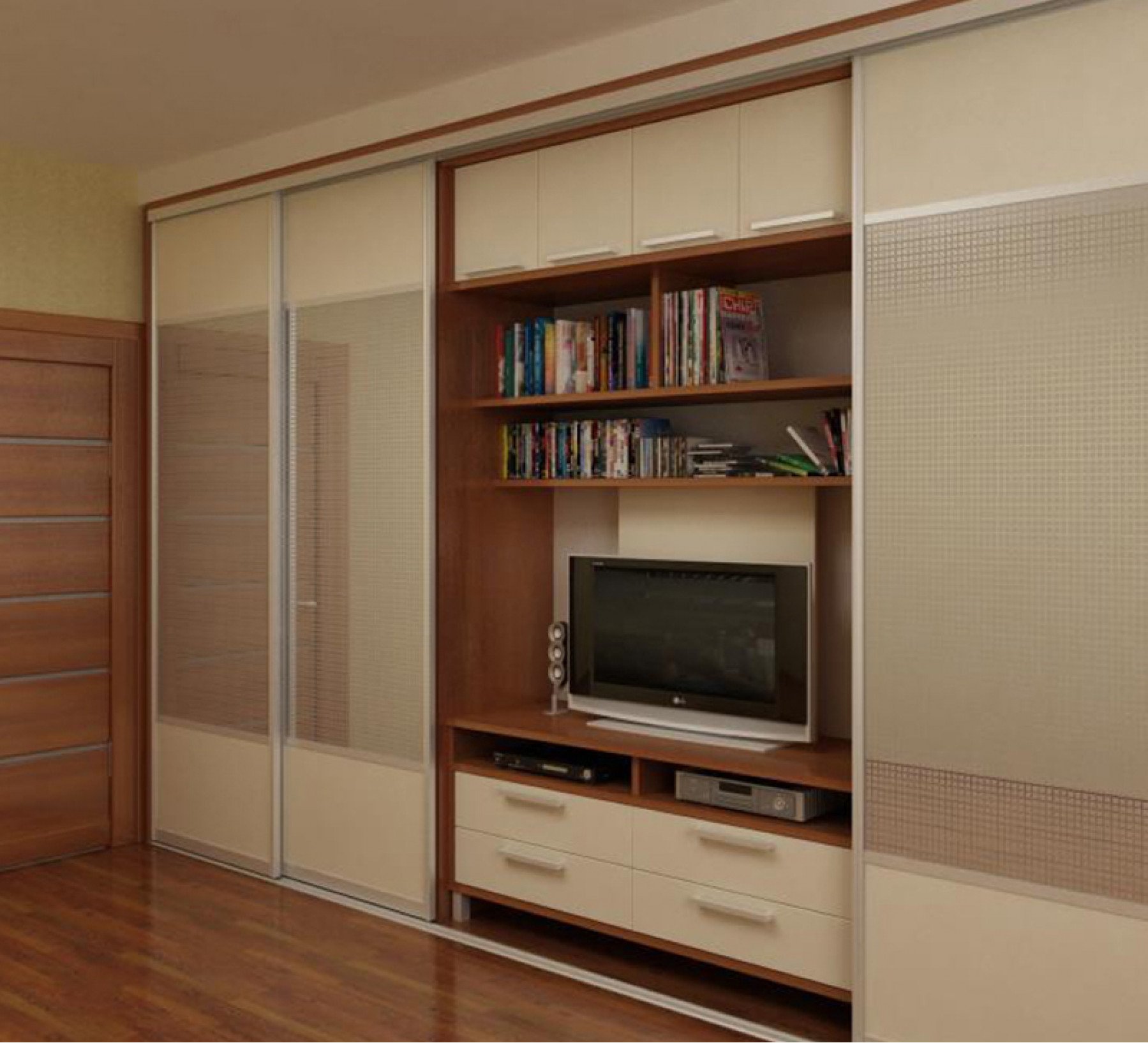Телевизор встроенный в шкаф в спальне