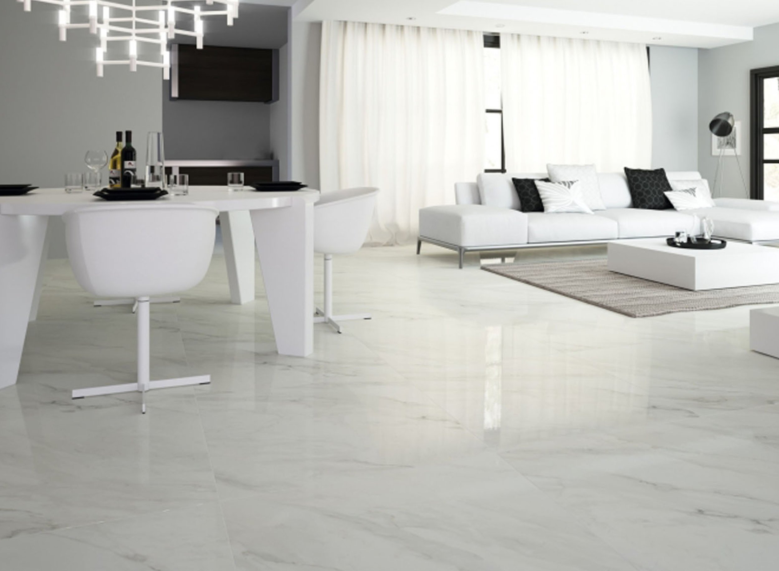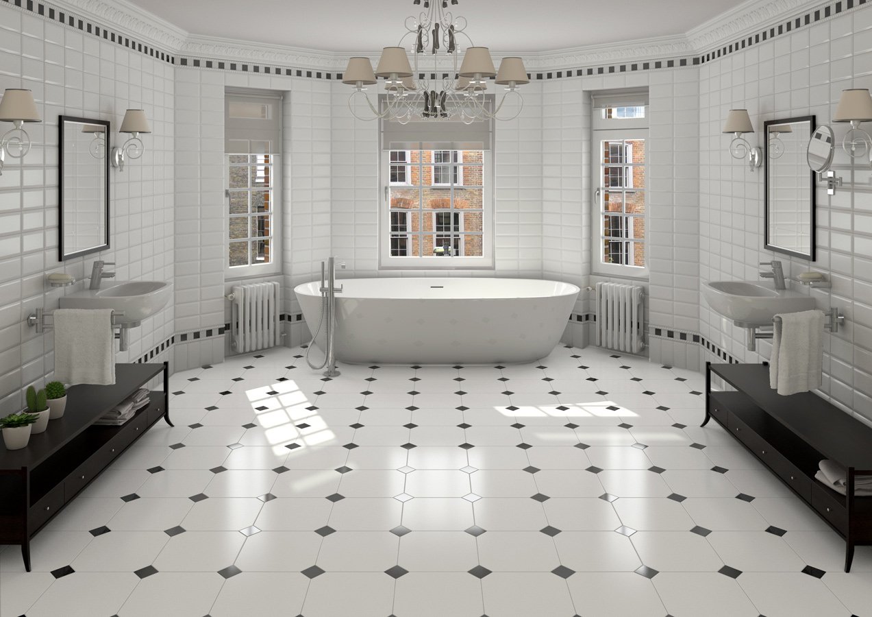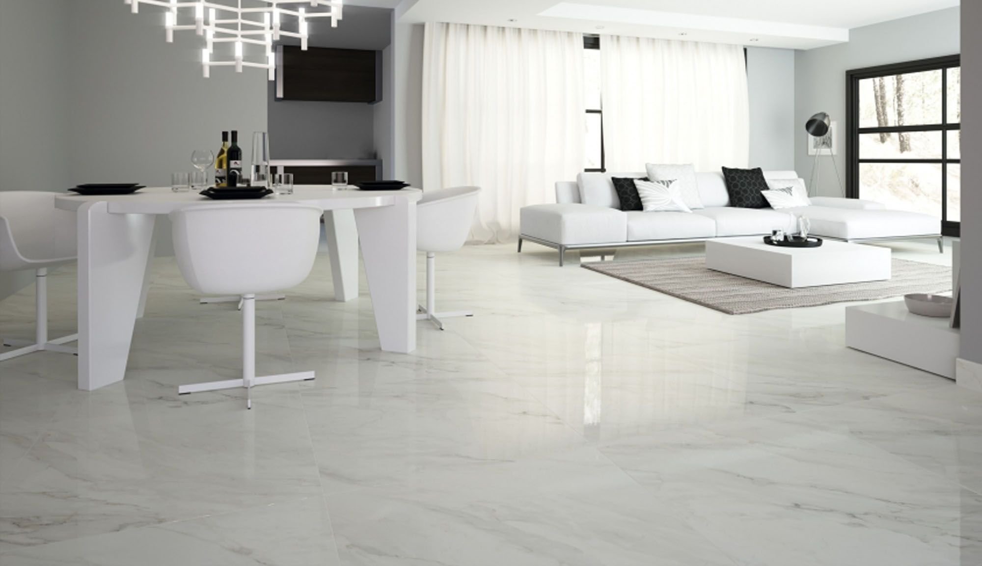 Белая напольная плитка в интерьере