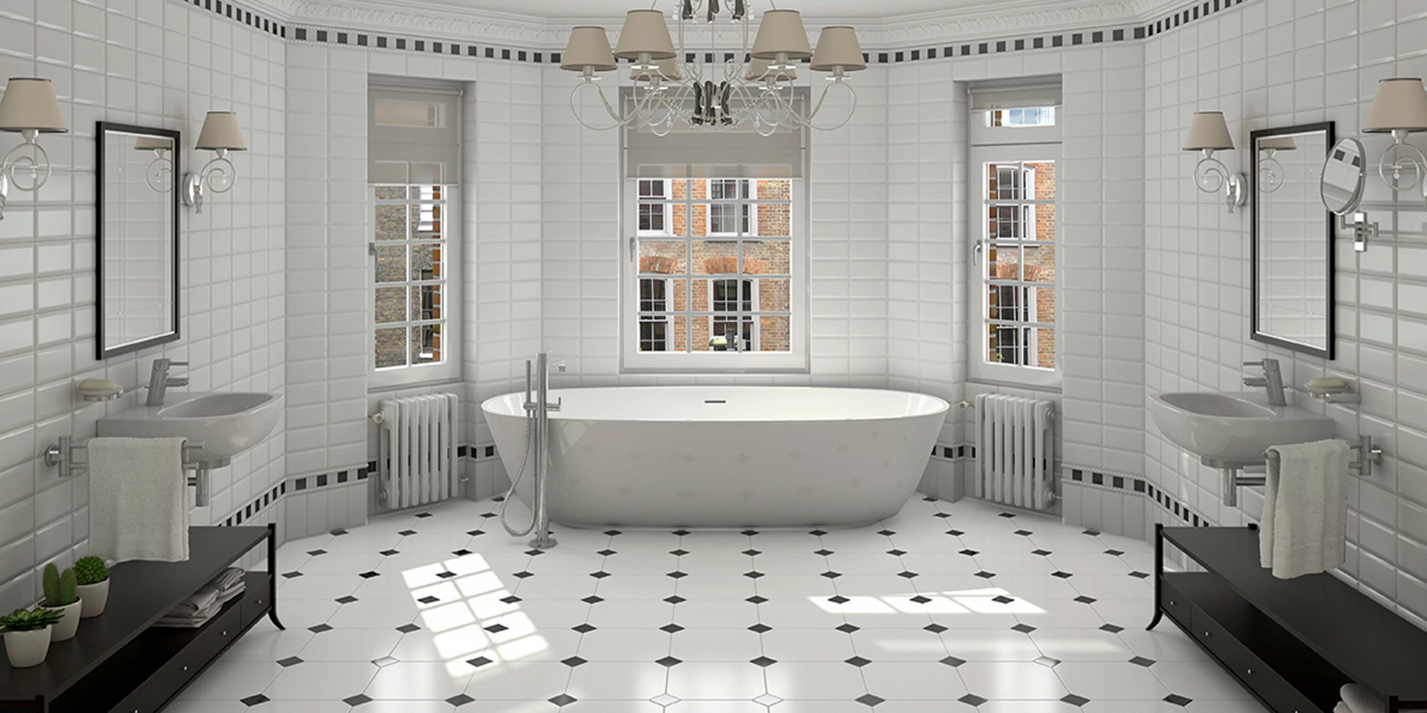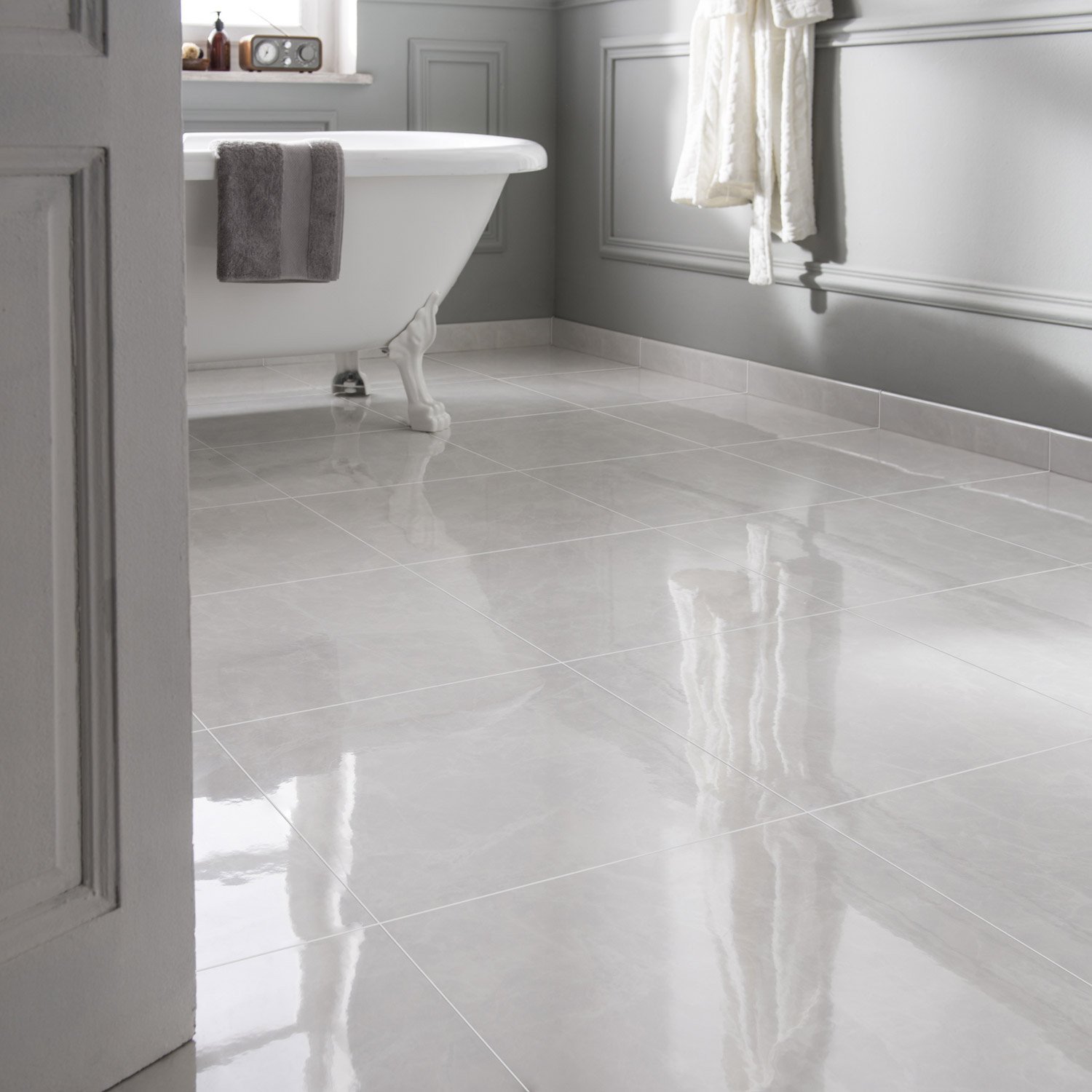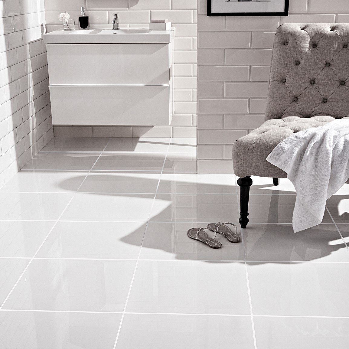 Белая напольная плитка в интерьере