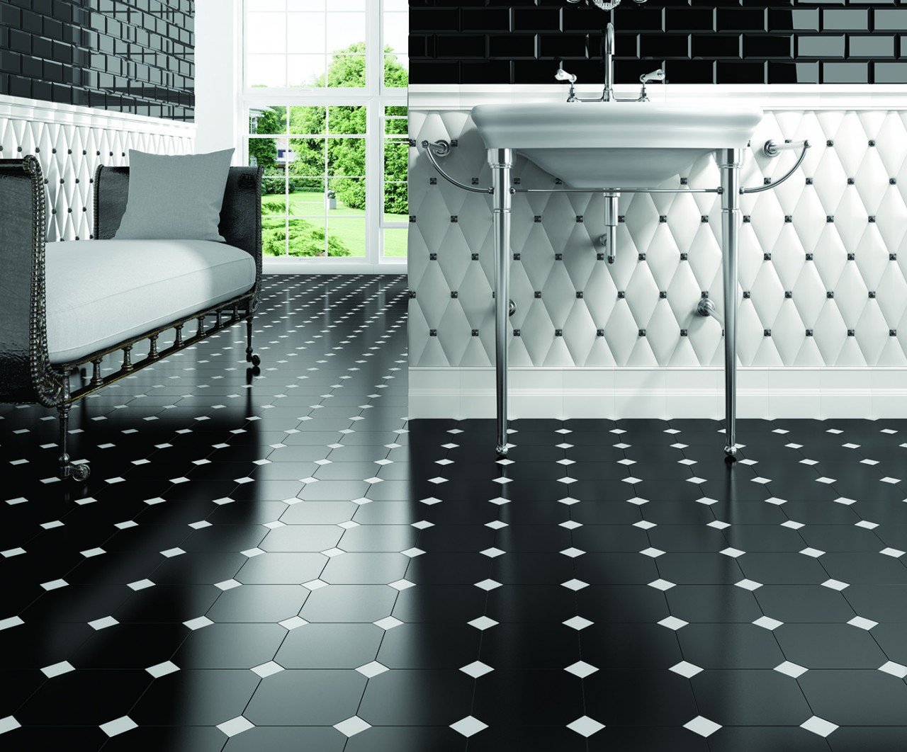 Белый кафель с черной затиркой